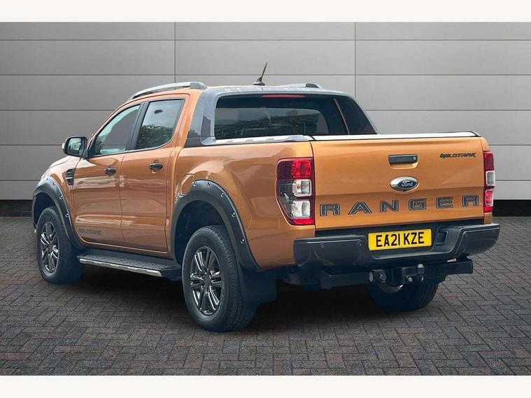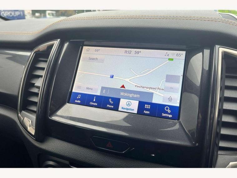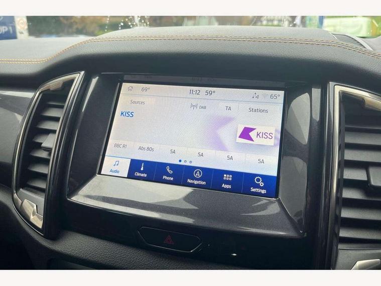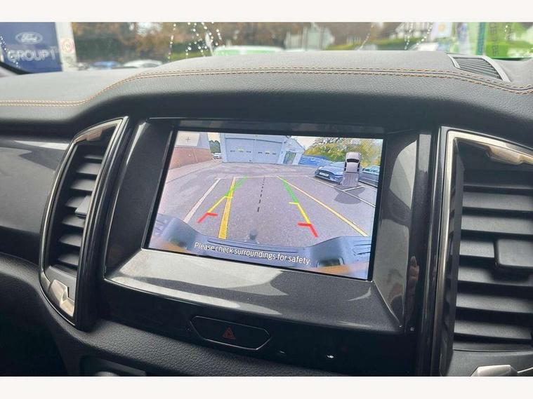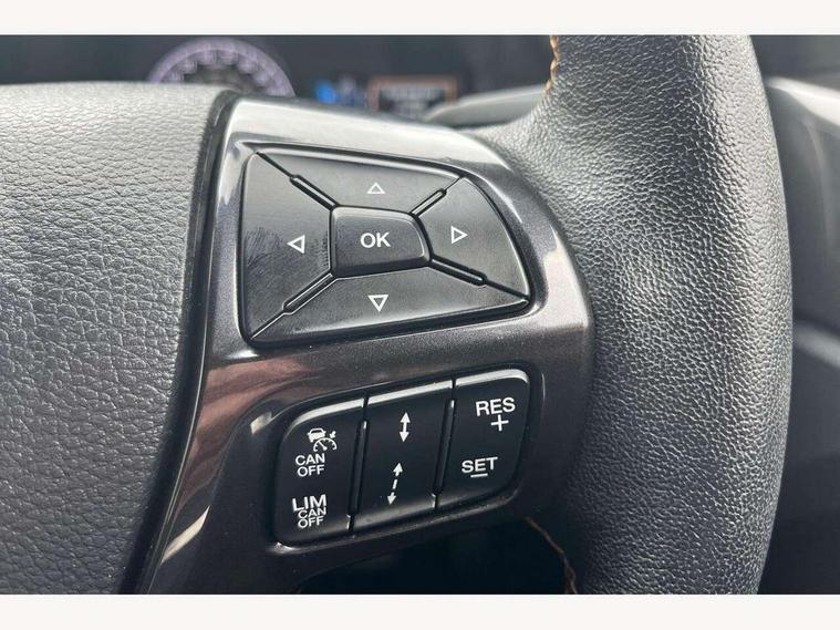 2 key fob, Collision mitigation braking system, Electric power assisted steering, Fixed rear view camera, Intelligent speed assistant, Lane keeping aid, Traffic sign recognition, Trip computer, Body coloured plastic front bumper, Boulder grey exterior door handle, Boulder grey exterior door mirror, Boulder grey radiator grille, Daytime running lights, Dual power heated fold back door mirror with puddle lamp and signal, Dyno grey sports hoop with side rails, Electrically operated windows with one shot driver's window, Electrochromic interior mirror, Front splash guard and mud flaps, Heated windshield and rear window, High mounted stop lamp with cargo area light, LED Front fog lamp, LED projector headlamps, Moulded in colour tailgate handle, Painted front fender grille, Privacy glass, Rain sensitive windshield wipers, Rear bumper chrome under-bar, Rear bumper step in boulder grey, Rear mudflaps, Roof rails, Side step with brushed inserts, Tailgate - Easy-lift/lower mechanism, Under hood engine cover, Underbody protection, Centre console coolbox, Chrome interior door handle, Driver seat back mounted map pocket, Dual control system - Electronic air temperature control (EATC), Ebony headliner, Heated front seat, Journey grain partial leather upholstery with Wildtrak logo, Leather gearknob, LED ambient interior lighting, Power adjustable 8 way driver seat, Premium front and rear floor mats with Wildtrak logo, Reach and rake adjustable steering column, Roof storage for driver sunglasses, Sport leather stitched steering wheel, Tie down rails and rope hooks, Wildtrak door trim panel insert, ICE feature pack 129 - Ranger, Driver and front passenger airbag, side airbag, curtain airbag and driver knee airbag, ISOFIX child safety seat attachment, Tyre pressure sensors, Double locking power door lock with flip key, Immobiliser, Locking wheel nuts, Passive anti theft system, Passive keyless entry and start system, Power tailgate lock, Spare wheel lock, Thatcham category 1 alarm security system, ABS, ESP and roll over mitigation, Emergency brake assist, Engine start/stop system, Locking rear axle, Power converter,