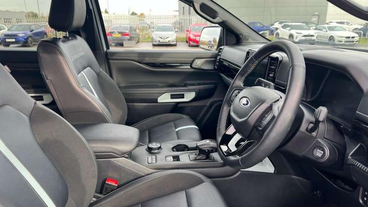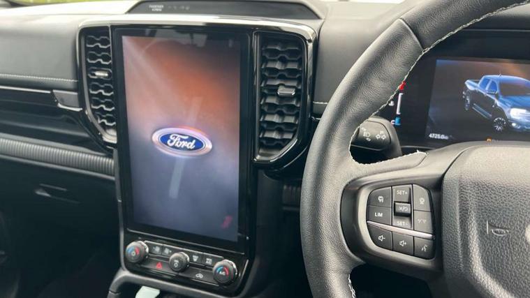 AEB and ISA, Delete tachograph, Electric power assisted steering, Electronic automatic gearshift, Evasion steer assist, Ford pass connect embedded modem, Ford Pro Telematics Essentials, Ice warning, Partial TFT/LCD instrument cluster, Passenger side roof mounted grab handle, Pre collision assist, Road departure warning, Trip computer, Wireless charging pad, 360 lighting, Accent colour exterior mirrors, Accent colour front bumper, Accent colour rear bumper, Acoustic laminated windscreen, Assisted conventional tailgate, Automatic headlamp levelling, Automatic headlights, Black wheel lip moulding, Body coloured door handles, Daytime running lights, Dual power heated fold back door mirror with puddle lamps, E-marked glass, Electric rear window defroster, Electric windshield defroster, Electrochromic interior mirror, Foam in bumper, Front bumper lip, Front fender painted grill, Front splash guard, Fuel tank guard, High mounted stop lamp, Honeycomb radiator grille, Hood applique, Ladder rack, LED Front fog lamp, Level 1 Taillamps, Level 3 headlamps, Manual liftgate, Non locking capless fuel fill, Outside thermometer, Pickup side rails, Power front windows with one touch up/down, Power rear windows, Privacy glass, Rain sensitive windshield wipers, Rear bumper extension, Rear fog lamps, Rear splash guard, Self coloured decklid handles, Trailer tow wiring, Under hood engine cover, Cargo light, Console with armrest, Door handles with inside MIC, Driver and passenger sunvisor with mirror, Ebony headliner, Electronic dual zone automatic air conditioning, Fresh air heater, Heated steering wheel, LED ambient interior lighting, Less load rest, Less outside tie down hooks, Locking glove box lid, Micro rib embossed leather upholstery, Non woven carpet, Overhead console with dome lamps, Pollen filter, Premium air register, Pull out cup holder, Reach and rake adjustable steering column, Rear floor ducts, Roof storage for driver sunglasses, Steering wheel with multimedia controls, Washer tank level warn lamp, Driver assistance package - Ranger, Front seat pack 7 - Ranger, Functional upgrade pack 3 - Ranger, Heavy duty terrain pack - Ranger, ICE feature pack 106 - Ranger, Interior trim pack 13 - Ranger, Rear seat pack 15 - Ranger, Child proof rear door locks, ISOFIX child safety seat attachment, Tyre pressure sensors, 2 Remote control unit - key fob, Immobiliser, Locking wheel lug nut, Passive keyless entry and start system, Power door dead locks, Power tailgate lock, Thatcham alarm system, Thatcham security system, FORDLiive service, 12V aux rear power point plug, ABS/ESP brakes with electronic brake boost, Electric parking brake, Electric start/stop system, Front and rear disc brakes, Locking rear axle, Soft ride suspension, Spare tyre lock,