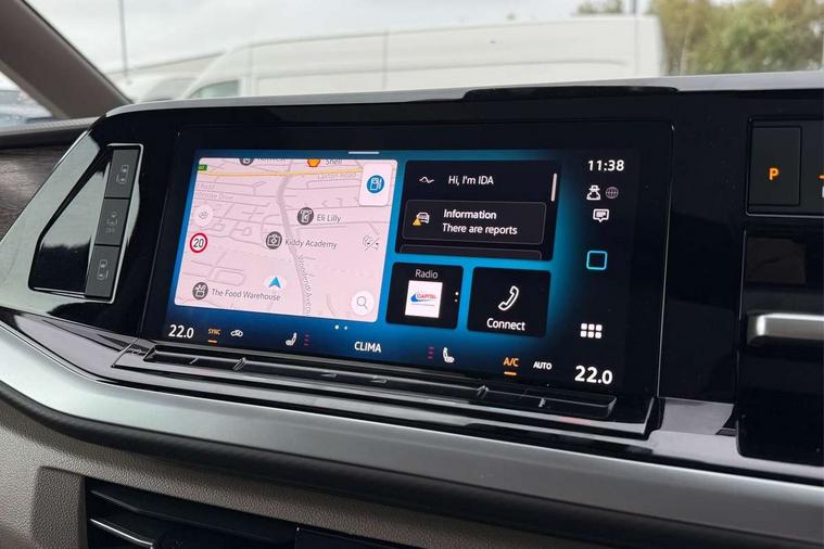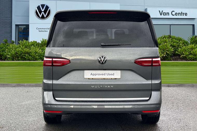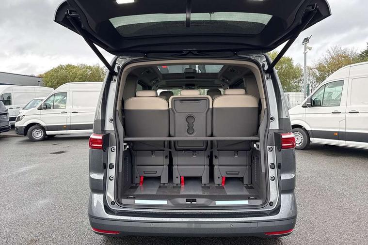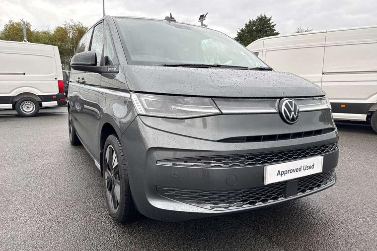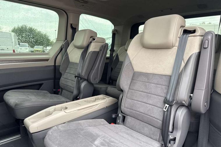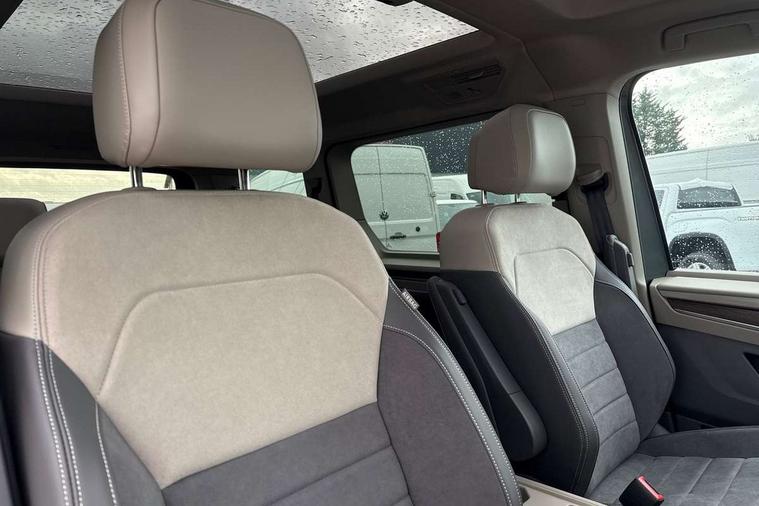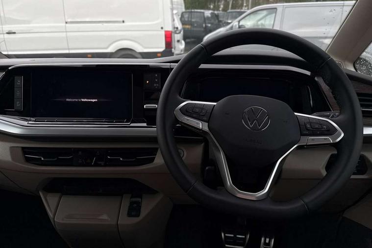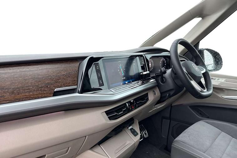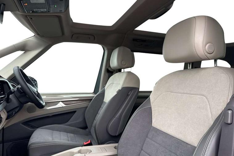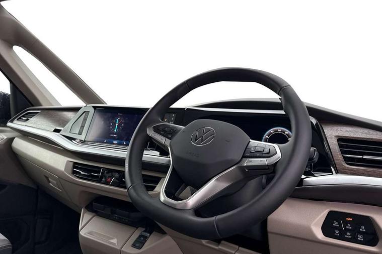 Adaptive cruise control with C2X including front assist and city emergency braking system, Digital Cockpit Pro with 10.25" colour display with adaptable display includes navigation map display, telephone contact images and audio information, Discover media pro navi system with 10" colour touch incl DAB+radio/appconnect for apple carplay/android auto/streaming and internet/gesture control, Driver alert system, Dynamic road sign display, eCall emergency system, Electrically-operated tailgate opening and closing function (Easy open), operated via foot movement under rear tailgate, Emergency assist, Front Cross Traffic Alert, Lane change system with side assist including blind spot monitor, rear traffic alert and exit warning system, Lane keeping system Lane Assist, Mobile phone interface, PAS, Semi-automated driving assistance, Tailgate, Travel assist, Voice control system including Alexa web app, We connect preparation, Electronic differential lock, 2 USB-C ports in front and 4 USB-C ports in passenger compartment, Additional interior noise reduction measures, Advanced high beam control dynamic light assist for LED matrix headlamps, Automatic headlight control with welcome home lights, Body coloured exterior door handles, Break away auto dimming rear view interior mirror, Chrome trim decorative strip mid-way on side and rear, Dynamic headlight range control with dynamic cornering light, Electrically adjustable, heated and folding door mirrors, Front fog lights, Glossy black painted radiator grille with 2 illuminated chrome trims, Heated rear window with window wiper and washer system, Heated windscreen, High gloss black exterior mirror housing, IQ.Light LED matrix headlamps with LED separate daytime running light, Laminated safety glass windshield, heat and sound insulating, LED 3rd brake lamp, LED rear combination lamps, Rear wiper, Stainless steel tailgate trim, Surround lighting in door area and tailgate with logo projection in door area, Windshield wiper intermittent control with rain sensor, 1 x 12V sockets on the dash panel, 12V socket in passenger compartment, 3 seat bench in 3rd row, 30 colours ambient interior lighting and tailgate surround lighting, 7 single seats removable/movable, Carpet mats in cab, Climatronic 3 zone air conditioning with additional control panel in passenger compartment, Front and rear head restraints, Grab handles on A pillar for access, on driver and front passenger side, Height adjustable seats, Height and longitudinal adjustment steering wheel with gear shift paddles, Illumination lockable glovebox compartment, ISOFIX (including i-size) and top tether in all seats in 2nd and 3rd rows, LED luggage compartment lighting X 2, Load compartment partition to 20kg with bag hooks and luggage net, Luggage compartment lid power latching with unlatching from inside, Multifunction leather steering wheel with tiptronic, Reinforced carpet floor covering in passenger compartment, Removable armrests for front seats with power adjustable lumbar support and folding table for 2nd row passenger seats, Removable armrests in 2nd row passenger seats, Single front passenger seat, Slidable multifunction table/centre console with 3 cup holders, Stainless steel pedals, Storage compartment under the 2nd and 3rd row seat and two waste bins, Sun visors with illuminated vanity mirror, ticket holder on driver side with airbag warning label on sunvisor and B-pillar, Easy open package - Multivan, 3x3 point rear seat belts, ABS, Automatic post collision braking system, Autonomous emergency braking front assist with pedestrian and cyclist monitoring, Driver and front passenger airbag with front passenger airbag deactivation, Electric childproof lock, Electronic stability control (ESC) and Electromechanical brake booster, ESP, First aid kit with warning triangle and safety vest, Front disc brakes, Hill hold assist, Seat belt warning for the drivers and all passengers seats if unfastened, Side and curtain airbags for driver and front passenger, curtain airbags for outer seats in rear, centre airbag in front, Single tone horn, Traction control, Tyre pressure monitoring system, Anti theft alarm system with interior monitoring in cab, backup horn and towing protection, Central locking system with interior control and safe lock, Keyless advanced with keyless entry, Start/stop button on centre console, Dark woodgrain optic decorative inserts,
