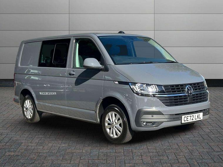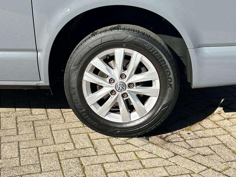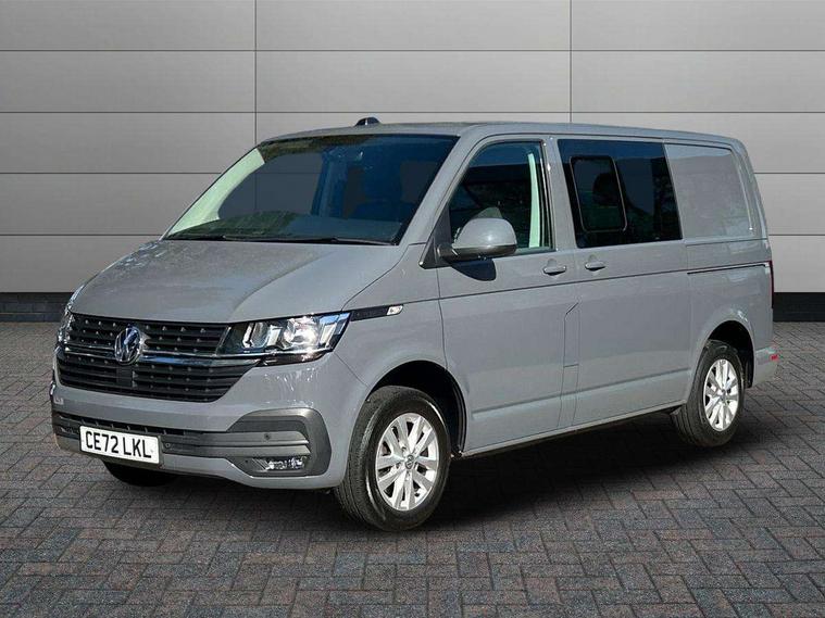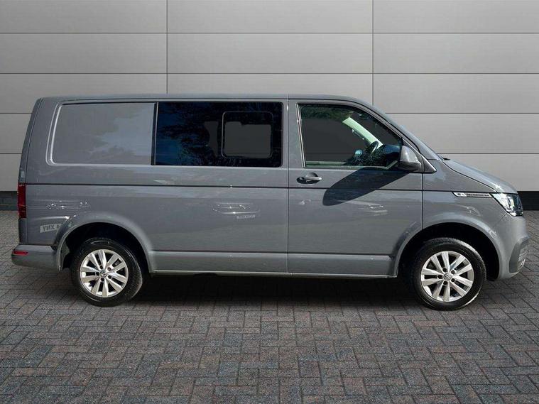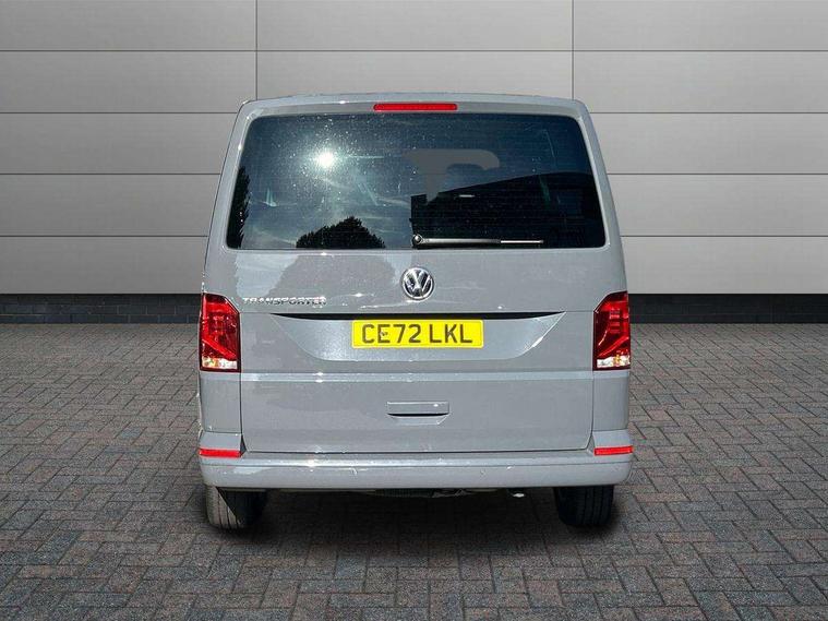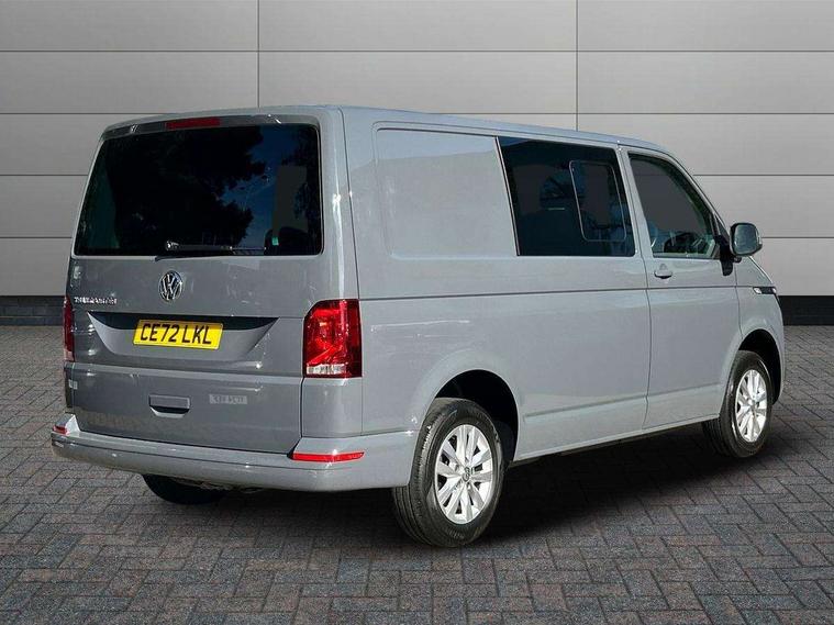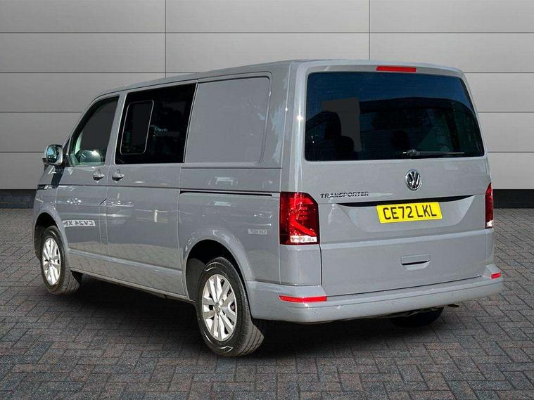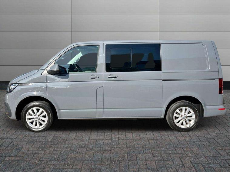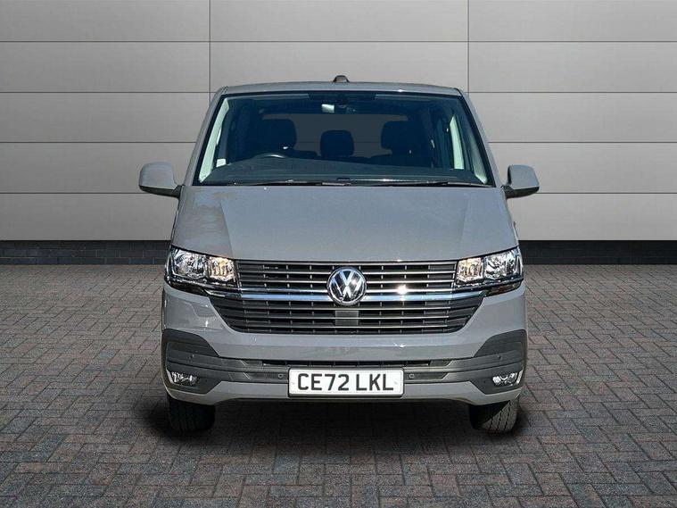 Adaptive cruise control, Child seat anchors ISOFIX and top tether in 2nd row of seats, Cross wind assist, Dimmable illuminated instruments, Driver alert with black and white multi function display plus, eCall emergency system, Forward collision warning front assist with autonomous emergency braking, Headlight range control, Mobile phone interface, Without voice control, 2 USB interfaces type C in dashboard, 4 speakers with 2 tweeters and 2 woofers, Composition colour radio with 6.5" touchscreen, Digital radio reception (DAB+), Volkswagen app connect, Automatic headlight control, leaving home and manual coming home feature, Front fog lamps with cornering light, Green heat insulating glass, Heated front windscreen, Illuminated steps in passenger/load compartment, Left convex exterior mirror, Power folding adjustable door mirrors with separately heated, Privacy glass from the B-pillar and heat-insulating glass in front, Radiator grille with 2 chrome trims, Rear window with heated insulating glass, heated rear window wiper and washer system, Right convex exterior mirror, Tailgate closing with unlatching from the inside, Transporter nameplate on the rear fender, Windshield wiper intermittent control with rain sensor for windshield wipers, Without adhesive film, 3 spoke leather wrapped multi function steering wheel, Additional sound deadening measures in cab and passenger compartment, Auto dimming breakaway interior rear view mirror, Comfort headliner in cab, hardboard roof trim in passenger and load compartment, Dust/pollen filter, Folding grab handles and storage compartments on cab seats, reading light, Front seats on the right in 1st row of seat, Glove compartment with illumination, Heavy duty tool kit and jack, Interior plastic loading edge protection, Lashing rings for load restraint system, LED Interior lighting in load and passenger compartment, Medium height for vehicles with window aperture hardboard side trim panels in passenger/load compartment, Refrigerant R134a, Standard lower part dashboard in palladium, Without partition, Without seats in 3rd row of seats, Comfort pack - Transporter, Exterior pack without fog light- Transporter, Light and vision pack - Transporter, Non smoker pack - Transporter, 3 point height adjustable seat belts on outer seats cab with electric pretensioners, Driver and front passenger airbag with front passenger airbag deactivation, Power operated child safety lock, Warning buzzer and light for driver seat belt not fastened, Anti theft alarm system with interior monitoring in cab, backup horn and towing protection, Lockable wheel bolts, 16" chassis with 16" brake system, Diesel particulate filter, Electronic stability control, ABS, ASR with deactivation button, hill start assist and brake assist system, Speed limiter, Start/stop system with regenerative breaking, 16" Clayton alloy wheels, Wheel trims,