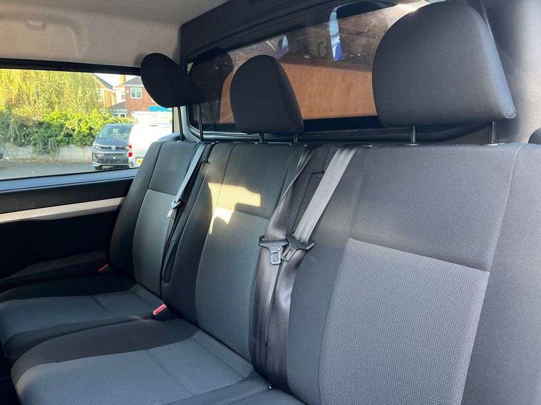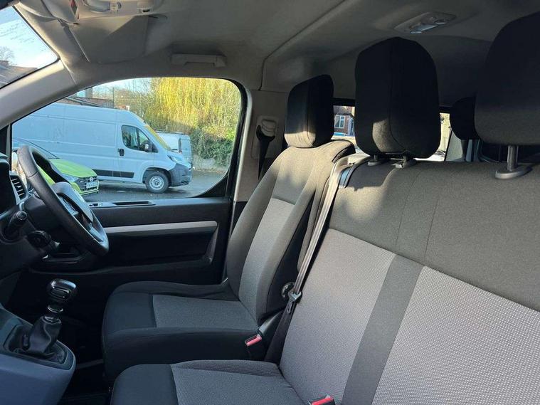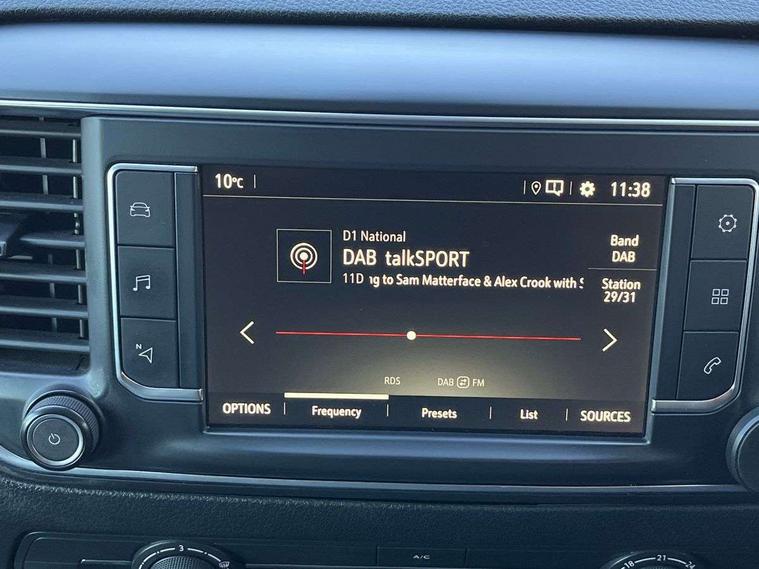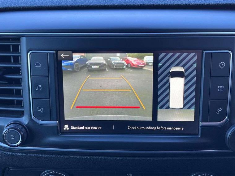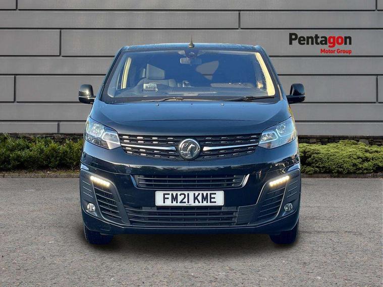 e-Call and b-Call, Front & rear parking distance sensor, side blind spot alert, front fog light and electrical folding door mirrors, Instrumentation - Speedometer, rev counter, fuel gauge with low fuel warning light and coolant temperature warning light, Multi function trip computer, trip odometer, vehicle range, average speed, driving time, average and instantaneous fuel economy, Multimedia sat navpro-7"AM/FMstereo, DAB, RDS trafficpro, 8speakers, USB/iPod, BluetoothA2DP, Auxin, Microphoneand Applecarplay/Androidauto, phone book access, Panoramic rear view camera, PAS, Vauxhall connect box, Steering column mounted audio controls and flexible roof mounted aerial, Electric front windows with one touch up/down facility, Electrically adjustable + heated door mirrors, Front cornering lights, Halogen headlights, Lights on audible warning, reversing light, hazard warning, rear fog light, high level brake light and side repeat indicator, Nearside and offside side access door with fixed windows, Side protection mouldings, Cab soundproofing, Curitiba cloth upholstery, Driver seat - Height, reach, backrest recline, lumbar adjustment, driver's seat armrest and padded head restraint, 6 way adjustable drivers seat, Facia storage-upper glovebox, open lower glovebox with 12v socket and aux-in , lower shelf, A4 storage on top, two drink holders, pocket in gear lever, Fixed floor mounted load restraint lashing eyes x8, Fold flat centre seat backrest, Front door pockets, Full height ABS plastic bulkhead with window, Reach and rake adj steering wheel, facia mounted gear lever, floor mounted handbrake lever, cab headliner, inertia reel lap and diagonal seatbelt, Three individual contoured rear seats with inertia reel-lap and diagonal seatbelts, underseat storage, 12V accessory socket padded head restraints, Appearance pack - Vivaro L2, Driver assistance pack - Vivaro, Driver safety pack - Vivaro Elite, Visibility Pack - Vivaro, 3 point seat belts, Driver airbag and front passenger airbag with deactivation switch, Driver and front passengers side impact and curtain airbags, Height adjustable outer front seatbelts, Seatbelt remainder for driver and passenger, Electronic engine deadlock immobiliser, steering column lock, lockable fuel filler cap and anti theft spare wheel cradle, Remote control door locking, selective door locking, two keys with integral remote and door deadlocks, Security alarm system with monitors doors, tailgate, bonnet and the passenger compartment, 22.5 litres AdBlue tank, Electronic brake force distribution, Emergency brake assist, ESP plus + traction control, Four channel Anti lock braking system, Front ventilated and rear disc brakes, Hill start assist, Speed limiter, 17" Silver alloy wheels,