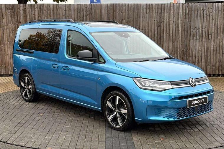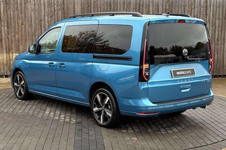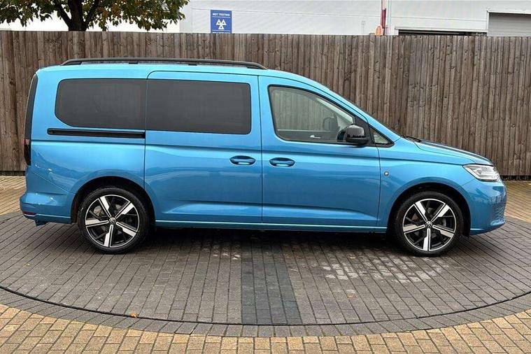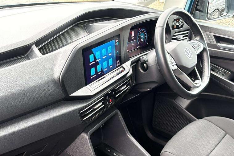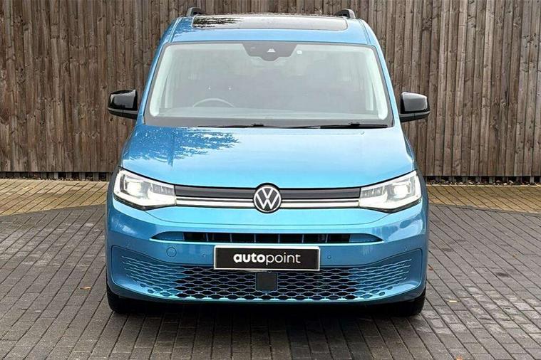 Driver alert system, eCall emergency call system, Gesture control, Lane keeping system, Multi function display, On board computer, Service interval indicator, Start/stop system with regenerative braking, Tailgate with window, We connect plus preparation, Diesel particulate filter, Electronic differential lock, 2 Type C USB, DAB Digital radio, Anti dazzle rear view mirror, Automatic hazard lights activation under emergency braking, Automatic headlight levelling system, Black painted exterior mirror housings, Body colour bumpers, Body colour door handles, Electric front windows, Electrically adjustable and folding door mirrors, Fixed side window in load/passenger compartment, Heat insulating windscreen, Heated rear window, LED rear combination lights, Rear window wiper and washer system with intermittent control, Silver sliding door rail, Third high level brake light, Twin near side and off side sliding doors, Windscreen wiper with variable intermittent delay and wash wipe system, 12V socket in passenger compartment, 5 standard interior lights in passenger compartment, Backrest release for front passenger seat, Carpet floor covering in cab, Carpet floor covering in passenger compartment, Centre console high with armrests adjustable, Centre console with 2 cupholders, Door and side trim panel in fabric, Electrically controlled heating system, Folding table on front seat backrests, Front head restraints, Front passenger seat foldable, Height adjustable head restraints, Isofix on 2nd row outer seats, Leather gearshift knob/handle, Leather multifunction steering wheel, LED interior light in headlining, Lockable glove compartment with light, Manual adjustable lumbar support in front seats, Manual front seats with height adjustment, Reach and rake adjustable steering column, Rear head restraints, Removable waste bin with cover for cab, Retractable luggage compartment cover, Seat occupied recognition for front seats, Sliding trunk cover, Split folding/removable rear seat, Storage drawers under front seats, Sun visors with mirror and airbag label on front passenger, Trialog cloth upholstery, 7 seat pack - Caddy, 3-point seat belts in front with pretensioner and height adjustment, 3x3 point rear seatbelts, Anti-lock braking system (ABS), Automatic post collision braking system, Autonomous emergency braking front assist with pedestrian and cyclist monitoring, Brake assist, Child locks on rear doors, Curtain airbag for outer seats in rear, Direct tyre pressure monitoring system, Driver and front passenger airbag with front passenger airbag deactivation, Electric parking brake with auto hold function, Electronic brake force distribution, Engine drag torque control, ESP, First aid kit with warning triangle and safety vest, Front centre airbag, Power operated child safety locks, Seat belt reminder, Side and curtain airbag for driver and front passenger, Traction control system (TCS), Anti theft alarm system with interior monitoring, backup horn and towing protection, Electronic engine immobiliser, Wheel bolts unlockable anti-theft protection, Decorative inserts in beige birch vein,