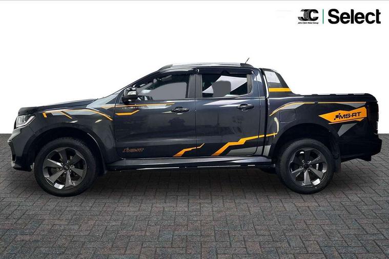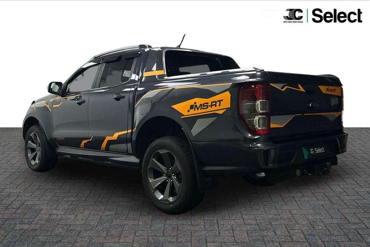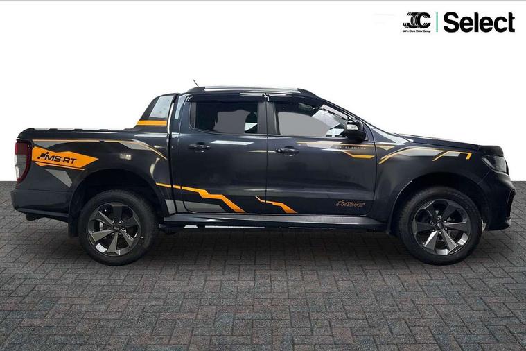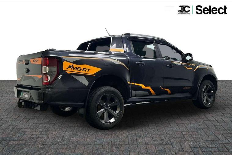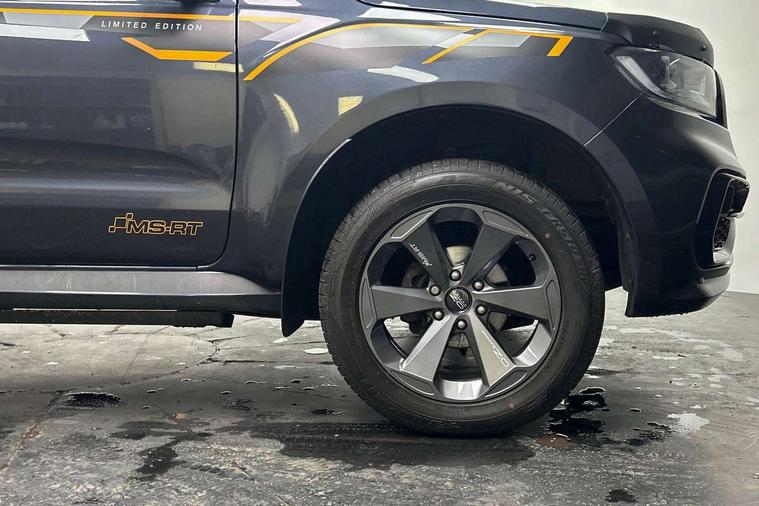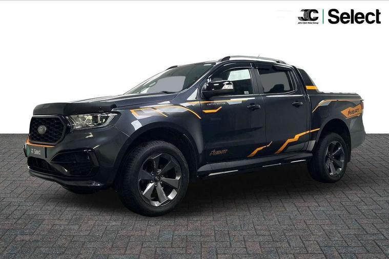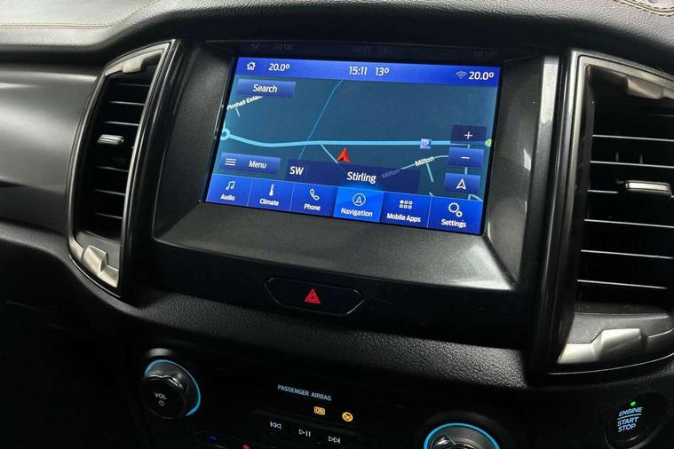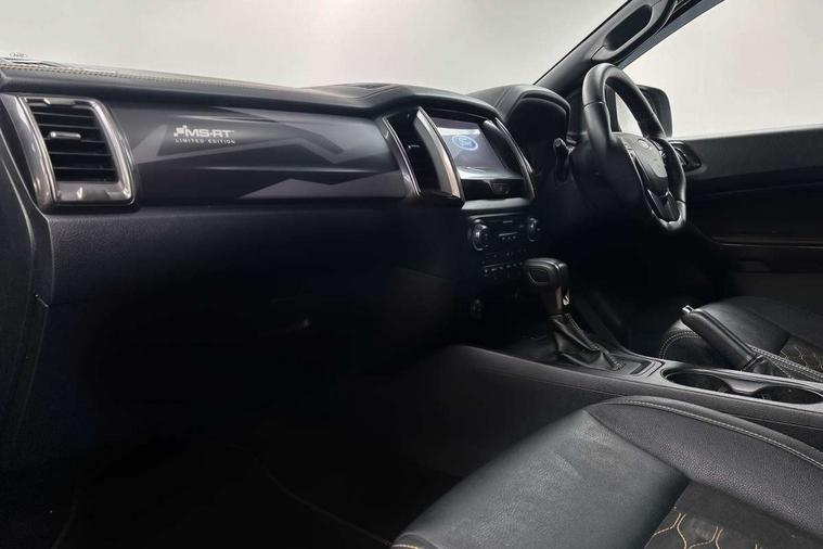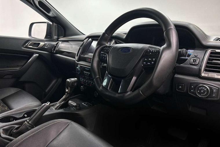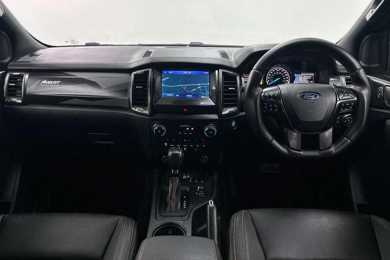 2 key fob, Collision mitigation braking system, Electric power assisted steering, Fixed rear view camera, Intelligent speed assistant, Lane keeping aid, Traffic sign recognition, Trip computer, Automatic headlights, Body coloured plastic front bumper, Boulder grey exterior door handle, Boulder grey exterior door mirror, Boulder grey radiator grille, Daytime running lights, Dual power heated fold back door mirror with puddle lamp and signal, Electrically operated windows with one shot driver's window, Electrochromic interior mirror, Front splash guard and mud flaps, Heated windshield and rear window, High mounted stop lamp with cargo area light, LED Front fog lamp, LED projector headlamps, Moulded in colour tailgate handle, Painted front fender grille, Privacy glass, Rain sensitive windshield wipers, Rear bumper chrome under-bar, Rear bumper step in boulder grey, Rear mudflaps, Roof rails, Side step with brushed inserts, Sports bar, Tailgate - Easy-lift/lower mechanism, Under hood engine cover, Underbody protection, Centre console coolbox, Chrome interior door handle, Driver seat back mounted map pocket, Dual control system - Electronic air temperature control (EATC), Ebony headliner, Heated front seat, Journey grain partial leather upholstery with Wildtrak logo, Leather gearknob, LED ambient interior lighting, Power adjustable 8 way driver seat, Premium front and rear floor mats with Wildtrak logo, Reach and rake adjustable steering column, Roof storage for driver sunglasses, Sport leather stitched steering wheel, Tie down rails and rope hooks, Wildtrak door trim panel insert, ICE feature pack 129 - Ranger, 3 point inertia rear seatbelts, Driver and front passenger airbag, side airbag, curtain airbag and driver knee airbag, ISOFIX child safety seat attachment, Seatbelt reminders for driver and front passenger, Tyre pressure sensors, Double locking power door lock with flip key, Immobiliser, Locking wheel nuts, Passive anti theft system, Passive keyless entry and start system, Power tailgate lock, Spare wheel lock, Thatcham category 1 alarm security system, ABS, ESP and roll over mitigation, Emergency brake assist, Engine start/stop system, Locking rear axle, Power converter,