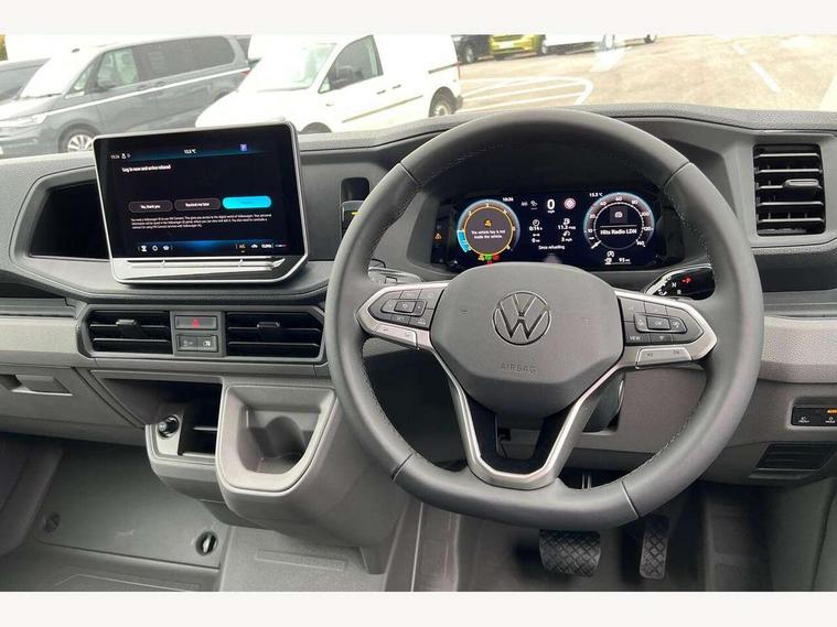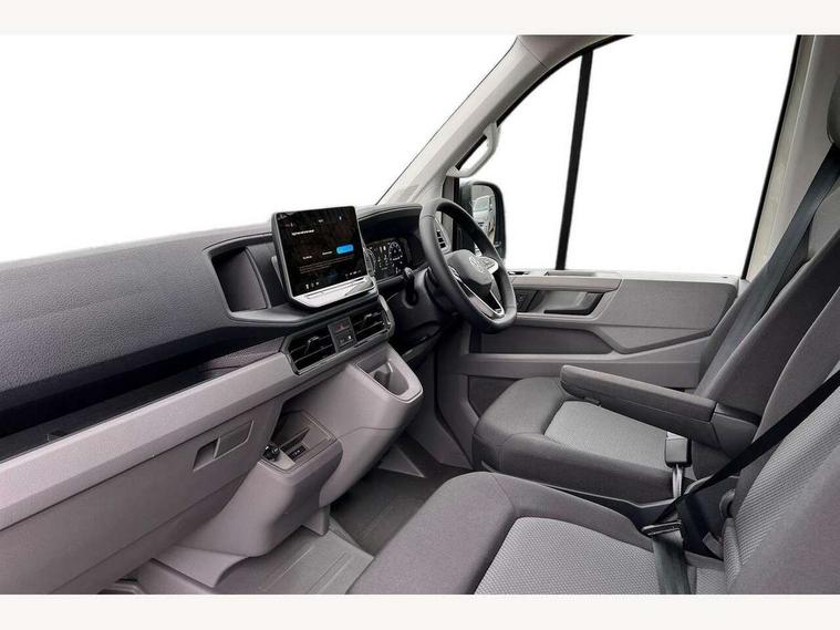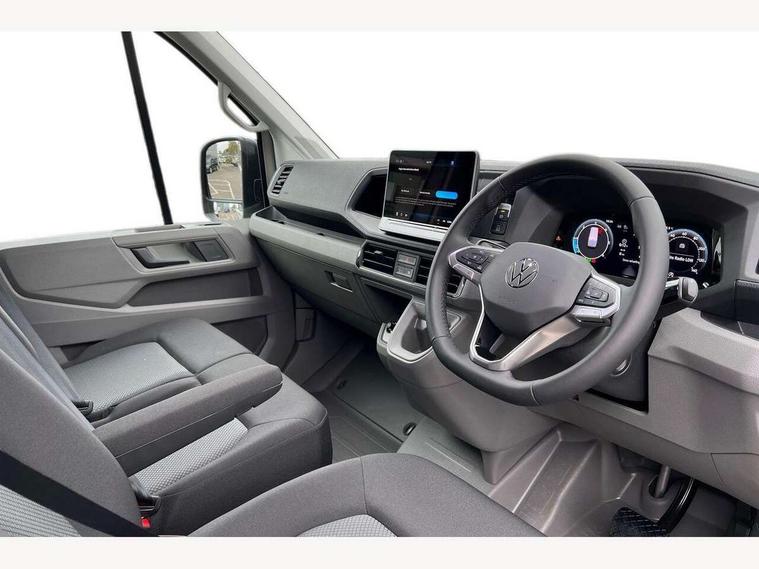 Bluetooth, Digital clock, Driver alert system, E-call + We connect basic preparation, Instrument cluster, Lights on warning buzzer, Locking fuel cap, Multi-function Display Plus, Rev counter, Service indicator, Speedometer, Voice control system, Composition media with 6.5" with we connect plus prep, 4 speaker, multifun display plus, USB, mob interface, app con, "We connect function", DAB Radio, Auto low beam mode, Leaving home function and manual coming home function, Cab doors, Convex and wide angle mirror, Driver seatbelt warning light, Electric windows, Electrically heated and adjustable door mirrors, Half painted front bumper, Heat insulating glass, Indicators in front door mirrors, One towing eye in front, Rear wing doors with 270 degree hinges, Special identification plate, Unpainted radiator grille, Air recirculation system, Ashtray, Centre console storage tray, CFCU preparation, Charcoal filter, Climatic air conditioning, Document holder on centre console, Drinks holders, Electromechanical Servotronic steering, Electronically controlled heating system, Fully adjustable suspension type driver seat, Grab handles on rear entry pillars, Height adjustable head restraints, Height and reach adjustable steering wheel, Illuminated glove compartment with lockable lid, Interior light, including 2 reading lights, Interior light, switchable by door, Jack and tool kit, Preparation for interface for external use with terminal block, Storage compartments in doors and in step, right, Storage tray on dashboard, Two 12V outlets in the cab (in the dashboard), Without rear side trim panel passenger load compartment, Non-smokers pack - Crafter, 3 point inertia reel belt on all seats, Automatic hazard light with emergency braking, Crosswind assist, Driver and front passenger airbag with front passenger airbag deactivation, Height adjustable seatbelts for outer cab seats, 1 rigid key, Anti-theft alarm with interior monitor, back up horn and tow away protect, overhead storage with two 1-DIN, reading light, SAFELOCK with 2 remote keys, Engine immobiliser, ABS, Automatic post collision braking system, EBA, EBD, EDL, ESP, Front disc brakes, HBA, Hill start assist, Parking brake - hill hold control, Start and stop system with regenerative braking, TCS, Hub cap covers,