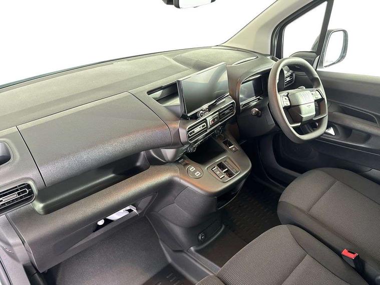 Connected services, Driver attention alert, Intelligent speed assistance speed limit information, Lane keep assist, PAS, Reverse parking sensors, Telematic box module with e-call, TPMS (Tyre pressure monitoring system), 180 degree opening asymmetrical solid panel rear doors, Automatic headlight control, Black door handles, Black exterior mirrors, Black front and rear bumpers, Black side protection mouldings, Black sliding door rail cover, Electric adjustable/heated door mirrors, Electrically operated front windows with one touch facility, Halogen headlamps, High beam assist, Integrated daytime running lights, Short Antenna, Sliding door in left and right side, 12v Front plug on dashboard, 4 way reach, rake folding passenger seat, 6 way reach, rake, height and lumbar adjust comfort driver seat, Adjustable head restraints, Audio Controls steering wheel buttons, Chrome air vents, Chrome interior door handle, Full bulkhead with cloth hooks, Hard plastic floor protection in cabin, Mica cloth upholstery, Overhead storage shelf in cabin, Reach and rake adjustable steering column, Six Fixed floor mounted load restraint lashing eyes, Sport steering wheel, Acoustic vehicle alerting system, Automatic activation of hazard warning lights on major deceleration, Driver's airbag, Front passenger airbag, Row-1 side curtain airbag, Row-1 side thorax airbag, Seatbelt with action, Dashboard mounted central locking push button and auto locking above 7mph, Deadlocking for passenger and cargo area, Immobiliser, Primary and spare folding keys, Remote control central deadlocking, ABS, Electronic brake force distribution, Electronic Stability Control (ESC), Emergency brake assist, Engine start/stop system, Hill holder system, Hill start assist, 16" Grey steel wheels with half hubcap, 205/60 R16 96H XL Class A+ tyres,