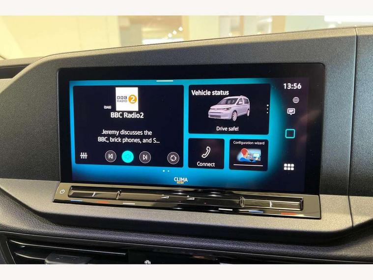 Bluetooth - Mobile phone interface, Car2X technology, Driver alert system, eCall emergency system, Intelligent Speed Assist, Lane assist, Seatbelt warning indicator, Service indicator, Start-stop system with regenerative braking, 2 USB interfaces type C in dashboard, DAB Radio, We Connect Basic Preparation, Automatic hazard light activation under emergency braking, Electric front windows, Heat insulating windscreen, Roof rail preparation, Windscreen wiper with variable intermittent delay and wash-wipe system, Dimming breakaway interior rear view mirror, Electronically controlled heating system, ergoComfort seats for driver, Interior light in headliner incorporting LED technology, Lockable glove compartment door with light, Manual heating and ventilation system, Manual height adjustment for front seats and seat cushion inclination and depth adjustment on drivers seat, Multi function leather steering wheel, Power-adjustable lumbar support for drivers seat, Reach and rake adjustable steering column, Six lashing points for securing loads, Steering wheel paddle shift, Storage compartments under driver and front passenger seats, Sun visors with mirror, airbag label on front passenger sun visor, 3-point seat belts in front, with pretensioner and height adjustment, Driver and front passenger airbag with front passenger airbag deactivation, Tyre pressure monitoring system, Anti-theft alarm system, interior monitoring, backup horn, and towing protection, Electronic engine immobiliser, Remote central locking with deadlocks, interior locking, Anti locking braking system (ABS), Automatic post collision braking system, Brake assist, Diesel particulate filter, Electric parking brake with auto hold function, Electronic brake force distribution (EBD), Electronic differential lock (EDL), Electronic stabilisation programme (ESP), Engine drag torque control (MSR), Hill hold assist, Traction control system (TCS), Decorative beige birch vein inserts, Full size wheel trims,