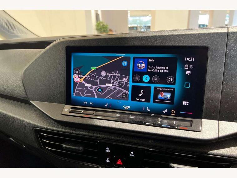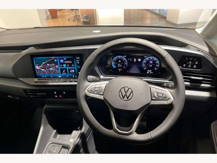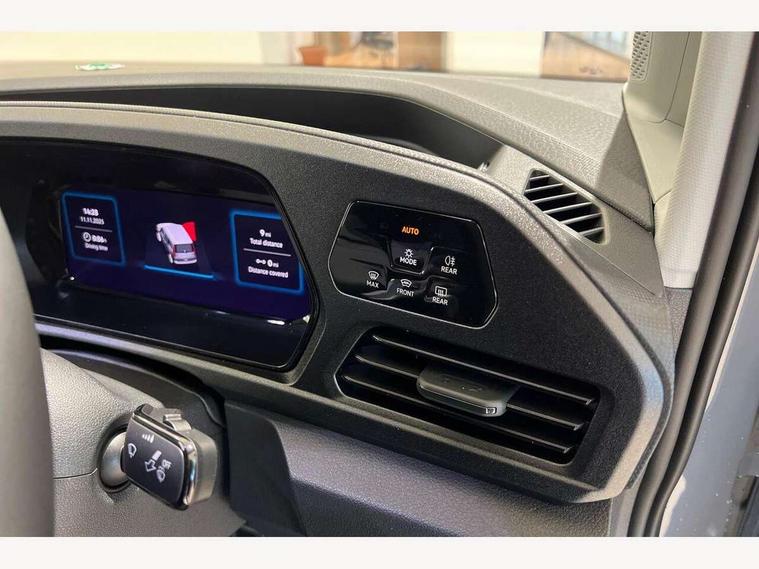 Driver alert system includes drowsiness detection, Emergency call control unit with eCall, Multi-function Display, Seatbelt warning indicator, Service indicator, Start-stop system with regenerative braking, DAB Radio, We Connect Plus Preparation, Automatic hazard light activation under emergency braking, Black painted exterior mirror housings, body-colored door handles and Silver sliding door rail, Body coloured bumpers, Electric front windows, Heated windscreen, LED rear combination lights, LED rear tail lights, Roof rail preparation, Windscreen wiper with variable intermittent delay and wash-wipe system, Electronically controlled heating system, ergoComfort seats for driver, Interior light in headlining, Lockable glove compartment door with light, Manual height adjustment for front seats and seat cushion inclination and depth adjustment on drivers seat, Multi function leather steering wheel, Power-adjustable lumbar support for drivers seat, Reach and rake adjustable steering column, Six lashing points for securing loads, Steering wheel paddle shift, Storage compartments under driver and front passenger seats, Sun visors with mirror, airbag label on front passenger sun visor, 3-point seat belts in front, with pretensioner and height adjustment, Driver and front passenger airbag with front passenger airbag deactivation, Anti-theft alarm system, interior monitoring, backup horn, and towing protection, Electronic engine immobiliser, Remote central locking with deadlocks, interior locking, Anti locking braking system (ABS), Automatic post collision braking system, Electric parking brake with auto hold function, Electronic brake force distribution (EBD), Electronic differential lock (EDL), Electronic stabilisation programme (ESP), Emergency brake assist, Engine drag torque control (MSR), Hill hold assist, Traction control system (TCS), Decorative beige birch vein inserts, Wheel bolts with anti-theft protection (unlockable),