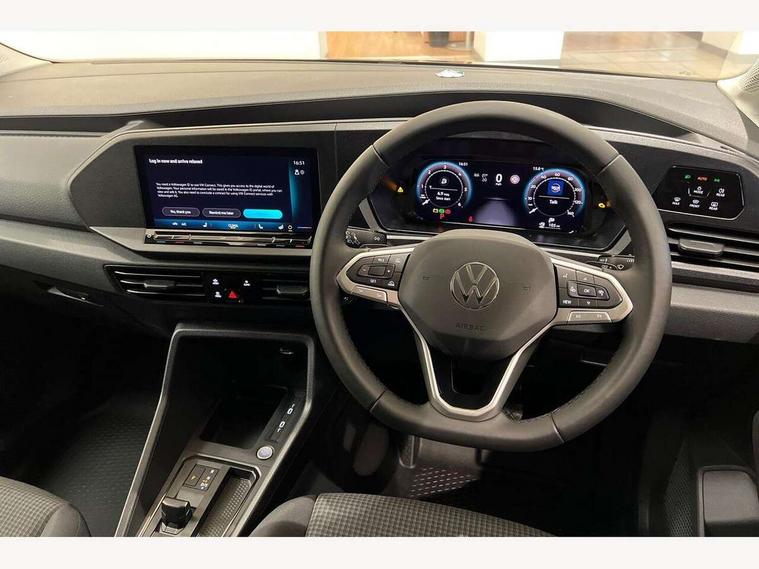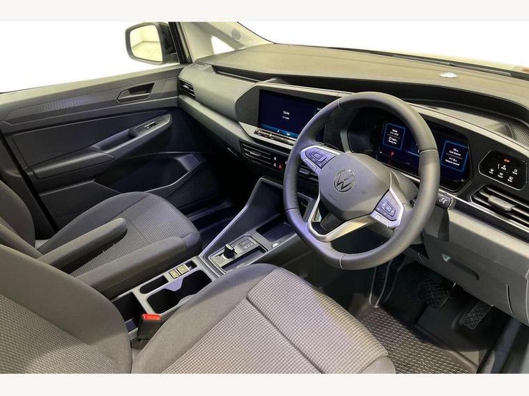 Bluetooth - Mobile phone interface, Car2X technology, Driver alert system, eCall emergency system, Intelligent Speed Assist, Lane assist, Seatbelt warning indicator, Service indicator, Start-stop system with regenerative braking, 2 USB interfaces type C in dashboard, App-Connect - Wireless for Apple CarPlay, DAB Radio, We Connect Plus Preparation, Automatic hazard light activation under emergency braking, Black painted exterior mirror housings, body-colored door handles and Silver sliding door rail, Body coloured bumpers, Electric front windows, LED rear combination lights, LED rear tail lights, Roof rail preparation, Windscreen wiper with variable intermittent delay and wash-wipe system, Dimming breakaway interior rear view mirror, Electronically controlled heating system, ergoComfort seats for driver, Interior light in headliner incorporting LED technology, Lockable glove compartment door with light, Manual heating and ventilation system, Manual height adjustment for front seats and seat cushion inclination and depth adjustment on drivers seat, Multi function leather steering wheel, Power-adjustable lumbar support for drivers seat, Reach and rake adjustable steering column, Six lashing points for securing loads, Steering wheel paddle shift, Storage compartments under driver and front passenger seats, Sun visors with mirror, airbag label on front passenger sun visor, Winter pack plus - Caddy, 3-point seat belts in front, with pretensioner and height adjustment, Driver and front passenger airbag with front passenger airbag deactivation, Tyre pressure monitoring system, Anti-theft alarm system, interior monitoring, backup horn, and towing protection, Electronic engine immobiliser, Remote central locking with deadlocks, interior locking, Anti locking braking system (ABS), Automatic post collision braking system, Brake assist, Diesel particulate filter, Electric parking brake with auto hold function, Electronic brake force distribution (EBD), Electronic differential lock (EDL), Electronic stabilisation programme (ESP), Engine drag torque control (MSR), Hill hold assist, Traction control system (TCS), Decorative beige birch vein inserts, Wheel bolts with anti-theft protection (unlockable),
