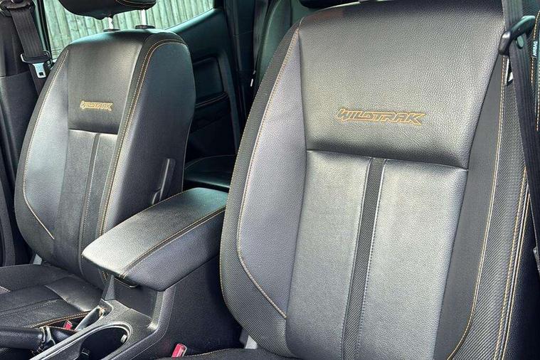 2 key fob, Collision mitigation braking system, Electric power assisted steering, Fixed rear view camera, Intelligent speed assistant, Lane keeping aid, Traffic sign recognition, Trip computer, Automatic headlights, Body coloured plastic front bumper, Boulder grey exterior door handle, Boulder grey exterior door mirror, Boulder grey radiator grille, Daytime running lights, Dual power heated fold back door mirror with puddle lamp and signal, Electrically operated windows with one shot driver's window, Electrochromic interior mirror, Front splash guard and mud flaps, Heated windshield and rear window, High mounted stop lamp with cargo area light, LED Front fog lamp, LED projector headlamps, Moulded in colour tailgate handle, Painted front fender grille, Privacy glass, Rain sensitive windshield wipers, Rear bumper chrome under-bar, Rear bumper step in boulder grey, Rear mudflaps, Roof rails, Side step with brushed inserts, Sports bar, Tailgate - Easy-lift/lower mechanism, Under hood engine cover, Underbody protection, Centre console coolbox, Chrome interior door handle, Driver seat back mounted map pocket, Dual control system - Electronic air temperature control (EATC), Ebony headliner, Heated front seat, Journey grain partial leather upholstery with Wildtrak logo, Leather gearknob, LED ambient interior lighting, Power adjustable 8 way driver seat, Premium front and rear floor mats with Wildtrak logo, Reach and rake adjustable steering column, Roof storage for driver sunglasses, Sport leather stitched steering wheel, Tie down rails and rope hooks, Wildtrak door trim panel insert, ICE feature pack 129 - Ranger, 3 point inertia rear seatbelts, Driver and front passenger airbag, side airbag, curtain airbag and driver knee airbag, ISOFIX child safety seat attachment, Seatbelt reminders for driver and front passenger, Tyre pressure sensors, Double locking power door lock with flip key, Immobiliser, Locking wheel nuts, Passive anti theft system, Passive keyless entry and start system, Power tailgate lock, Spare wheel lock, Thatcham category 1 alarm security system, ABS, ESP and roll over mitigation, Emergency brake assist, Engine start/stop system, Locking rear axle, Power converter,