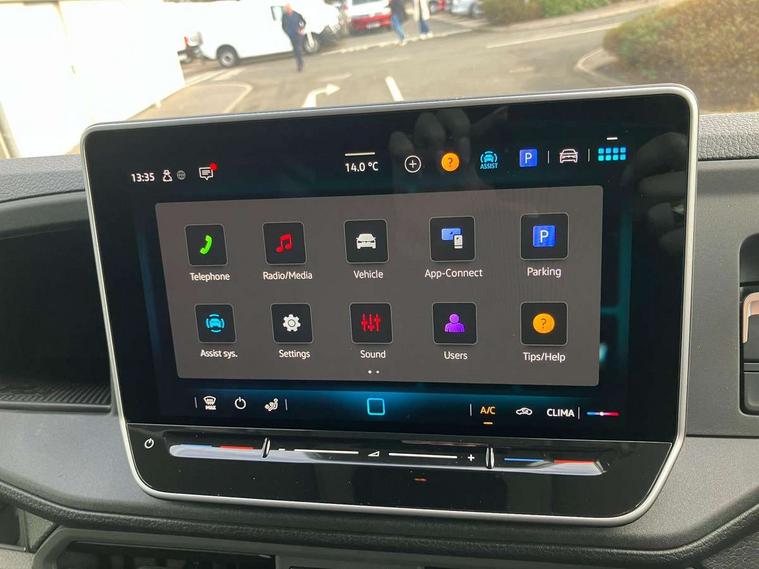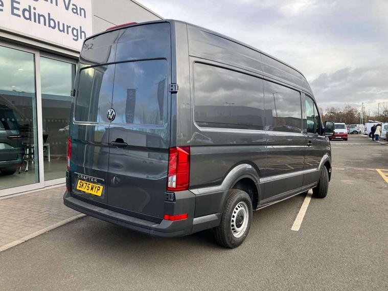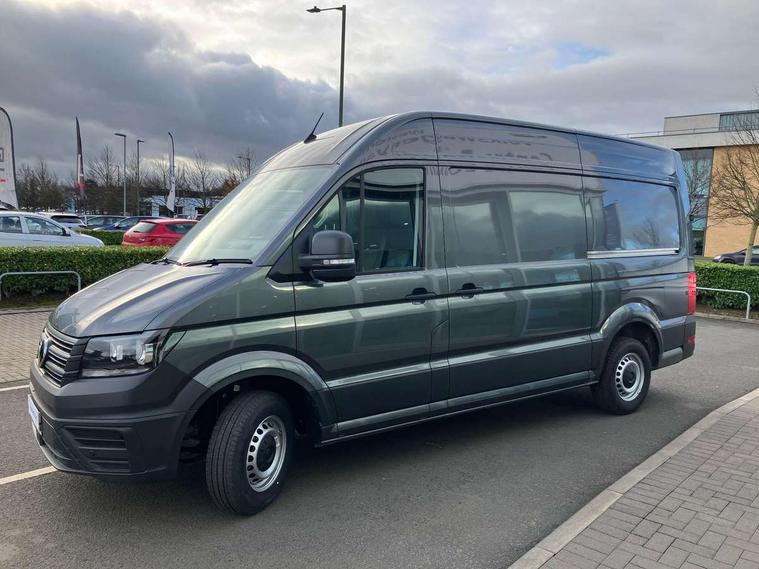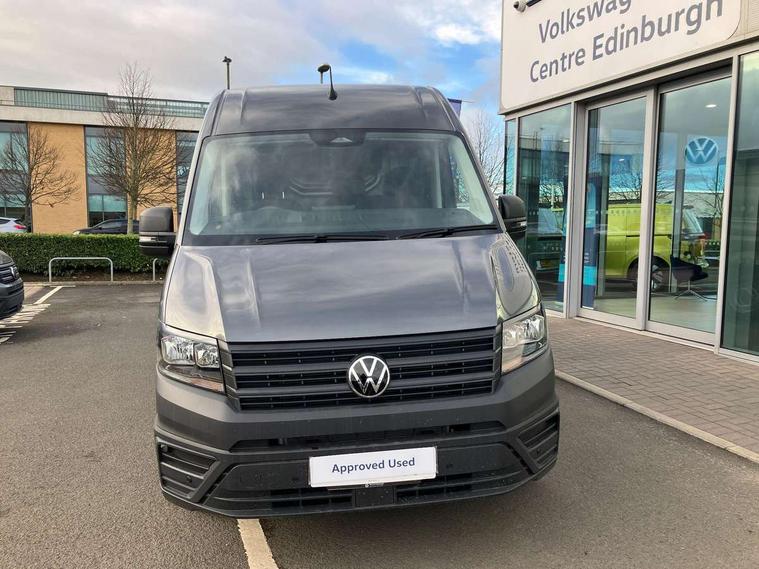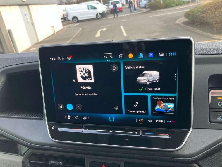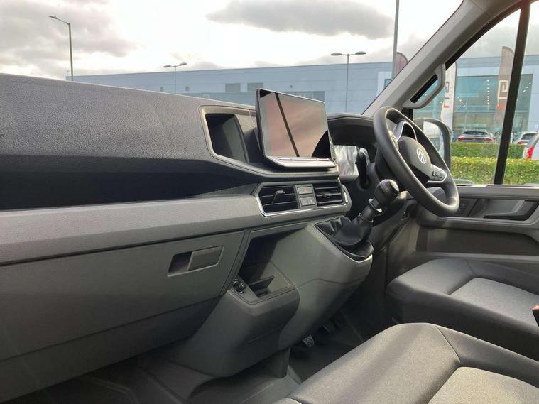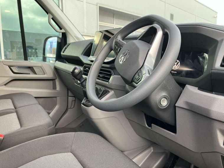 Advanced driver attention and drowsiness monitor, Blind spot monitor, Bluetooth, Digital clock, Digital cockpit with active Info display, Dynamic road sign display, E-call + We connect basic preparation, Forward collision warning with warning and braking reaction to vehicles, pedestrians and cyclists, Front assist including city emergency braking, Instrument cluster, Lane keeping assist, Lights on warning buzzer, Locking fuel cap, Rev counter, Roof console for interior lighting control, Service indicator, Speedometer, USB socket at top of windscreen, Wireless charging, 2 USB C ports in dashboard, DAB Radio, Auto low beam mode, Leaving home function and manual coming home function, Black unpainted plastic front bumper, Cab doors, Convex and wide angle mirror, Driver seatbelt warning light, Electric windows, Heat insulating glass, Indicators in front door mirrors, One towing eye in front, Rear badges, Special identification plate, Touch panel control for exterior lights, Unpainted radiator grille, Windscreen wiper auto control with light and rain sensor, Air recirculation system, Ashtray, Centre console storage tray, CFCU preparation, Charcoal filter, Document holder on centre console, Drinks holders, Electromechanical Servotronic steering, Electronically controlled heating system, Fully adjustable suspension type driver seat, Height adjustable head restraints, Height and reach adjustable steering wheel, Illuminated glove compartment with lockable lid, Interior light, including 2 reading lights, Interior light, switchable by door, Jack and tool kit, Preparation for interface for external use with terminal block, Storage compartments in doors and in step, right, Storage tray on dashboard, Two 12V outlets in the cab (in the dashboard), Without rear side trim panel passenger load compartment, Non-smokers pack - Crafter, 3 point inertia reel belt on all seats, Automatic hazard light with emergency braking, Crosswind assist, Driver and front passenger airbag with front passenger airbag deactivation, Height adjustable seatbelts for outer cab seats, 1 rigid key, Central locking system with Keyless Go without SAFELOCK entry - Keyless entry and start, Engine immobiliser, ABS, Automatic post collision braking system, EBA, EBD, EDL, Electronic parking brake - hill hold control, ESP, Front disc brakes, HBA, Hill start assist, Start and stop system with regenerative braking, TCS, Hub cap covers,