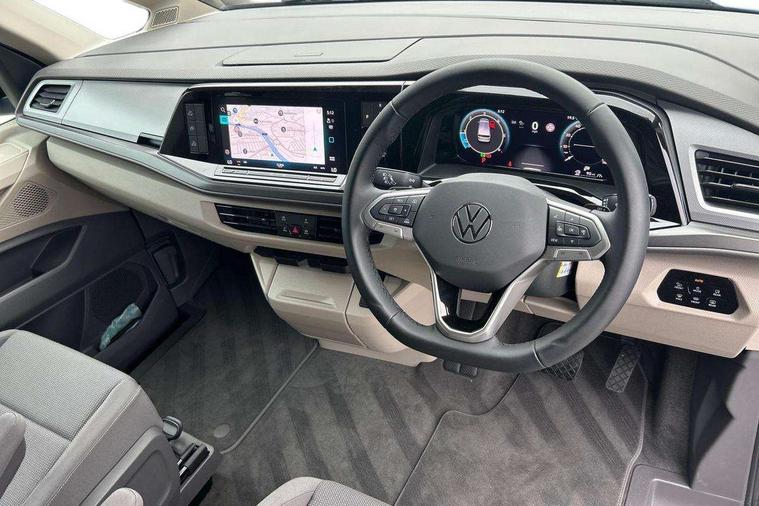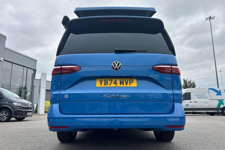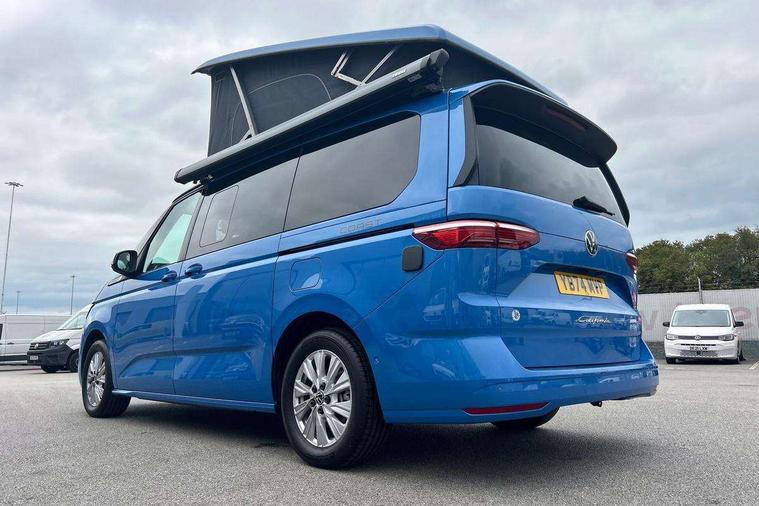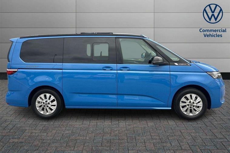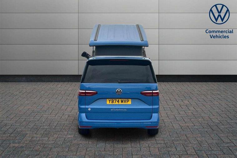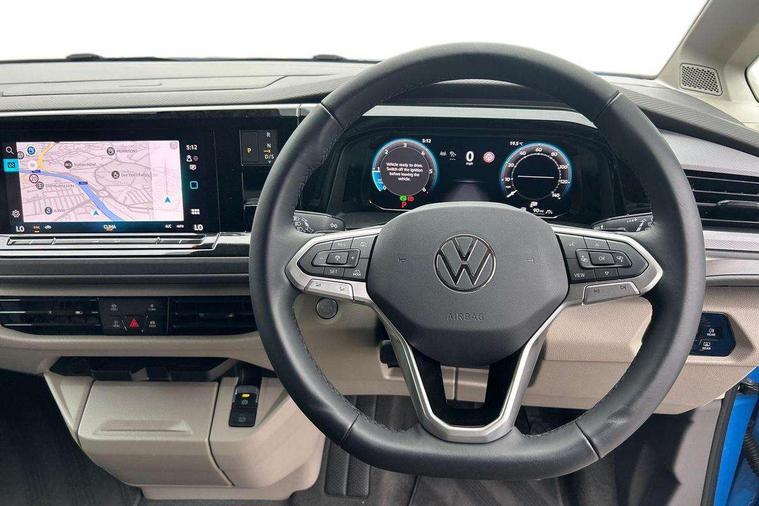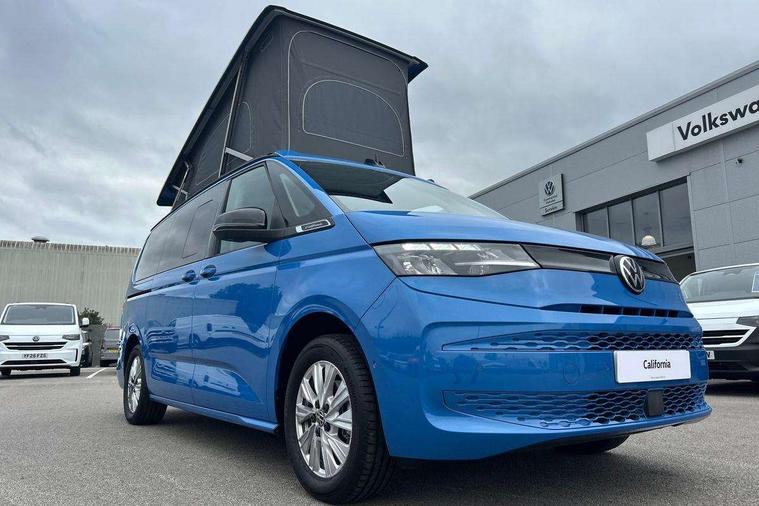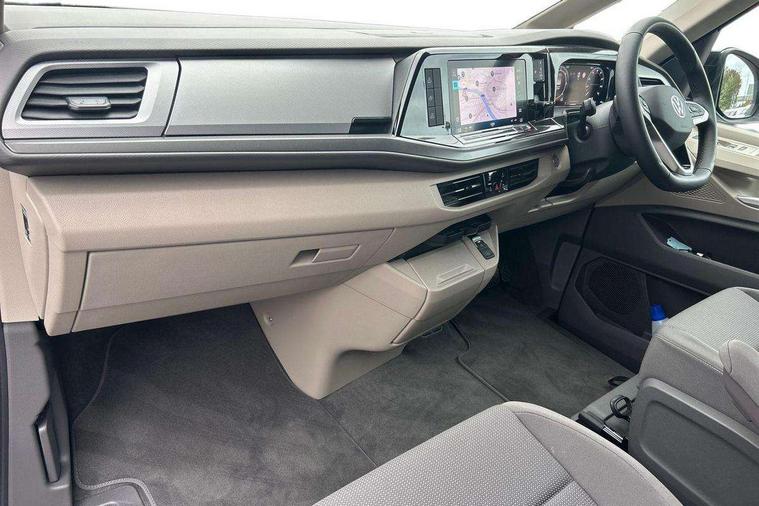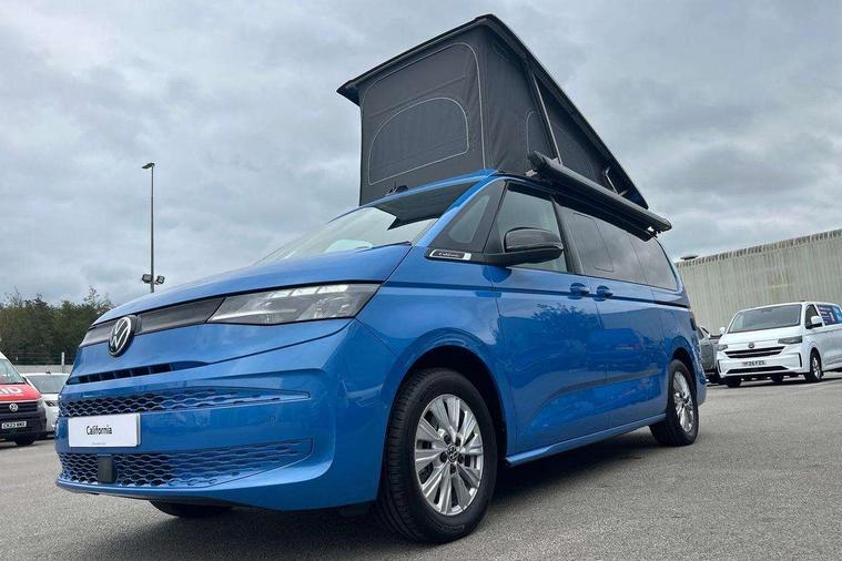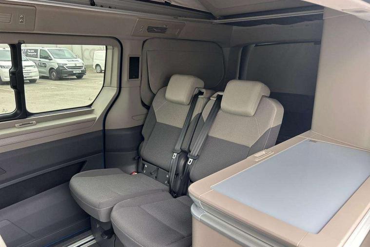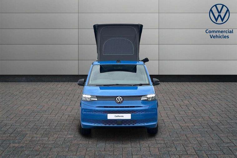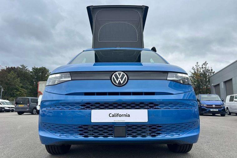 AppConnect including wireless Apple CarPlay, California on tour app, Digital cockpit pro, eCall emergency system, Function control unit, IDA voice assistant and voice enhancer, Lane keeping system Lane Assist, Mobile phone interface, Multifunction camera, Online service, with OCU, with head unit coding, without WFS federation, PAS, Preparation for online services, Tailgate with window aperture, Traffic sign recognition, Turn assist with evasive assistance, 2 USB-C ports at the front, 4 USB-C charging sockets in the passenger compartment, 8 passive speakers, Digital radio reception (DAB+), 65% light absorbing privacy glass, A-pillar, D pillar and tailgate, All weather light, Ambient lighting in door area, Electro hydraulic elevating roof, with three windows including one front passengers panorama opening, canvas in Basalt Grey, Four speed control for windscreen wipers, Front window in laminated safety glass with heat and noise-insulating, Heated windscreen, High gloss black door mirrors, Molding between headlamps painted to glossy black, Nameplate set California, Rear boot, Sliding door on the left passenger compartment, Sliding door on the right passenger compartment, Sliding window in front and fixed window in rear in rear passenger compartment at right, Tailgate closure without unlocking function from the inside, Windscreen wiper intermittent control, 2 single seats with integrated seatbelt and sleeping mat, 230V interver with socket on driver seat, Additional interior noise attenuation, Alcohol interlock, Armrest on front swivel seats in both sides with electric lumbar support, Darkening roller blinds and thermo mats, Drawers under the seats in the driver and passenger compartment + 2 waste bins, Front and rear headrests, Kitchen with outdoor folding table for cooking in décor 1, Lockable glove compartment without lighting, Multifunction leather steering wheel with paddle shifters, Plastic floor covering in passenger/load compartment, Single front passenger seat, Sleeper seats, Surround lighting in door area, Swivel seat on left with height adjustable including drawer, Swivel seat on right with height adjustable including drawer, 3x3 point automatic seatbelts at the rear outside with ECE label, with/without belt tensioner, Advanced driver attention, Autonomous emergency braking front assist with pedestrian and cyclist monitoring, Driver and front passenger airbags with front passenger airbag deactivation button, Drowsiness detection, First aid kit with warning triangle and safety vest, Front disc brakes, Height adjustable three point automatic seatbelts at front with belt and end fitting tensioners, Side and curtain airbags for driver and front passenger, curtain airbags for outer seats in rear, centre airbag in front, Swerve support and oncoming vehicle braking when turning, Tyre pressure loss indicator, Anti theft alarm system with interior monitoring in cab, backup horn and towing protection, Central locking system with keyless locking and starting system keyless advanced with safelock, Lockable wheel bolts, Scale light grey decorative inlays, Full wheel covers, Tool kit, Trims for alloy wheels, Tyre mobility kit,