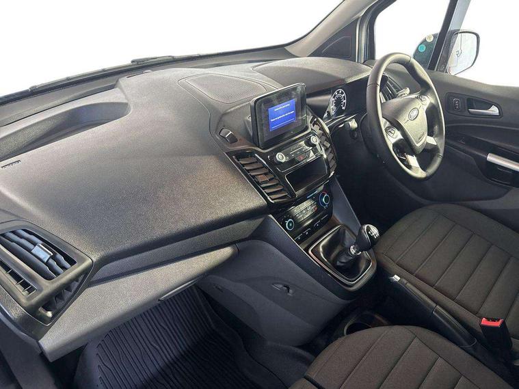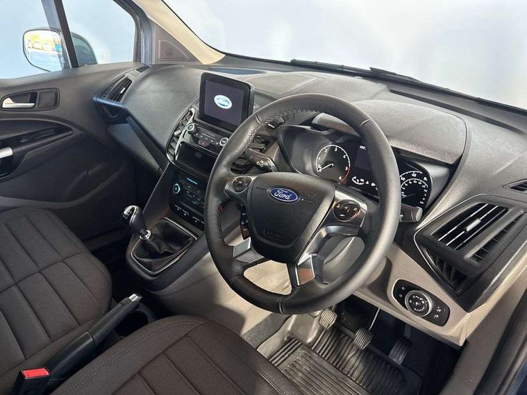 Easy fuel capless refuelling system, Eco coach, Embedded modem, Mid series analog cluster, PAS, Trip computer, Steering wheel mounted audio controls, 180 degree rear cargo doors, Active grille shutter, Automatic headlamps with follow me home with automatic windshield wiper, Body colour side protection mouldings, Body coloured door handles, Body coloured door mirrors, Body coloured lift/decklid exterior handles, Body coloured plastic front bumper, Body coloured rear bumper end caps, Daytime running lights, Driver one touch up/down power windows, Dual power heated fold back mirrors, Electric windshield defroster, Emergency brake light flashing, Front fog lights with adaptive cornering, Front lip spoiler, High mounted stop lamp, Hinged rear cargo door, Instrument panel stowage box, Moulded colour 3 bar radiator grille, Non infra red reflection windscreen, Rear fog lights, Rear tinted glass, Self coloured rear bumper, 12V socket, 2 front cupholders, 2 way front headrestraints, 4 way manually adjustable driver seat with lumbar support, Bright interior door handles, Centre console, Complete rear trim board, Configurable interior light, Door trim panel level 2, Driver seat rotary recliner, Driver sunvisor with mirror and ticket pocket, Front grab handles, Glove box lights, Glovebox with lid, Header courtesy lights with 2 map lights, High series fabric soft door armrest, Leather steering wheel, LED load compartment light, Ligne cloth upholstery, Overhead storage compartment, Passenger seat rotary recliner, Passenger sunvisor, Pollen filter without carbon filter, Reach and rake adjustable steering column, Refrigerant R134a, Rubber partial floor covering, Sensico gear shift knob, Key combination pack 2 - Transit Connect, Black seat belt, Child proof rear door locks, Driver airbag restraint, Enabled door auto relocking, Front active seat belts, Front seat belt adjuster, Configurable Unlocking, Immobiliser, Keyless start, Locking wheel nuts, Power door dead locks, Remote central double locking, Thatcham category 1 alarm with 2nd remote key, ABS, Auto start/stop system, Emergency brake assist, Heavy duty battery, Hill start assist, Power 4-wheel disc, Standard duty alternator, Traction control, 16" 6.5 7 spoke aluminium alloy wheels, 205/60 R16 tyre, Less wheel cover, Standard tire tread,