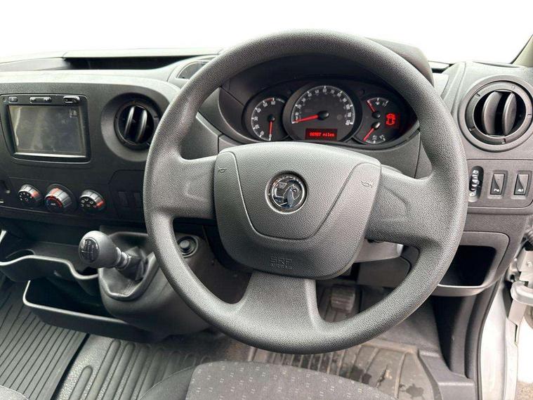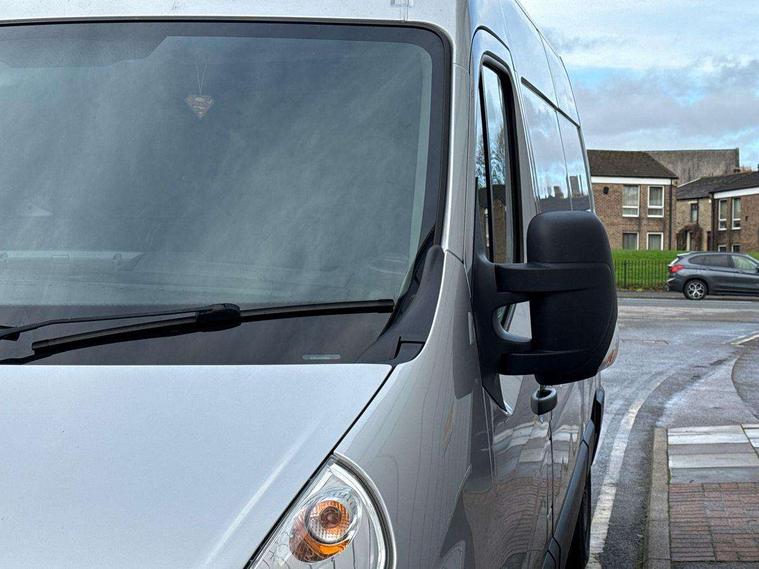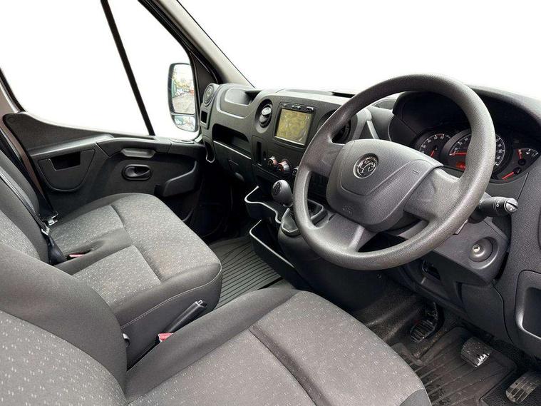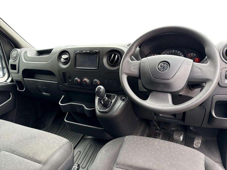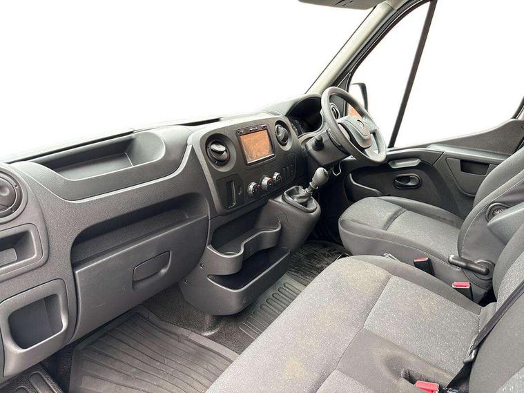 Central fascia display with digital clock, outside air temperature and audio information, Instrumentation - Speedometer, rev counter, fuel gauge with low fuel warning light and coolant temperature warning light, Monochrome display in instrument cluster with odometer, service due indicator and trip computer data, PAS, Shift-up indication light, Warning indicators - Low oil level, low brake fluid, brake pad wear, battery, fuel filter, low AdBlue level, seatbelt warning and doors open, Steering wheel mounted audio controls with flexible roof mounted aerial, 2 speed windscreen wipers with intermittent wipe and electric screenwash, Electrically adjustable, heated and folding door mirrors, wide angle driver side door mirror and integrated side repeat indicators, Electrically operated front windows, Integral steps in front bumper, laminated windscreen, and body side protection mouldings, Internal lockable rear and sliding side access doors and under floor spare wheel storage, Nearside blind spot and junction mirror in front passenger sunvisor, 2 coat hooks, 6 way adjustable drivers seat, Extension cabin storage, Facia mounted gear lever, Facia storage at driver's coin, ticket, card holder, oddments storage, glovebox lid, central drink holder and front passenger document tray, Fade down cabin courtesy light, Fixed floor mounted load restraint lashing eyes X 8 with nearside/offside rear door column load restraint eyes, Height adjustable steering wheel, Large front door pockets with drinks holder and oddments pocket, Map reading lights, Mobile phone storage with 12V socket, Overhead storage compartment, Twin passenger assist handles, Twin sunvisors, Vinyl - cab floor covering, Standard lighting pack - Movano, Driver's airbag, Height adjustable outer front seatbelts, Electronic engine deadlock immobiliser, steering column lock and secure fuel filler flap, Remote control door locking, selective door locking, two keys with integral remote and door deadlocks, 12V power socket beside gear lever, 22 litres AdBlue tank, 95Ah battery and 185A alternator, Electronic brake force distribution (EBFD), Electronic stability programme plus with traction control, Emergency brake assist, Floor mounted handbrake lever, Four channel Anti lock braking system, Front ventilated disc brakes, Hill start assist, MacPherson front suspension with independent double wishbones, coil spring and telescopic dampers, Rear disc brakes, 16" steel wheels,