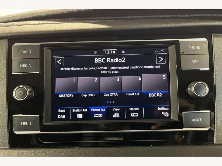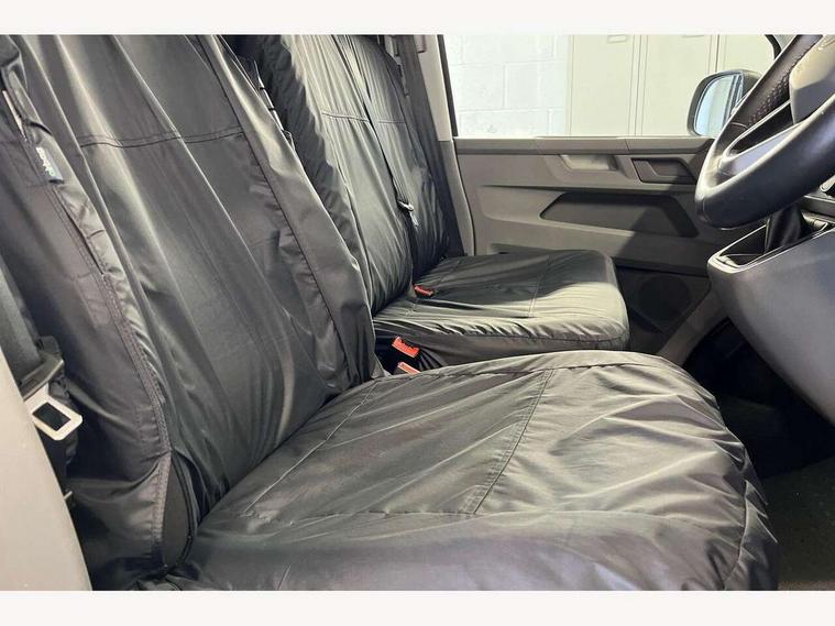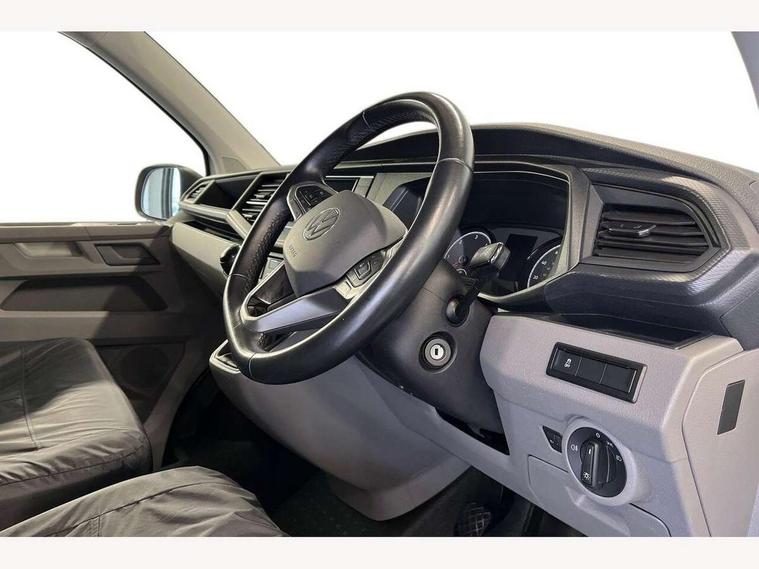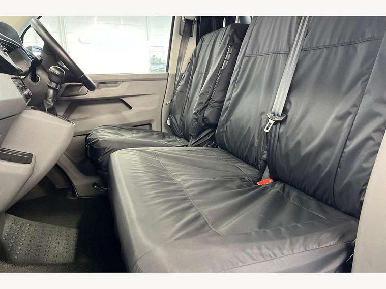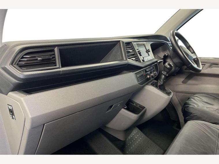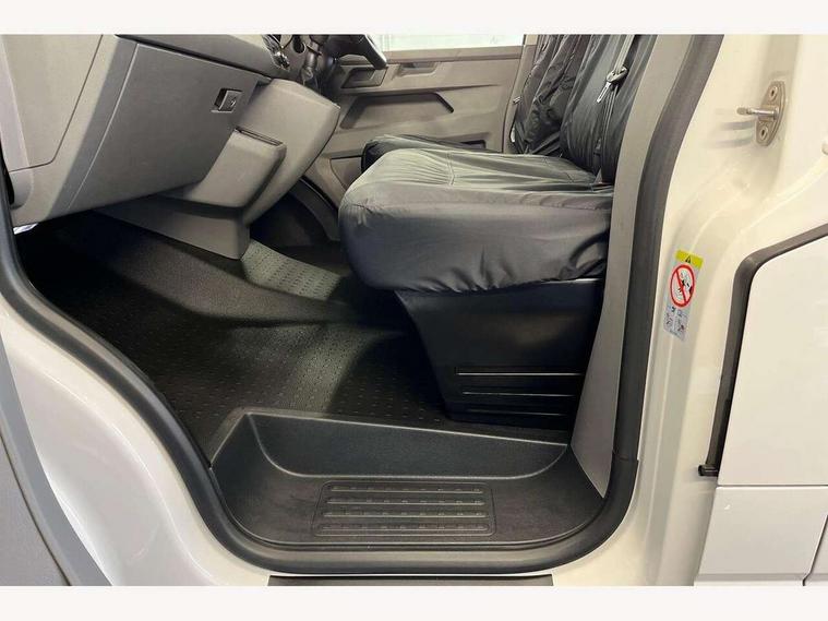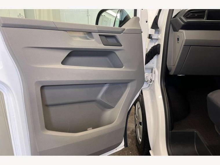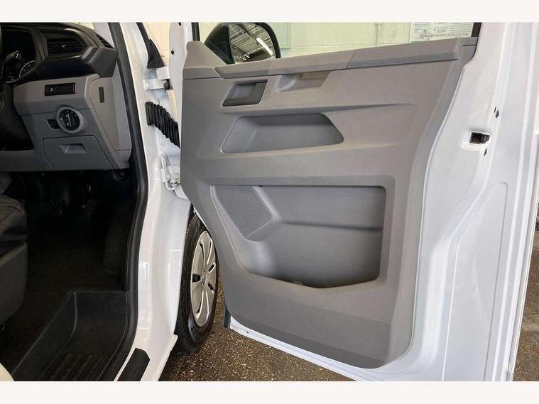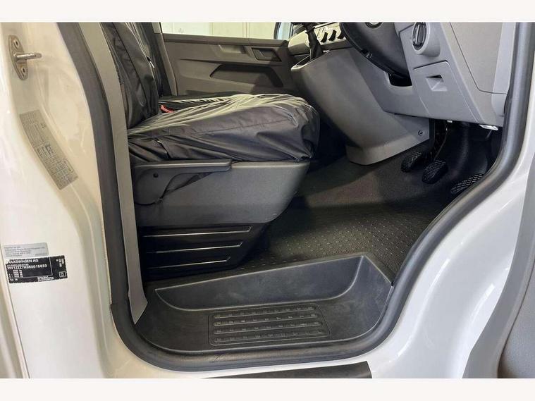 Cross wind assist, Dimmable illuminated instruments, Driver alert with Multi-function display plus, eCall emergency system, Forward collision warning front assist with autonomous emergency braking, Mobile phone interface, Multi function display plus with black and white display, 2 USB interfaces type C in dashboard, 4 speakers with 2 tweeters and 2 woofers, Composition colour radio with 6.5" touchscreen, Digital radio reception (DAB+), Volkswagen app connect, Closing rear wing door with unlatching from the inside, H7 twin halogen headlamps, Heat insulating glass (green) in cab and passenger/load compartment, Heat insulating windshield made of laminated glass, Left convex exterior mirror, Rear wing doors without window apertures, Right convex exterior mirror, Separate Daytime running lights, Transporter nameplate on the rear fender, Unpainted radiator grille with 2 chrome trims, 3 spoke leather wrapped multi function steering wheel, Comfort headliner in cab, hardboard roof trim in passenger and load compartment, Dust/pollen filter, Folding grab handles on roof frame, Front and rear left without window closed side panel in load compartment, Front seats on the right in 1st row of seat, Heavy duty tool kit and jack, High partition, Interior plastic loading edge protection, LED Interior lighting in load and passenger compartment, Standard lower part dashboard in palladium, Without refrigerant, Without right side window apertures in passenger and load compartment, Non smoker pack - Transporter, 3 point height adjustable seat belts on outer seats cab with electric pretensioners, Driver and front passenger airbag with front passenger airbag deactivation, Warning buzzer and light for driver and front passenger seat belt not fastened, Without child safety lock in passenger compartment, Electronic immobiliser, Wheel bolts without wheel locks, 16" chassis with 16" brake system, Diesel particulate filter, Electronic stability control, ABS, ASR with deactivation button, hill start assist and brake assist system, Standard anti drum measures, Start/stop system with regenerative breaking,