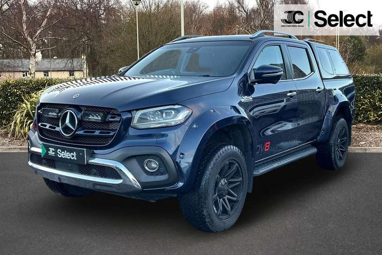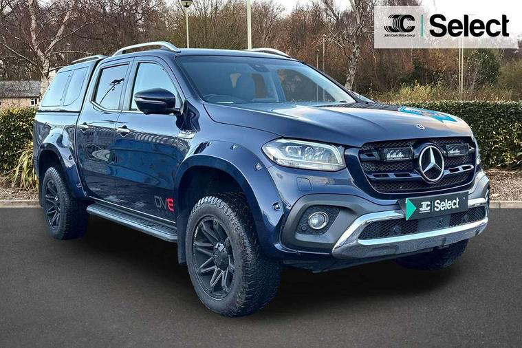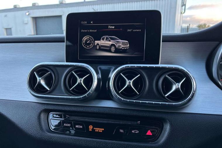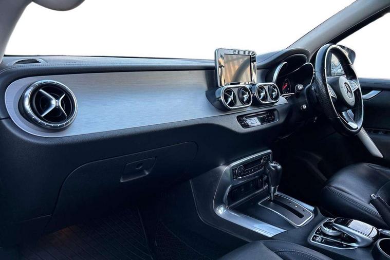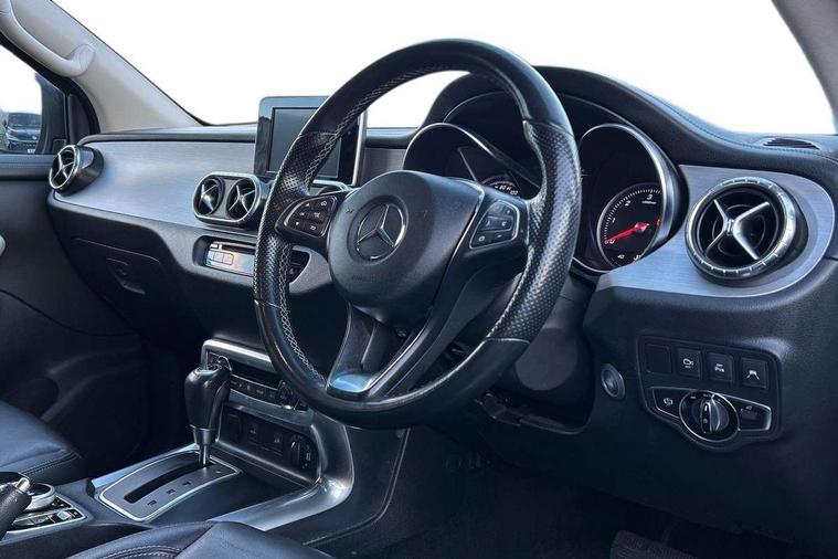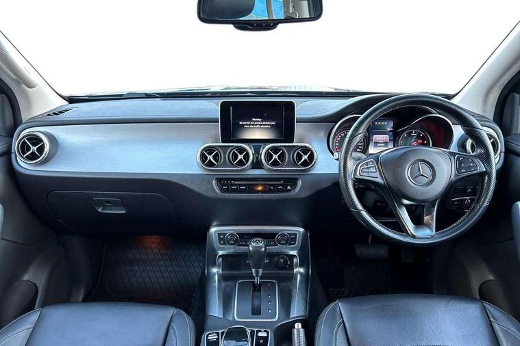 Active lane keeping assist, Cruise control, Dynamic select, Instrument cluster with colour display, Mercedes connect me, Seatbelt warning indicator, Traffic sign recognition, Tyre pressure monitor, 8 speakers, Digital radio (DAB), Aluminium Door Sill Covers with Mercedes-Benz lettering, Auto dimming interior mirror with integrated compass, Automatic windscreen wipers, Chrome door handles, Chrome fog light surrounds, Chrome rear bumper with integrated step, Comfort turn signal, Daytime running lights, Electric folding door mirrors, Electrically adjustable door mirrors, Front body colour bumper with simulated under guard in chrome, Front fog lights, Headlight washers, Heat insulated windscreen with filter band, Heated door mirrors, Instrument panel and door beltlines in Artico artificial leather with topstitching, Integrated radio aerial, LED brake lights, LED high performance headlamps with cleaning system, LED tail light, Radiator grille with integrated Mercedes-Benz star and 2 bars finished in matt iridium silver, Rain sensor, Shoulder line trim strips in chrome, 12V socket, 4 tie down loops, 8 way electrically adjustable front seats, Aluminium look dashboard, Anchoring rail system on both sides of load area, Automatic child seat recognition, Auxiliary electric heater, Carpet covered floor, Centre console with storage and armrest, Cup holder, Driver and passenger lumbar support, Driver and passenger sunvisors with illuminated vanity mirrors, Electrical component for trailer socket, Electrical connection, i-Size and Isofix with top tether child restraint system on outer rear seats, Instrument dials with round covers, Leather gearshift lever, Leather handbrake lever, Lighting on front footwell with exit lamps, Load box LED lights, Load securing rail system, Multifunction black nappa leather steering wheel with 12 buttons and chrome highlights, Passenger footwell storage net, Round air vents finished in chrome, Thermotronic automatic climate control, Anti theft protection pack - X Class, Winter Pack - X Class, 3 point seat belts, Accident recovery management, Driver and passenger airbag, Driver and passenger thorax airbag, Driver knee airbag, First aid kit and warning triangle, Passenger airbag with deactivation switch, Window airbag, Keyless entry with keyless go system, 17L AdBlue tank, Active brake assist, Brake system with ABS and ASR, Comfort suspension, Diesel particulate filter, Double wishbone front suspension, Downhill Assist Control (DAC), ECO Start/stop function, Electronic stability programme, Hill start assist, Multi link rear suspension, Trailer stability assist, Full size spare wheel,