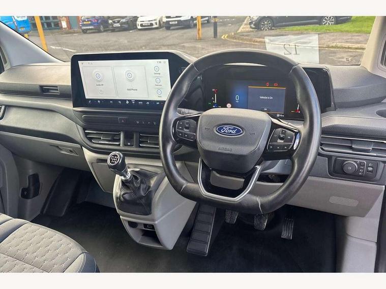 13" Touchscreen, 5G embedded modem, AECS NO SMS/Roll Detect 2G, PAS, Tyre pressure monitor, SYNC 4 - Android Auto/Apple Car Play, advance speech recognition, over the air update capability, Automatic headlights, Body coloured door mirrors, Body coloured front bumper, Body coloured rear bumpers, Daytime running lights, Electric front windows with one touch facility for driver and front passenger, Fixed DSS LED headlamps with auto high headlamp, Front splash guards, Low roof line, Quickclear front window defroster, Rear cargo hinged door, Rear splash guards, Trailer sway control, 8 Load compartment tie down loops, Courtesy light, Interior grab handle with driver's sunglasses holder, LED lights, Locking glove box lid, Sensico gearshift knob, Super bright load compartment lights, Passenger airbag, 2 remote keys, Alcohol Interlock wiring preparation pack, Keyless entry and start, Locking wheel lug nut, Thatcham category 1 alarm, 20L AdBlue tank, ABS, Diesel particulate filter, ESP, Hill launch assist, Traction control, 16" Steel spare wheel, Full wheelcovers,