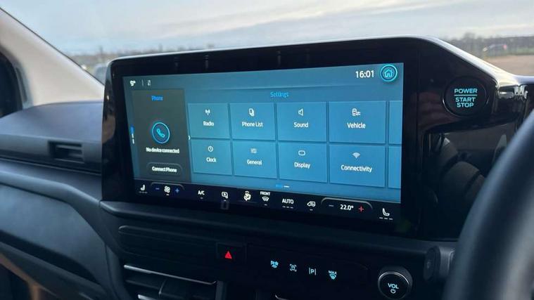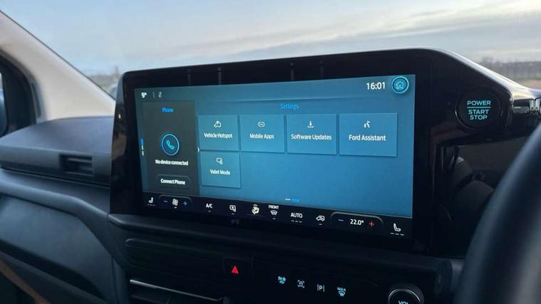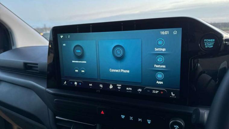 13" Touchscreen, 5G embedded modem, AECS NO SMS/Roll Detect 2G, PAS, Tyre pressure monitor, SYNC 4 - Android Auto/Apple Car Play, advance speech recognition, over the air update capability, Automatic headlights, Automatic windscreen wipers, Body coloured door mirrors, Body coloured front bumper, Body coloured rear bumpers, Daytime running lights, Electric front windows with one touch facility for driver and front passenger, Front mud flaps, Front splash guards, Low roof line, Quickclear front window defroster, Rear cargo hinged door, Rear splash guards, Trailer sway control, 6 Load compartment tie down loops, Courtesy light, Interior grab handle with driver's sunglasses holder, LED lights, Locking glove box lid, Sensico gearshift knob, 2 remote keys, Alcohol Interlock wiring preparation pack, Keyless entry and start, Locking wheel lug nut, Thatcham category 1 alarm, 20L AdBlue tank, ABS, Diesel particulate filter, ESP, Hill launch assist, Traction control, Full wheelcovers,