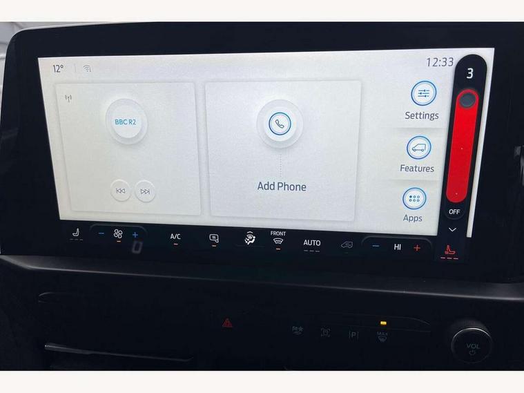 13" Touchscreen, 5G embedded modem, AECS NO SMS/Roll Detect 2G, PAS, Tyre pressure monitor, SYNC 4 - Android Auto/Apple Car Play, advance speech recognition, over the air update capability, Automatic headlights, Body coloured door mirrors, Body coloured front bumper, Body coloured rear bumpers, Daytime running lights, Electric front windows with one touch facility for driver and front passenger, Fixed DSS LED headlamps with auto high headlamp, Front splash guards, Low roof line, Quickclear front window defroster, Rear cargo hinged door, Rear splash guards, Trailer sway control, 8 Load compartment tie down loops, Courtesy light, Interior grab handle with driver's sunglasses holder, LED lights, Locking glove box lid, Sensico gearshift knob, Super bright load compartment lights, Passenger airbag, 2 remote keys, Alcohol Interlock wiring preparation pack, Keyless entry and start, Locking wheel lug nut, Thatcham category 1 alarm, 20L AdBlue tank, ABS, Diesel particulate filter, ESP, Hill launch assist, Traction control, 16" Steel spare wheel, Full wheelcovers,