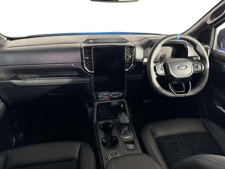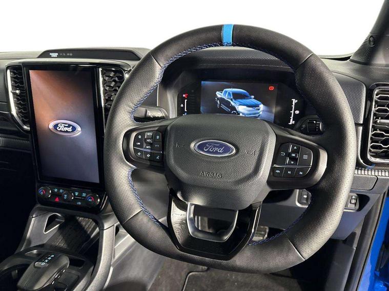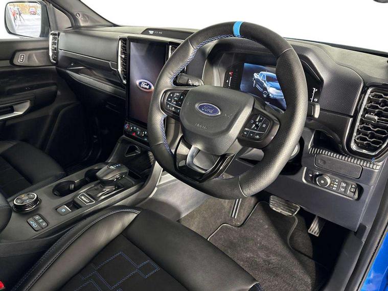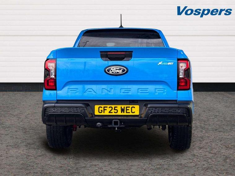 AEB and ISA, Delete tachograph, Electric power assisted steering, Electronic automatic gearshift, Evasion steer assist, Ford pass connect embedded modem, Ford Pro Telematics Essentials, Ice warning, Partial TFT/LCD instrument cluster, Passenger side roof mounted grab handle, Pre collision assist, Road departure warning, Trip computer, 360 lighting, Acoustic laminated windscreen, Active grille shutter, Agate black door handles, Assisted conventional tailgate, Automatic headlights, Box body cappings, Daytime running lights, Dual power mirrors, E-marked glass, Electric rear window defroster, Electric windshield defroster, Electrochromic interior mirror, Front headlamp leveling, Front splash guard, High mounted stop lamp, Ladder rack, Level 2 Headlamps, Level 2 LED taillamps, Manual liftgate, MS-RT Agate black exterior mirror caps, MS-RT Cab spoiler, MS-RT Sports side skirt, MS-RT Sports style front bumper, MS-RT Sports style rear bumper, MS-RT sports style wheel arches, MS-RT Tailgate spoiler, Non locking capless fuel fill, One front tow hook, Outside thermometer, Power front windows with one touch up/down, Privacy glass, Rain sensitive windshield wipers, Rear fog lamps, Rear splash guard, Self coloured decklid handles, Trailer tow class I, Trailer tow wiring, Under hood engine cover, Cargo light, Cargo management system, Door handles with inside MIC, Driver and passenger sunvisor with mirror, Ebony headliner, Electronic dual zone automatic air conditioning, Fresh air heater, Full Floor console with armrest, Glove box lights, Heated steering wheel, LED ambient interior lighting, Less load rest, Locking glove box lid, MS-RT Front floor mats, MS-RT Rear center headrestraint, MS-RT Rear floor mats, Non woven carpet, Overhead console with dome lamps, Pollen filter, Premium air register, Pull out cup holder, Reach and rake adjustable steering column, Rear floor ducts, Rear seat anchor - Fixed, Roof storage for driver sunglasses, Steering wheel with multimedia controls, Tie down hooks, Washer tank level warn lamp, Body protection pack 2 - Ranger, Driver assistance package - Ranger, Front seat pack 7 - Ranger MS-RT, Functional upgrade pack 3 - Ranger, Heavy duty terrain pack - Ranger, Interior trim pack MS-RT - Ranger, MS-RT Rear seat pack - Ranger, Child proof rear door locks, ISOFIX child safety seat attachment, Rear seat belt pre-tensioner, Tyre pressure sensors, 2 Remote control unit - key fob, Immobiliser, Locking wheel lug nut, Passive keyless entry and start system, Power door dead locks, Power tailgate lock, Thatcham alarm system, Thatcham security system, FORDLiive service, 12V aux rear power point plug, ABS/ESP brakes with electronic brake boost, Electric parking brake, Engine start/stop system, Front and rear disc brakes, Locking rear axle, MS-RT Sports suspension, Soft ride suspension, 18" Aluminium spare wheel, 21"MS-RT Satin black alloy wheel and all season tyres with ebony black centre cap, Spare tyre lock,