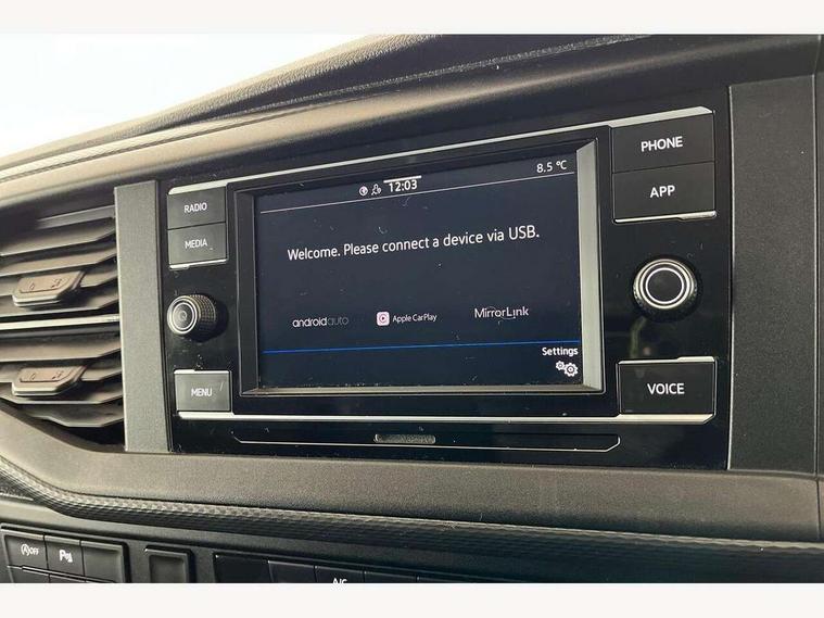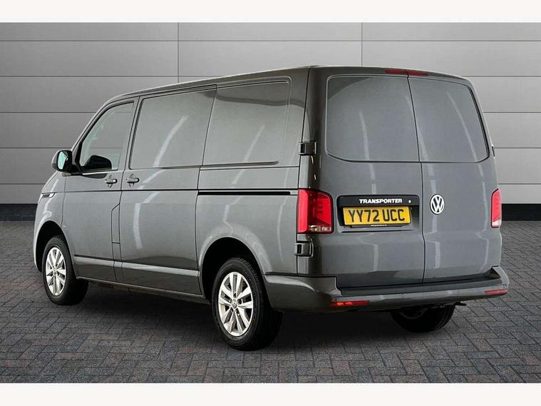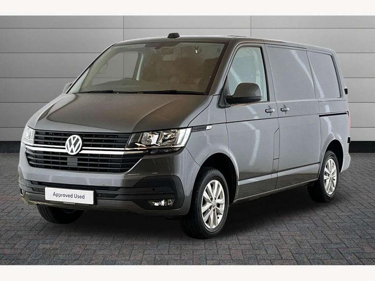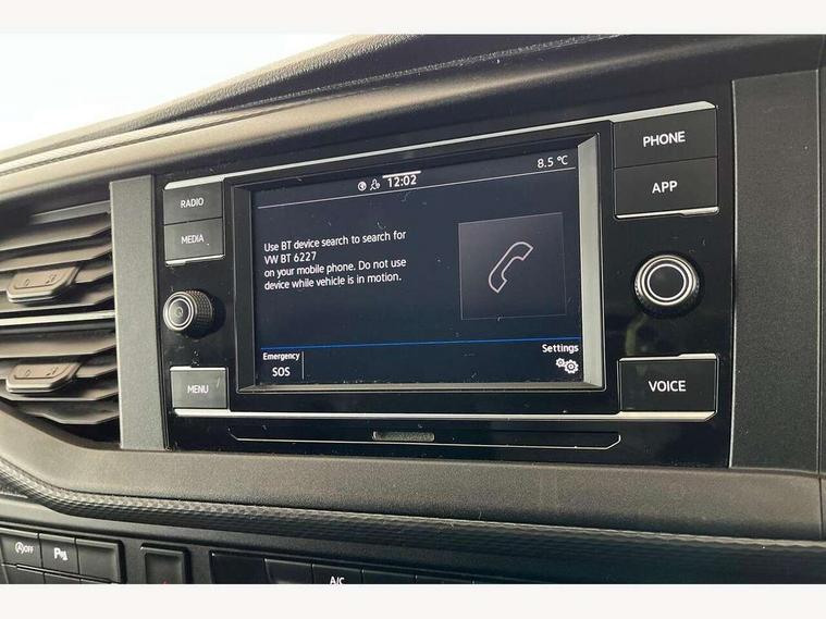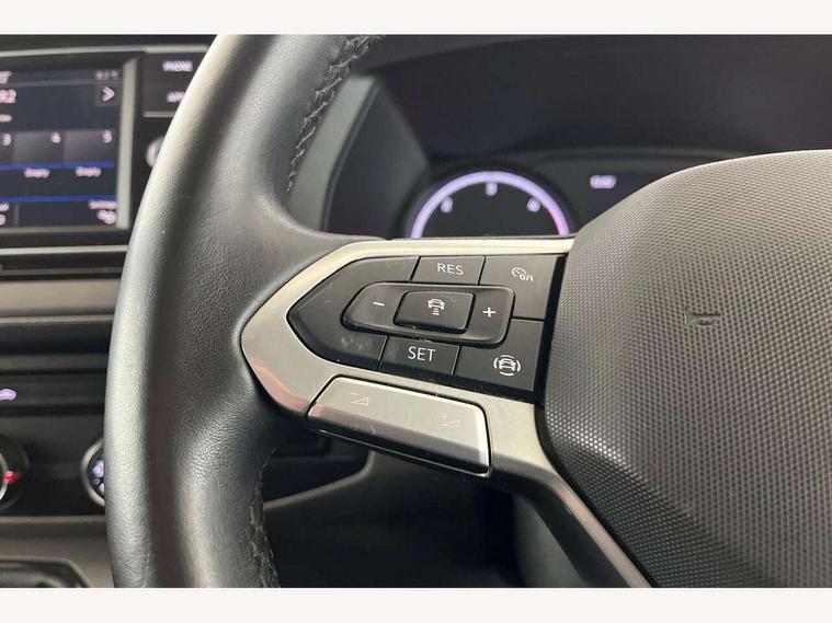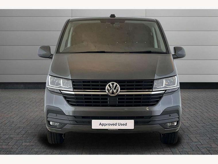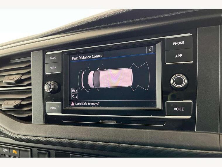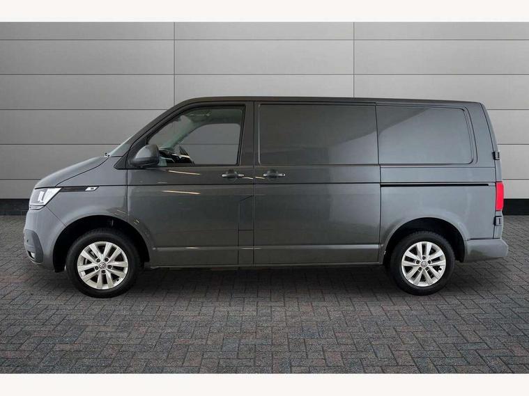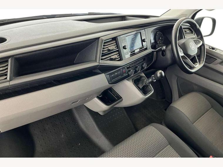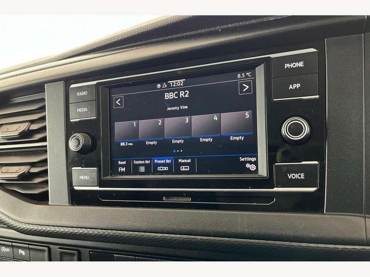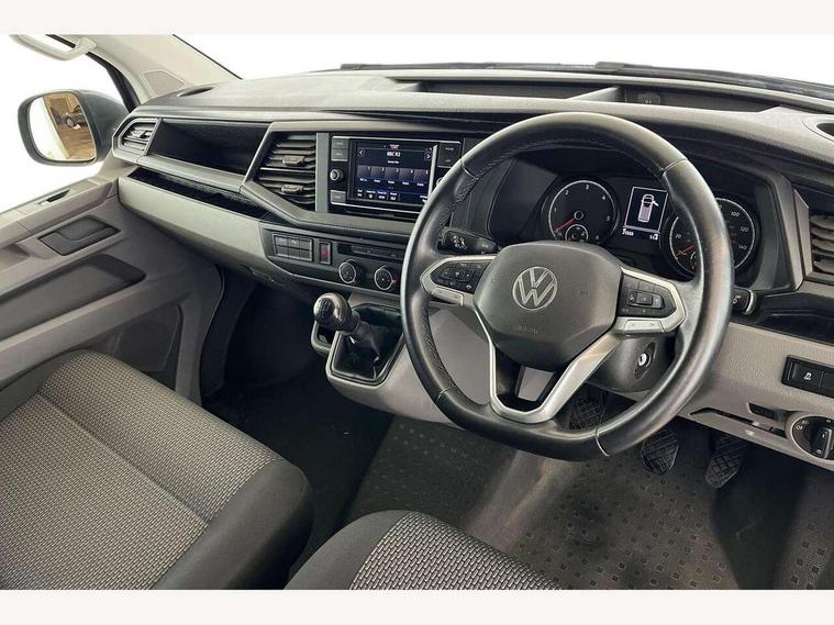 Adaptive cruise control, Cross wind assist, Dimmable illuminated instruments, Driver alert with Multi-function display plus, eCall emergency system, Forward collision warning front assist with autonomous emergency braking, Mobile phone interface, Multi function display plus with black and white display, 2 USB interfaces type C in dashboard, 4 speakers with 2 tweeters and 2 woofers, Composition colour radio with 6.5" touchscreen, Digital radio reception (DAB+), Volkswagen app connect, Automatic headlight control, leaving home and manual coming home feature, Closing rear wing door with unlatching from the inside, Front fog lamps with cornering light, Heat insulating glass (green) in cab and passenger/load compartment, Heated front windscreen, Left convex exterior mirror, Power folding adjustable door mirrors with separately heated, Radiator grille with 2 chrome trims, Rear wing doors without window apertures, Right convex exterior mirror, Transporter nameplate on the rear fender, Windshield wiper intermittent control with rain sensor for windshield wipers, 3 spoke leather wrapped multi function steering wheel, Auto dimming breakaway interior rear view mirror, Comfort headliner in cab, hardboard roof trim in passenger and load compartment, Dust/pollen filter, Front and rear left without window closed side panel in load compartment, Front seats on the right in 1st row of seat, Glove compartment with illumination, Heavy duty tool kit and jack, High partition, Interior plastic loading edge protection, LED Interior lighting in load and passenger compartment, Manual adjustable lumbar support for right single seat in 1st row seats, Refrigerant R134a, Standard lower part dashboard in palladium, Storage compartments on cab seats and reading light, Without right side window apertures in passenger and load compartment, Comfort pack - Transporter, Exterior pack without fog light- Transporter, Non smoker pack - Transporter, 3 point height adjustable seat belts on outer seats cab with electric pretensioners, Driver and front passenger airbag with front passenger airbag deactivation, Warning buzzer and light for driver and front passenger seat belt not fastened, Without child safety lock in passenger compartment, Anti theft alarm system with interior monitoring in cab, backup horn and towing protection, Lockable wheel bolts, 16" chassis with 16" brake system, Diesel particulate filter, Electronic stability control, ABS, ASR with deactivation button, hill start assist and brake assist system, Start/stop system with regenerative breaking, 16" Clayton alloy wheels,