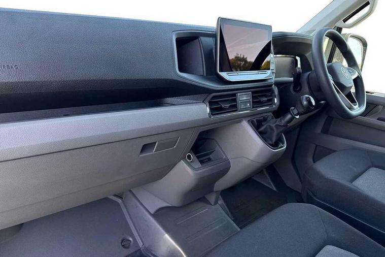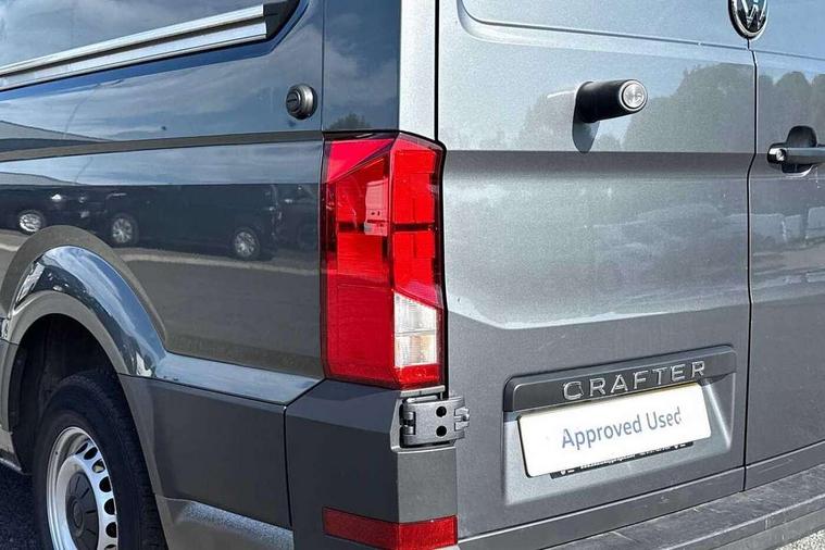 Bluetooth, Digital clock, Driver alert system, E-call + We connect basic preparation, Instrument cluster, Lights on warning buzzer, Locking fuel cap, Multi-function Display Plus, Rev counter, Service indicator, Speedometer, Voice control system, Composition media with 6.5" with we connect plus prep, 4 speaker, multifun display plus, USB, mob interface, app con, "We connect function", DAB Radio, Auto low beam mode, Leaving home function and manual coming home function, Cab doors, Convex and wide angle mirror, Driver seatbelt warning light, Electric windows, Electrically heated and adjustable door mirrors, Half painted front bumper, Heat insulating glass, Indicators in front door mirrors, One towing eye in front, Rear wing doors with 270 degree hinges, Special identification plate, Unpainted radiator grille, Air recirculation system, Ashtray, Centre console storage tray, CFCU preparation, Charcoal filter, Climatic air conditioning, Document holder on centre console, Drinks holders, Electromechanical Servotronic steering, Electronically controlled heating system, Fully adjustable suspension type driver seat, Grab handles on rear entry pillars, Height adjustable head restraints, Height and reach adjustable steering wheel, Illuminated glove compartment with lockable lid, Interior light, including 2 reading lights, Interior light, switchable by door, Jack and tool kit, Preparation for interface for external use with terminal block, Storage compartments in doors and in step, right, Storage tray on dashboard, Two 12V outlets in the cab (in the dashboard), Without rear side trim panel passenger load compartment, Non-smokers pack - Crafter, 3 point inertia reel belt on all seats, Automatic hazard light with emergency braking, Crosswind assist, Driver and front passenger airbag with front passenger airbag deactivation, Height adjustable seatbelts for outer cab seats, 1 rigid key, Anti-theft alarm with interior monitor, back up horn and tow away protect, overhead storage with two 1-DIN, reading light, SAFELOCK with 2 remote keys, Engine immobiliser, ABS, Automatic post collision braking system, EBA, EBD, EDL, ESP, Front disc brakes, HBA, Hill start assist, Parking brake - hill hold control, Start and stop system with regenerative braking, TCS, Hub cap covers,