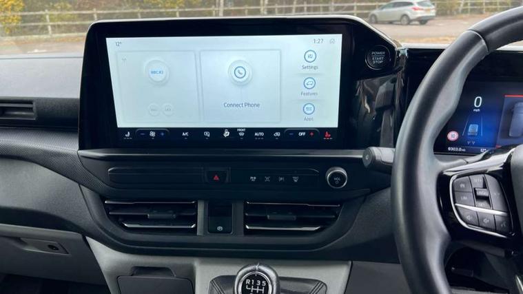 13" Touchscreen, 5G embedded modem, AECS NO SMS/Roll Detect 2G, PAS, Tyre pressure monitor, SYNC 4 - Android Auto/Apple Car Play, advance speech recognition, over the air update capability, Body coloured door mirrors, Body coloured front bumper, Body coloured rear bumpers, Daytime running lights, Electric front windows with one touch facility for driver and front passenger, Front splash guards, Low roof line, Quickclear front window defroster, Rear cargo hinged door, Rear splash guards, Tinted glass, Trailer sway control, 8 Load compartment tie down loops, Courtesy light, Interior grab handle with driver's sunglasses holder, LED lights, Locking glove box lid, Sensico gearshift knob, Super bright load compartment lights, Passenger airbag, 2 remote keys, Alcohol Interlock wiring preparation pack, Configurable locking 1, Keyless entry and start, Locking wheel lug nut, Power door dead locks, Speed dependant locking, Thatcham category 1 alarm, 20L AdBlue tank, ABS, Diesel particulate filter, ESP, Hill launch assist, Traction control, 16" Steel spare wheel, Full wheelcovers,
