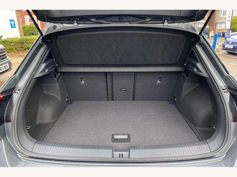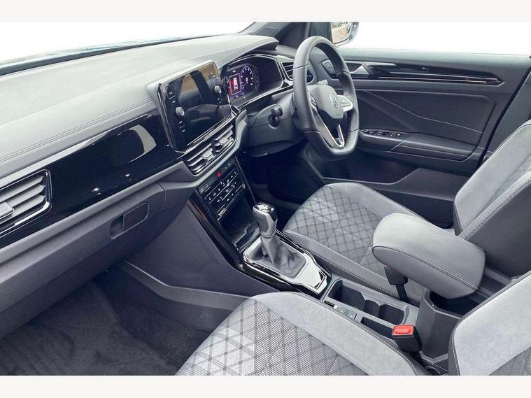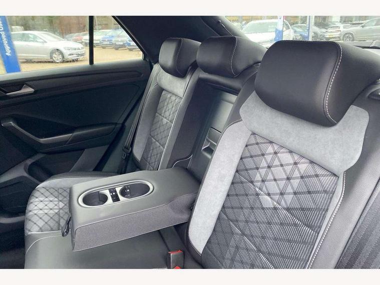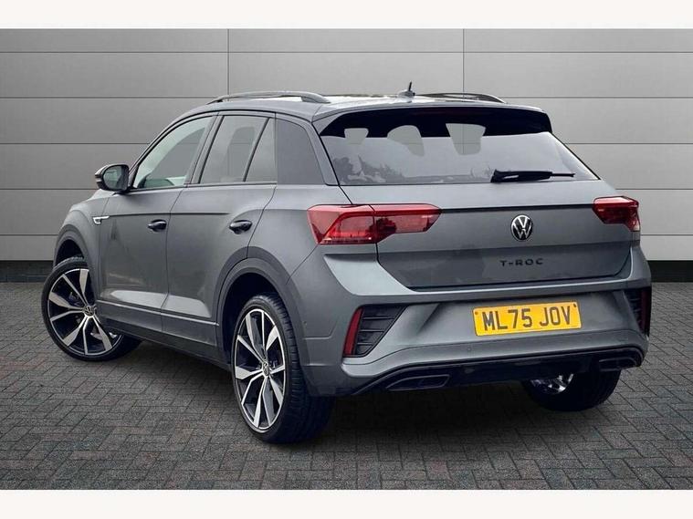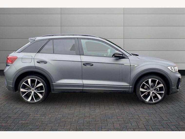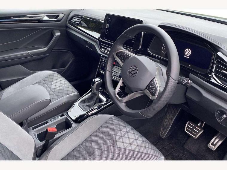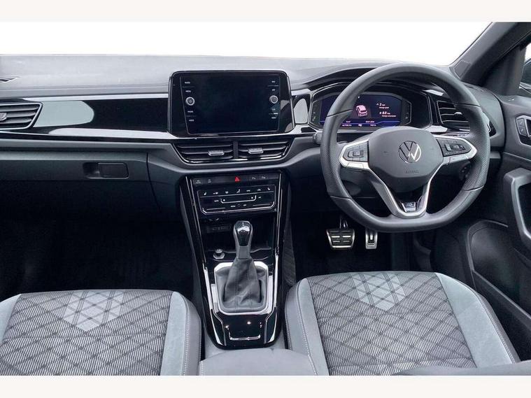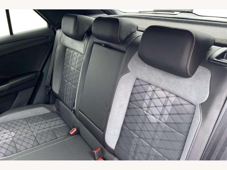10.25" Digital cockpit pro, Advanced driver attention and drowsiness monitor, Emergency call service, Lane keeping system Lane Assist, Mobile phone interface, Modified key software - reduce switch off time for key status change to Long no motion, Online services, Park assist including front and rear parking sensors, Power assisted speed sensitive steering, Service interval indicator, Tailgate/trunk lid release from outside, Think blue trainer driver tips and journey analysis, Warning sound and light for front seatbelts unfastened, Wireless app connect, Battery regeneration during braking, Rear shock absorption chassis with increased ride height, Start/stop function with battery regeneration, DAB Digital radio, Diversity antenna for FM reception, Front and rear 6 speakers, Music playback - MP3, WMA and AAC files, Premium USB cable in choice of either Apple or Android smartphone compatibility, SD card slot, Simultaneous pairing of 2 compatible mobile devices, Title and cover art display, We Connect and We Connect Plus functionality, Auto dimming interior rear view mirror, Automatic hazard lights activation under emergency braking, Automatic headlight control with LED separate daytime running lights with coming/leaving home function, Dynamic cornering light, Electrically adjustable and heated door mirrors, Extended roof spoiler, Exterior mirrors aspherical on driver side, convex on front passenger side, External USB type C socket and charging sockets, Front windscreen wiper with intermittent wipe and 4 position delay, Heated rear window, Illuminated front grille, IQ LED matrix headlights, LED 3rd brake light, LED rear number plate lights, LED rear tail lights with dynamic turn signal, Light mode for poor weather, rain, fog or snow, Power windows with comfort operation and circuit breaker, R-Line design body coloured bumpers, Rain sensor, Rear exhaust tailpipe, Rear fog light on one side and reversing lights on both sides, Rear side wing doors, Rear wash/wipe with intermittent wipe setting, Remote electrically foldable door mirrors, puddle lights and reverse activated passenger's door mirror, 12V power socket in centre console, 3 rear head restraints, 3 seat bench in 2nd row, 4 load lashing points in luggage compartment, Air care climatronic air conditoning system with active combination filter and 2-zone temperature control, Artvelours cloth upholstery, Black roof lining, Chrome plated radiator grille inserts, air vent surrounds and light switch surrounds, Door and side trim panel with leatherette insert, Drawer under drivers seat, Driver seat height adjust, Driver's seat lumbar support, Front + rear carpet mats, Front centre armrest, Front comfort sports seats, Front cupholders x 2, Front footwell illumination, Front reading light, Front scuff plates with R Line logo, Front seat back storage pockets, Glove compartment door with light, Instrument lighting, white adjustable panel illumination, Interior ambient lighting and surround lighting, Interior light delay, Isofix child seat preparation, Leather gearshift handle, Leather wrapped multifunction steering wheel with paddle shift, Load-through provision with cup holder when folded down ('Unsplit rear seat bench, split folding backrest, with centre armrest), Luggage compartment lighting, Non-folding front passenger seat backrest, Passenger seat height adjuster, Passenger seat lumbar support, Single front passenger seat, Stainless steel pedals, Storage compartment in left and right luggage area, Storage compartment in rear doors, Storage compartments in driver and front passenger doors, Sunvisors with illuminated vanity mirrors, Variable boot floor, height adjustable and removable, Winter pack without heated windscreen washer jets - T-Roc, 3 point height adj front seatbelts + pretensioners, 3 point seatbelts in outer rear with ECE label, ABS, Child locks on rear doors, City emergency braking and pedestrian monitoring, Driver and front passenger airbag with front passenger airbag deactivation, Driver and front passenger safety-optimised head restraints, Drivers seatbelt reminder, Electronic parking brake, Electronic Stability Control (ESC) inc EDL (Electronic Differential Lock) and ASR (Traction Control), Front and rear passengers curtain airbag system including front side airbags, Front disc brakes, Hill start assist, Predictive pedestrian protection, Rear disc brakes, Two tone horn, Tyre pressure loss indicator, Volkswagen roadside assistance, Tool kit, Trims for alloy wheels, Tyre mobility kit including compressor and sealing foam,