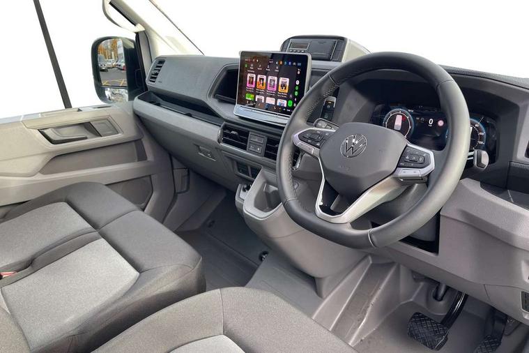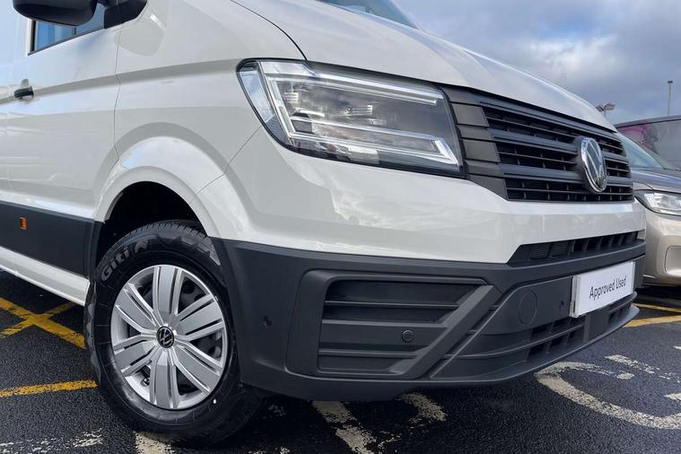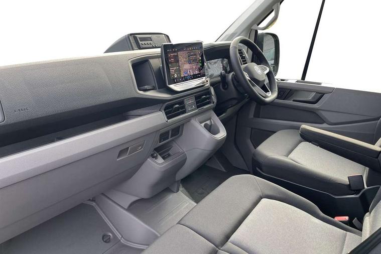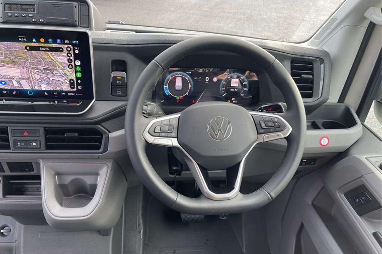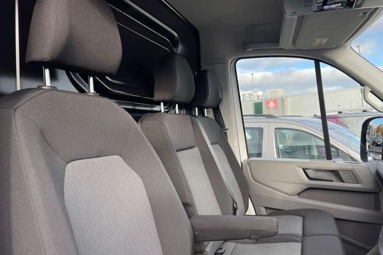 Bluetooth, Digital clock, Driver alert system, E-call + We connect basic preparation, Instrument cluster, Lights on warning buzzer, Locking fuel cap, Multi-function Display Plus, Rev counter, Service indicator, Speedometer, Voice control system, Composition media with 6.5" with we connect plus prep, 4 speaker, multifun display plus, USB, mob interface, app con, "We connect function", DAB Radio, Auto low beam mode, Leaving home function and manual coming home function, Cab doors, Convex and wide angle mirror, Driver seatbelt warning light, Electric windows, Electrically heated and adjustable door mirrors, Half painted front bumper, Heat insulating glass, Indicators in front door mirrors, One towing eye in front, Rear wing doors with 270 degree hinges, Special identification plate, Unpainted radiator grille, Air recirculation system, Ashtray, Centre console storage tray, CFCU preparation, Charcoal filter, Climatic air conditioning, Document holder on centre console, Drinks holders, Electromechanical Servotronic steering, Electronically controlled heating system, Fully adjustable suspension type driver seat, Grab handles on rear entry pillars, Height adjustable head restraints, Height and reach adjustable steering wheel, Illuminated glove compartment with lockable lid, Interior light, including 2 reading lights, Interior light, switchable by door, Jack and tool kit, Preparation for interface for external use with terminal block, Storage compartments in doors and in step, right, Storage tray on dashboard, Two 12V outlets in the cab (in the dashboard), Without rear side trim panel passenger load compartment, Non-smokers pack - Crafter, 3 point inertia reel belt on all seats, Automatic hazard light with emergency braking, Crosswind assist, Driver and front passenger airbag with front passenger airbag deactivation, Height adjustable seatbelts for outer cab seats, 1 rigid key, Anti-theft alarm with interior monitor, back up horn and tow away protect, overhead storage with two 1-DIN, reading light, SAFELOCK with 2 remote keys, Engine immobiliser, ABS, Automatic post collision braking system, EBA, EBD, EDL, ESP, Front disc brakes, HBA, Hill start assist, Parking brake - hill hold control, Start and stop system with regenerative braking, TCS, Hub cap covers,