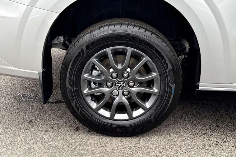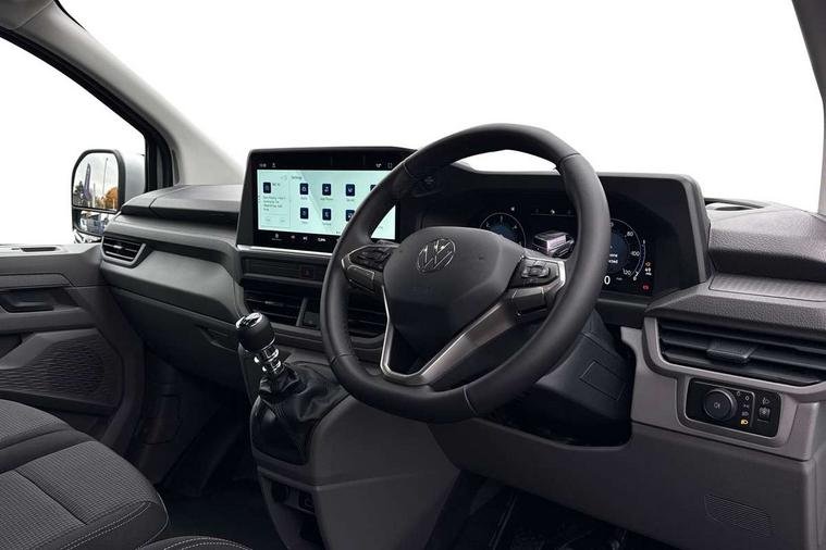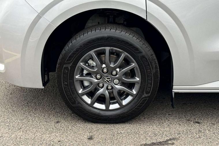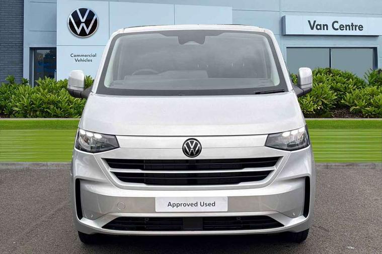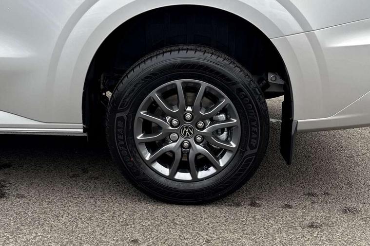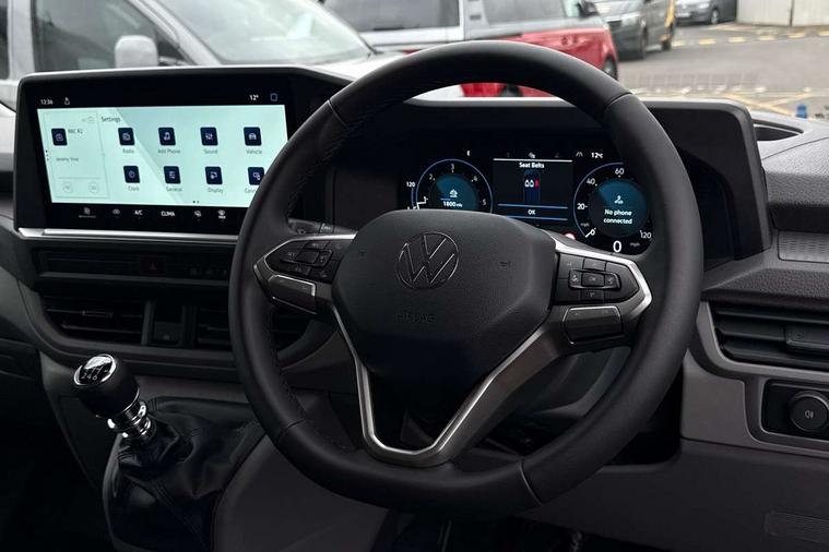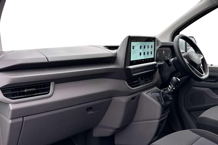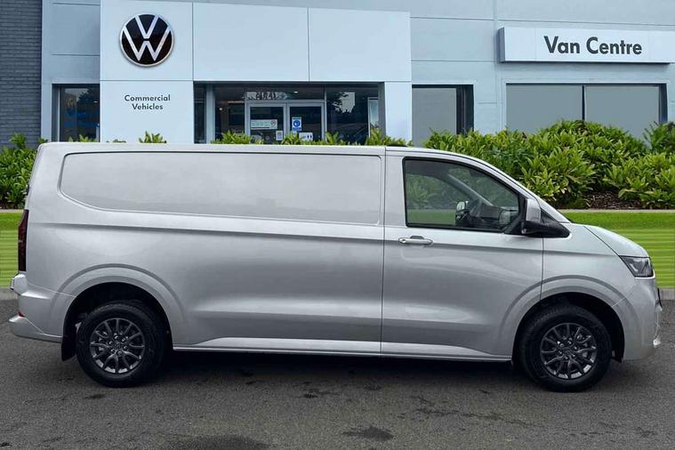12" digital drivers display, 13" touchscreen infotainment display with wireless app connect and DAB radio, 5G Modem, Apple CarPlay and Android Auto, Cruise control, Dynamic road sign display, eCall emergency system, Electromechanical speed sensitive power steering, height and longitudinally adjustable steering column, Lane assist, Preparation of VW connect and connect plus, Wrong way driver warning, 4 speakers - 2x dashboard, 2x cab doors, Body coloured door handles, Heat reflecting side window glass, Mud flaps front and rear, Rear Transporter nameplate in black grained decorative trim, Vehicle opening configuration 1x 1st row of seats, 2x all doors, 2x 15-W USB data/charging ports in dashboard and 1x USB-C, 1x USB-A center bottom, 2x LED lights in load compartment, 3 spoke leather wrapped multi function steering wheel, 4 way height and tilt adjustable head restraints, Black plastic scuff plate for sliding door in cargo without illumination, Cabin interior lighting, Lashing rings for reinforced floor covering, Leatherette gear lever, Narrow centre console with cup holder and compartment for mobile phone, Overhead storage compartment, Roof grab handle on front passenger side, Rubber floor covering in cab, Striped fabric upholstery, Without passenger seats in load compartment, Driver and front passenger airbag with front passenger airbag deactivation, Dual tone horn, Front and curtain airbags for driver and front passenger, Seat belt pretensioner for driver seat, Anti theft alarm system with interior monitoring in cab, backup horn and towing protection, Electronic immobiliser, Preparation for alcohol ignition interlock, 5+ Promise, Alternator - 230A, Electronic stability control, ABS, ASR with deactivation button, hill start assist and brake assist system,