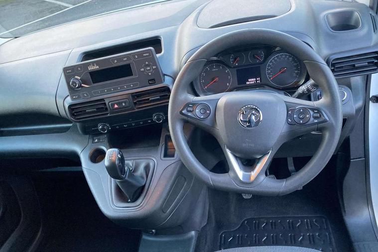 Central facia display with audio information, digital clock, outside temperature with ice warning and additional features about infotainment system, Centrally located instrument cluster with service due indicator and trip computer data, Instrumentation Speedometer, rev counter, fuel gauge with low fuel warning light and water temperature gauge and shift up indication warning light, Multi-function trip computer with trip mileage, vehicle range, average speed, average and instantaneous fuel economy, Speed sensitive electric power assisted system, Vauxhall connect, Steering wheel mounted audio controls, USB charging point in glovebox, USB charging point in rear centre console, Automatic lighting control, Body colour front and rear bumpers, Daytime running lights, Electrically operated front windows with safety autoreverse one touch facility, Side protection mouldings, Solar heat absorbing windscreen, Tinted windows, Two speed windscreen wipers with variable intermittent wipe, 12 volt electrical accessory socket centre console, 6 way adjustable drivers seats with armrest and 4 way adjustable front passengers seats with lumbar adjustment, Anti-submarining ramps in front seats, Cab heating system with six speed fan, Illuminated controls, four adjustable facia vents, windscreen demist vents and side window demist vents, Curitiba fabric seat trim upholstery, Driver and front passenger sun visor and vanity mirror on rear of drivers sunvisor, Driver's top lidded glovebox, Full width overhead storage shelf with ambient lighting, Large open storage pocket behind infotainment screen, Open storage compartment below glovebox, Reach and rake adjustable steering column, Six Fixed floor mounted load restraint lashing eyes, Small open storage compartment behind gear lever, Two drinks holders in centre console on front compartment, Two facia mounted drinks holders on front compartment, Two large and two small open door pockets, Deactivation switch for front passenger airbag and side impact airbag, Drivers and front passengers lap belt pretensioner system, Energy absorbing steering column, Side impact protection beams, Reinforced passenger safety cell and front and rear deformation zones, Front body lock diagonal seatbelt pretensioner system, Front seatbelt force limiters, Height adjustable lap and diagonal inertia reel front seatbelts, 2 folding keys with integral remote control function, Electronically protected audio, Locking wheel bolts, Remote central locking and deadlocks, Remote control security alarm incl - LED on facia, load area+bonnet protection, ultrasonic intrusion sensor, Power alarm, Vehicle theft attempt indication, Vauxhall engine deadlock immobiliser system, Visible Vehicle Identification Number (VIN), Anti-lock braking, Anti-roll bar, Corner stability control, Electronic brake force distribution, Electronic stability programme, Engine drag torque control, Hill start assist, Independent MacPherson front suspension with gas pressure dampers and linear-rate coil springs, Stop/start function, Torison beam rear suspension with gas pressure dampers and variable-rate coil springs, Traction control,