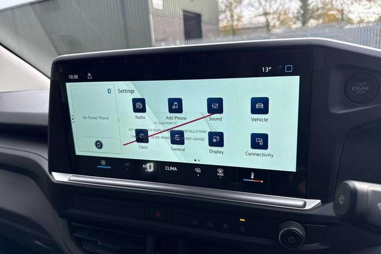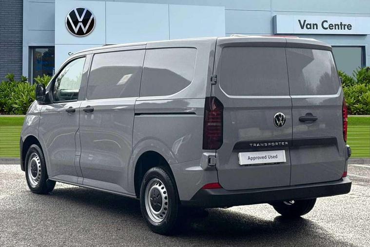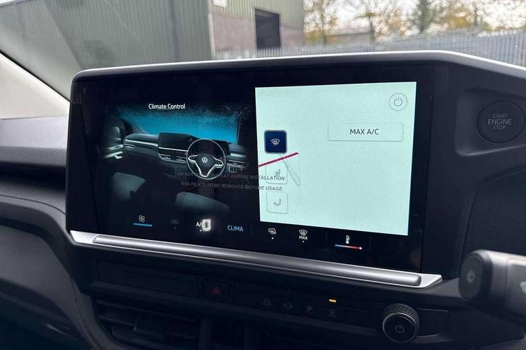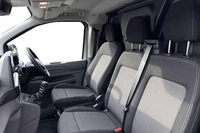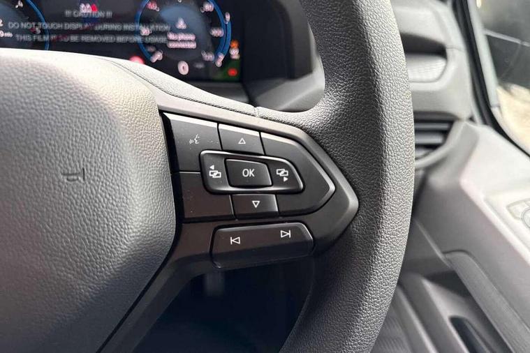 12" digital drivers display, 13" touchscreen infotainment display with wireless app connect and DAB radio, 5G Modem, Apple CarPlay and Android Auto, Cruise control, Dynamic road sign display, eCall emergency system, Electromechanical speed sensitive power steering, height and longitudinally adjustable steering column, Lane assist, Preparation of VW connect and connect plus, Wrong way driver warning, 4 speakers - 2x dashboard, 2x cab doors, Grained black door handles, Heat reflecting side window glass, High beam control, Laminated windshield made of heat-reflecting glass, LED rear combination lamps, Rear Transporter nameplate in black grained decorative trim, Vehicle opening configuration 1x 1st row of seats, 2x all doors, 2x 15-W USB data/charging ports in dashboard and 1x USB-C, 1x USB-A center bottom, 2x LED lights in load compartment, 4 way height and tilt adjustable head restraints, Black plastic scuff plate for sliding door in cargo without illumination, Cabin interior lighting, Lashing rings for reinforced floor covering, Narrow centre console with cup holder and compartment for mobile phone, Overhead storage compartment, Plastic gear lever, Roof grab handle on front passenger side, Rubber floor covering in cab, Standard glove compartment, Striped fabric upholstery, Without passenger seats in load compartment, Exterior pack 1 - Transporter, Interior trim pack - Transporter, Driver and front passenger airbag with front passenger airbag deactivation, Dual tone horn, Front and curtain airbags for driver and front passenger, Seat belt pretensioner for driver seat, Electronic immobiliser, Preparation for alcohol ignition interlock, 5+ Promise, Alternator - 230A, Electronic stability control, ABS, ASR with deactivation button, hill start assist and brake assist system,