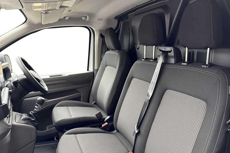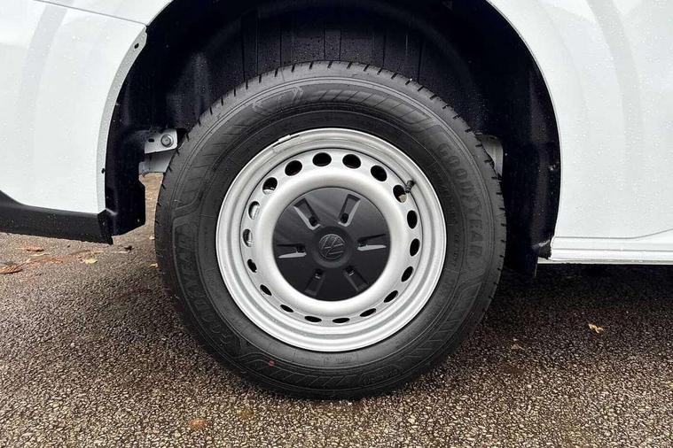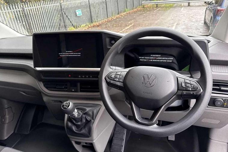 12" digital drivers display, 13" touchscreen infotainment display with wireless app connect and DAB radio, 5G Modem, Apple CarPlay and Android Auto, Cruise control, Dynamic road sign display, eCall emergency system, Electromechanical speed sensitive power steering, height and longitudinally adjustable steering column, Lane assist, Preparation of VW connect and connect plus, Wrong way driver warning, 4 speakers - 2x dashboard, 2x cab doors, Grained black door handles, Heat reflecting side window glass, High beam control, Laminated windshield made of heat-reflecting glass, LED rear combination lamps, Rear Transporter nameplate in black grained decorative trim, Vehicle opening configuration 1x 1st row of seats, 2x all doors, 2x 15-W USB data/charging ports in dashboard and 1x USB-C, 1x USB-A center bottom, 2x LED lights in load compartment, 4 way height and tilt adjustable head restraints, Black plastic scuff plate for sliding door in cargo without illumination, Cabin interior lighting, Lashing rings for reinforced floor covering, Narrow centre console with cup holder and compartment for mobile phone, Overhead storage compartment, Plastic gear lever, Roof grab handle on front passenger side, Rubber floor covering in cab, Standard glove compartment, Striped fabric upholstery, Without passenger seats in load compartment, Exterior pack 1 - Transporter, Interior trim pack - Transporter, Driver and front passenger airbag with front passenger airbag deactivation, Dual tone horn, Front and curtain airbags for driver and front passenger, Seat belt pretensioner for driver seat, Electronic immobiliser, Preparation for alcohol ignition interlock, 5+ Promise, Alternator - 230A, Electronic stability control, ABS, ASR with deactivation button, hill start assist and brake assist system,