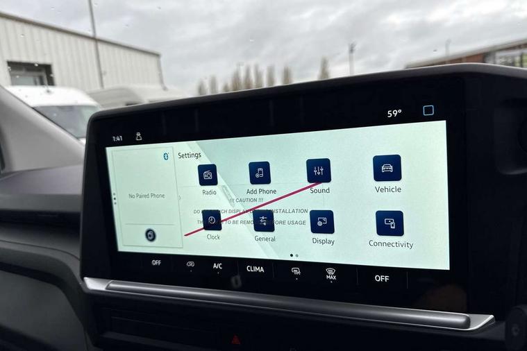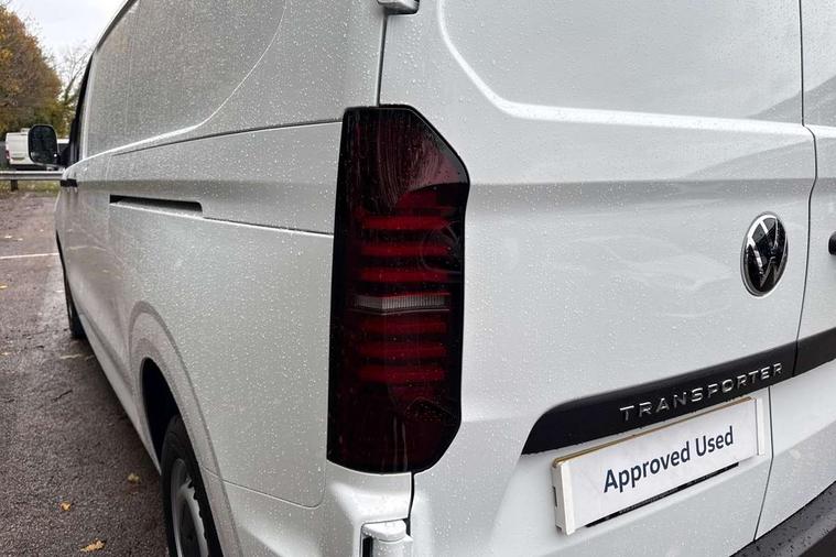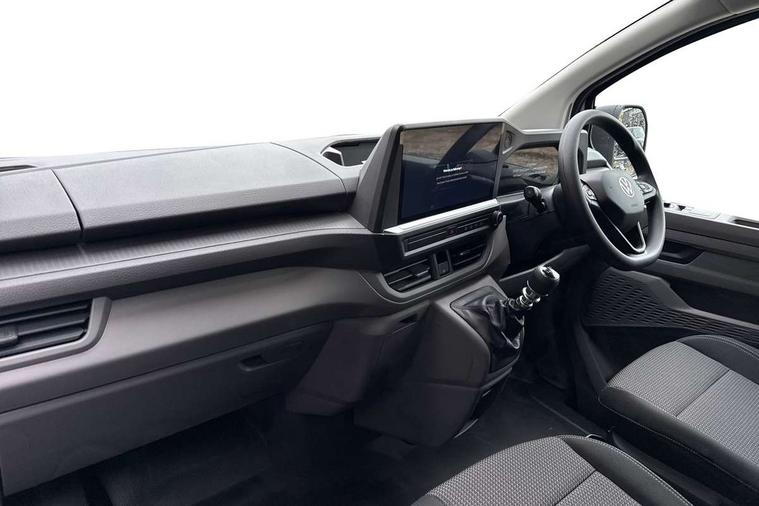 12" digital drivers display, 13" touchscreen infotainment display with wireless app connect and DAB radio, 5G Modem, Apple CarPlay and Android Auto, Cruise control, Dynamic road sign display, eCall emergency system, Electromechanical speed sensitive power steering, height and longitudinally adjustable steering column, Lane assist, Preparation of VW connect and connect plus, Wrong way driver warning, 4 speakers - 2x dashboard, 2x cab doors, Grained black door handles, Heat reflecting side window glass, High beam control, Laminated windshield made of heat-reflecting glass, LED rear combination lamps, Rear Transporter nameplate in black grained decorative trim, Vehicle opening configuration 1x 1st row of seats, 2x all doors, 2x 15-W USB data/charging ports in dashboard and 1x USB-C, 1x USB-A center bottom, 2x LED lights in load compartment, 4 way height and tilt adjustable head restraints, Black plastic scuff plate for sliding door in cargo without illumination, Cabin interior lighting, Lashing rings for reinforced floor covering, Narrow centre console with cup holder and compartment for mobile phone, Overhead storage compartment, Plastic gear lever, Roof grab handle on front passenger side, Rubber floor covering in cab, Standard glove compartment, Striped fabric upholstery, Without passenger seats in load compartment, Exterior pack 1 - Transporter, Interior trim pack - Transporter, Driver and front passenger airbag with front passenger airbag deactivation, Dual tone horn, Front and curtain airbags for driver and front passenger, Seat belt pretensioner for driver seat, Electronic immobiliser, Preparation for alcohol ignition interlock, 5+ Promise, Alternator - 230A, Electronic stability control, ABS, ASR with deactivation button, hill start assist and brake assist system,