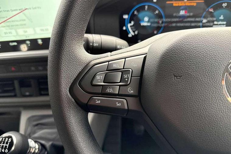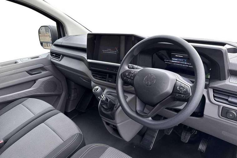 12" digital drivers display, 13" touchscreen infotainment display with wireless app connect and DAB radio, 5G Modem, Apple CarPlay and Android Auto, Cruise control, Dynamic road sign display, eCall emergency system, Electromechanical speed sensitive power steering, height and longitudinally adjustable steering column, Lane assist, Preparation of VW connect and connect plus, Wrong way driver warning, 4 speakers - 2x dashboard, 2x cab doors, Grained black door handles, Heat reflecting side window glass, High beam control, Laminated windshield made of heat-reflecting glass, LED rear combination lamps, Rear Transporter nameplate in black grained decorative trim, Vehicle opening configuration 1x 1st row of seats, 2x all doors, 2x 15-W USB data/charging ports in dashboard and 1x USB-C, 1x USB-A center bottom, 2x LED lights in load compartment, 4 way height and tilt adjustable head restraints, Black plastic scuff plate for sliding door in cargo without illumination, Cabin interior lighting, Lashing rings for reinforced floor covering, Narrow centre console with cup holder and compartment for mobile phone, Overhead storage compartment, Plastic gear lever, Roof grab handle on front passenger side, Rubber floor covering in cab, Standard glove compartment, Striped fabric upholstery, Without passenger seats in load compartment, Exterior pack 1 - Transporter, Interior trim pack - Transporter, Driver and front passenger airbag with front passenger airbag deactivation, Dual tone horn, Front and curtain airbags for driver and front passenger, Seat belt pretensioner for driver seat, Electronic immobiliser, Preparation for alcohol ignition interlock, 5+ Promise, Alternator - 230A, Electronic stability control, ABS, ASR with deactivation button, hill start assist and brake assist system,