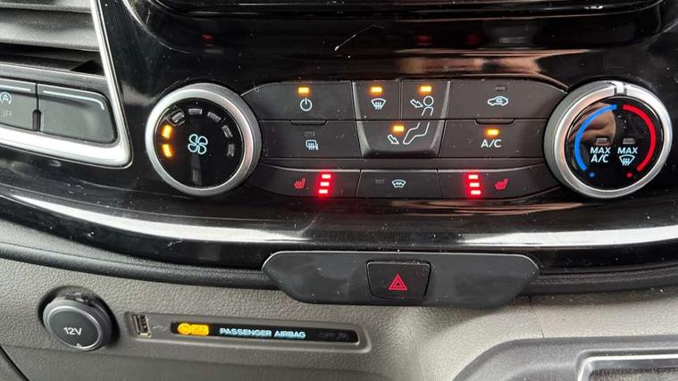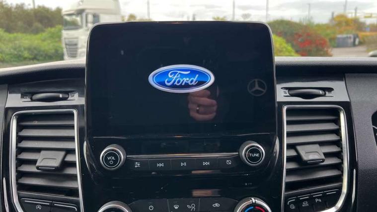 Easy fuel capless refuelling system, Ford Eco mode, PAS, Seatbelt warning indicator, Selectable drive mode, Vehicle maintenance monitor, Audio controls mounted on steering wheel, Aux input socket, Body coloured body side mouldings, Body coloured door mirrors, Body coloured front bumper, Body coloured rear bumpers, Chormed grille with 3 bars, Electric front windows with one touch facility for driver and front passenger, Front mud flaps, Headlamp levelling, Intermittent front wash/wipe, Passenger side sliding load door with track cover, Rear mudflaps, 2nd row three seat wide bench, Assist handle, Coat hook, Colour keyed exterior pack, Complete rear trim board, Courtesy light, Driver and passenger sunvisors with illuminated vanity mirrors, Front manual air conditioning, Front passenger grab handle, Glazed bulkhead, Grab handle on B pillar, Half height load compartment trim boards, Header mounted package tray, Height adjustable head restraints, Illuminated footwell, Isofix child seat attachments - centre and offside 2nd row seats, Leather gearshift knob, Load box LED lights, Lockable glove box, Map reading lights, Moulded cab headlining, Passenger underseat storage box, Reach and rake adjustable steering column, Recirculation heater, Rubber floor covering, Sunglasses roof storage, Tie-down loops, 3 point seatbelts for all seats, Driver's airbag, Front outer passenger airbag with deactivation switch, Front seatbelt pretensioners, Height adjustable drivers seatbelt mount, Passenger seatbelt height adj, Auto locking on drive-away, Auto relocking, Configurable Unlocking, Power door dead locks, Remote central locking, Thatcham category 1 alarm with 2nd remote key, 2 12v sockets, 80 litre fuel tank, ABS, Auto start/stop system, Diesel particulate filter, ESP + EBA, Heavy duty alternator, Roll stability control, Side wind mitigation, 16" 6.5 alloy wheels, Full wheelcovers,