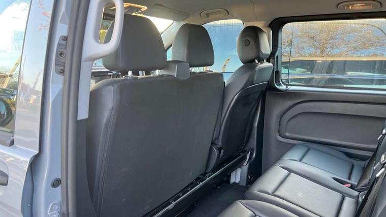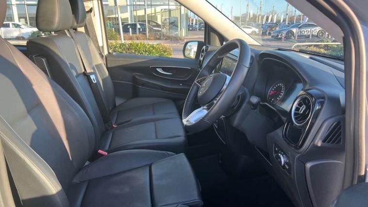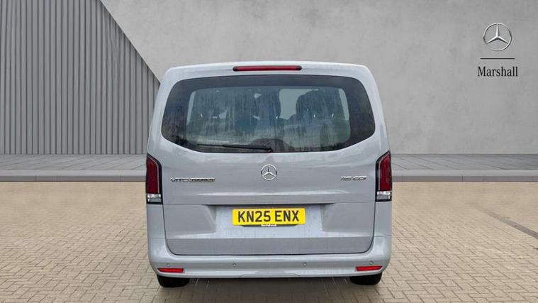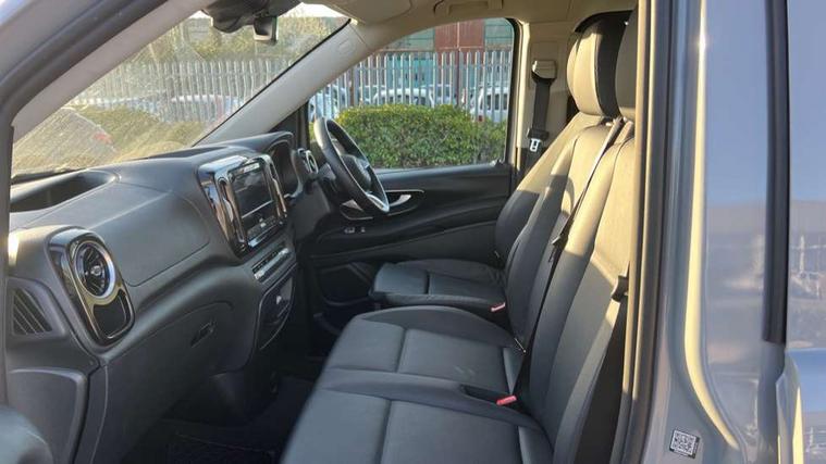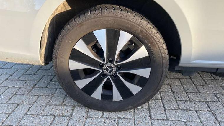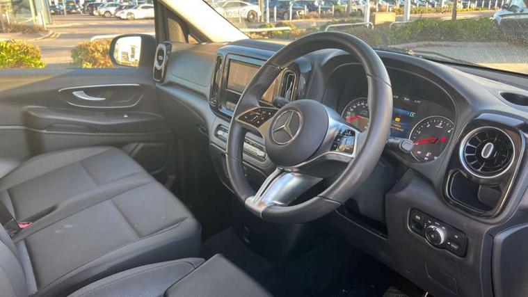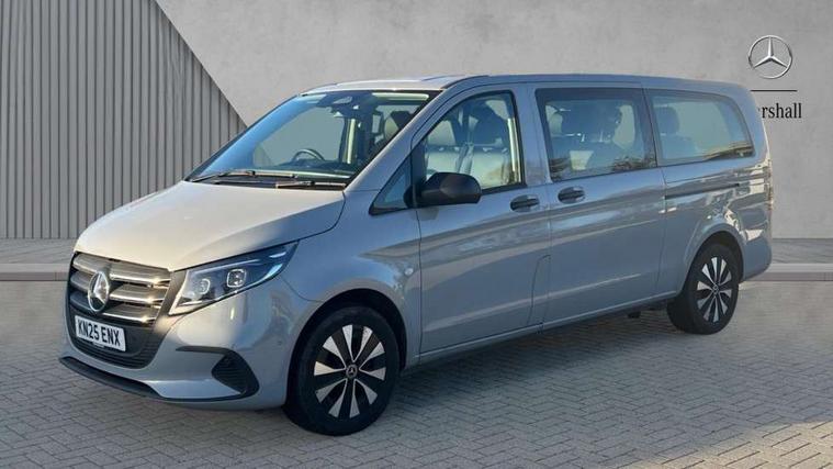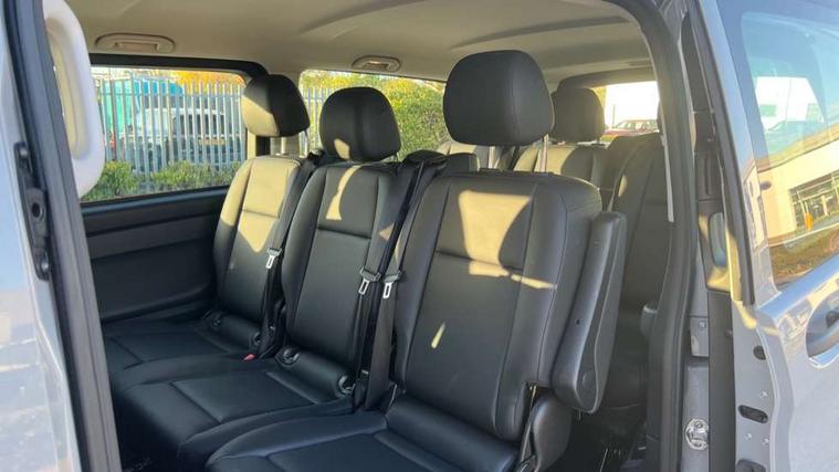 Active lane keeping assist, Blind spot assist, Comfort overhead control panel, Cruise control, Electric power steering, Modern instrument cluster with 5.5" TFT color display, Wireless tyre pressure monitoring, 2 way front and rear loudspeakers, Aux input socket, Digital radio (DAB), MBUX multimedia system with 10.25" touchscreen, Adaptive brake lights, Chrome radiator grille, Colour coded front and rear bumpers, Daytime running lights, Electric front windows, Electrically heated and adjustable door mirrors, Exit lamps, Headlight assistant, Heat insulating glass, LED tail lamps, brake lamps and indicators, Multibeam LED with highbeam assist plus, Side sliding door - left, Side sliding door - right, Tailgate, Third rear brake light, 12V outlets right and left for rear seat row, 3 seater comfort bench in 2nd row with folding outer seat, Armrests for crew/passenger compartment, Comfort driver's seat, Driver's seat lumbar support, Electrical component for trailer socket, Front carpets, Front door storage pockets, Front footwell lights, Grab handles for drivers and co-driver doors, Grab handles in rear, Height adjustable head restraints, Height and rake adjustable steering wheel, Illuminated vanity mirrors with sunvisors, Interior ambient lighting, Interior panelling higher execution, Leather steering wheel, Locking glove compartment, Multifunctional steering wheel, Panelling under roof, Rear carpets, TPO Plastic flooring in passenger compartment, Anti theft protection pack - Vito Tourer, Chrome interior appointments pack - Vito Tourer, Mirror pack - Vito Tourer, Parking pack - Vito Tourer, Smartphone integration package - Vito/Vito Tourer, 3 point seatbelts for all seats, Accident recovery and breakdown management, Attention assist, Co-driver airbag, Co-driver thorax, pelvis and side airbag, Crosswind assist, Driver thorax, pelvis and side airbag, Driver's airbag, Mercedes-Benz emergency call system, Windowbags for driver and co-driver, 12V outlets sockets, 24 litre larger AdBlue tanks, 70 litre fuel tank, 9G tronic automatic gearbox, ABS/ESP/ASR, Active brake assist, Diesel particulate filter, EBV and BAS, Hill start assist, Mechanical parking brake, Speed limiter 210 km/h, Traction control, Uprated heavy duty battery - 95Ah,