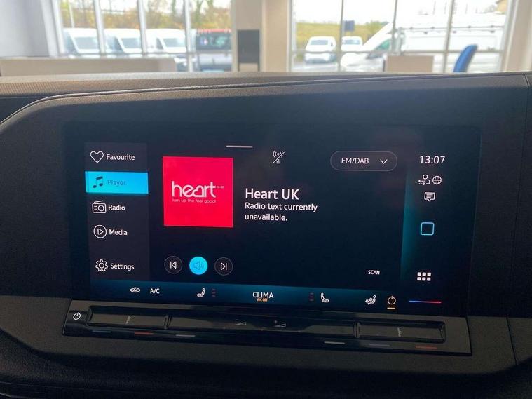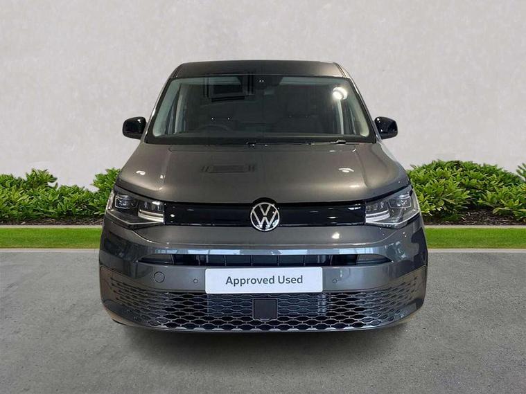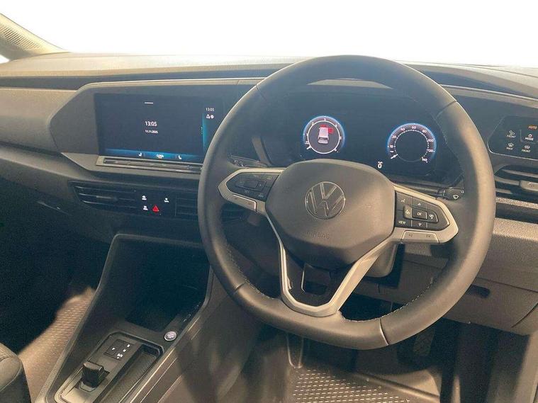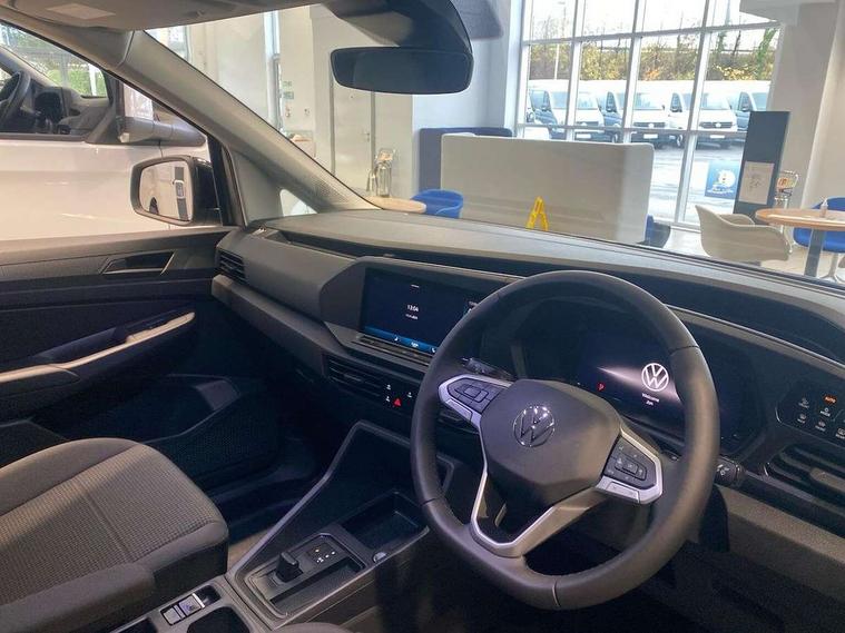 Bluetooth - Mobile phone interface, Car2X technology, Driver alert system, eCall emergency system, Intelligent Speed Assist, Lane assist, Seatbelt warning indicator, Service indicator, Start-stop system with regenerative braking, 2 USB interfaces type C in dashboard, App-Connect - Wireless for Apple CarPlay, DAB Radio, We Connect Plus Preparation, Automatic hazard light activation under emergency braking, Black painted exterior mirror housings, body-colored door handles and Silver sliding door rail, Body coloured bumpers, Electric front windows, LED rear combination lights, LED rear tail lights, Roof rail preparation, Windscreen wiper with variable intermittent delay and wash-wipe system, Dimming breakaway interior rear view mirror, Electronically controlled heating system, ergoComfort seats for driver, Interior light in headliner incorporting LED technology, Lockable glove compartment door with light, Manual heating and ventilation system, Manual height adjustment for front seats and seat cushion inclination and depth adjustment on drivers seat, Multi function leather steering wheel, Power-adjustable lumbar support for drivers seat, Reach and rake adjustable steering column, Six lashing points for securing loads, Steering wheel paddle shift, Storage compartments under driver and front passenger seats, Sun visors with mirror, airbag label on front passenger sun visor, Winter pack plus - Caddy, 3-point seat belts in front, with pretensioner and height adjustment, Driver and front passenger airbag with front passenger airbag deactivation, Tyre pressure monitoring system, Anti-theft alarm system, interior monitoring, backup horn, and towing protection, Electronic engine immobiliser, Remote central locking with deadlocks, interior locking, Anti locking braking system (ABS), Automatic post collision braking system, Brake assist, Diesel particulate filter, Electric parking brake with auto hold function, Electronic brake force distribution (EBD), Electronic differential lock (EDL), Electronic stabilisation programme (ESP), Engine drag torque control (MSR), Hill hold assist, Traction control system (TCS), Decorative beige birch vein inserts, Wheel bolts with anti-theft protection (unlockable),