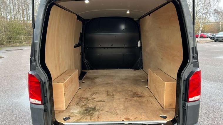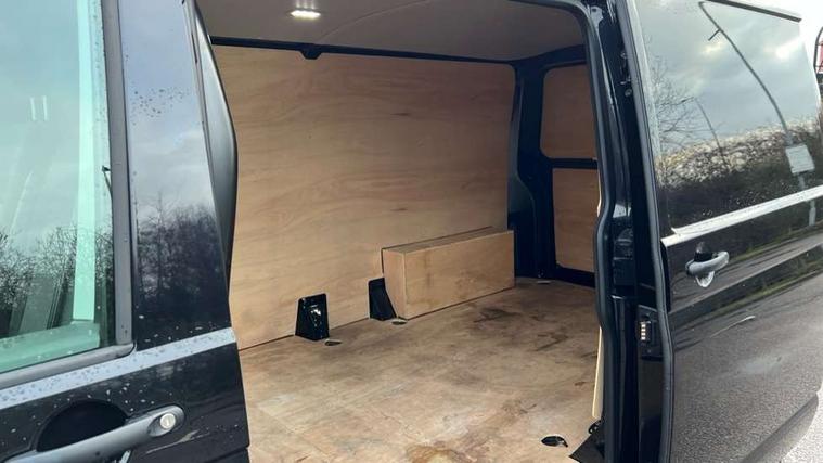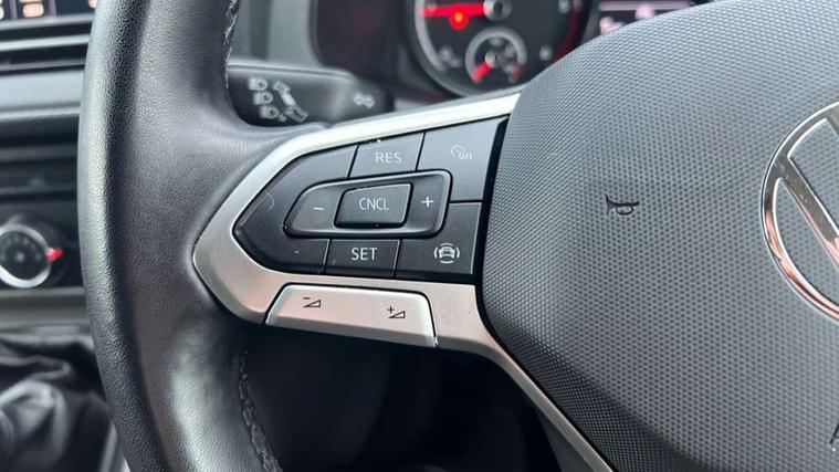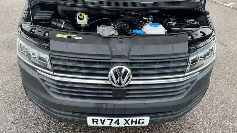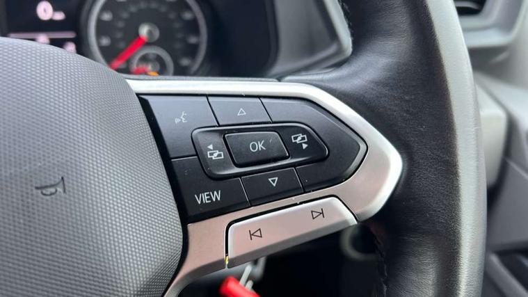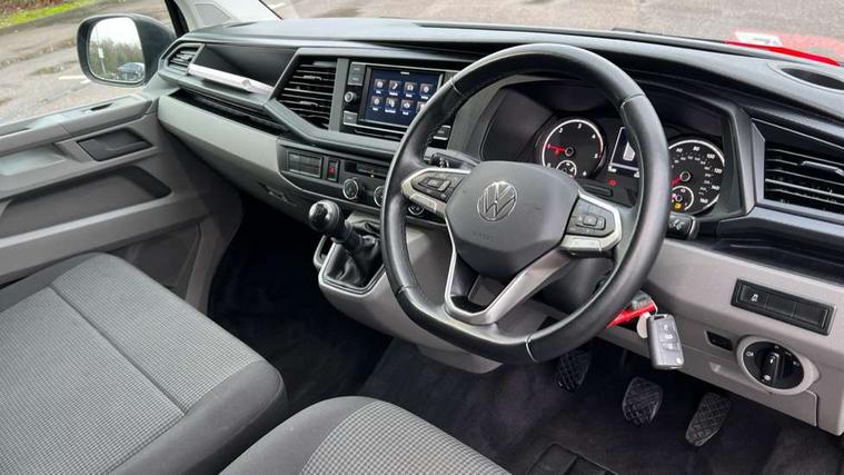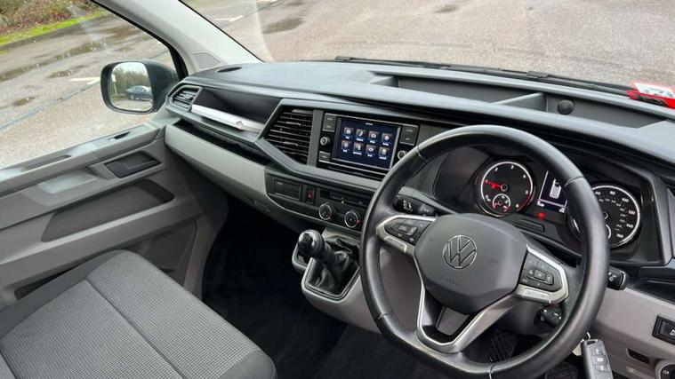 Cross wind assist, Dimmable illuminated instruments, Driver alert with Multi-function display plus, eCall emergency system, Forward collision warning front assist with autonomous emergency braking, Mobile phone interface, Multi function display plus with black and white display, 2 USB interfaces type C in dashboard, 4 speakers with 2 tweeters and 2 woofers, Composition colour radio with 6.5" touchscreen, Digital radio reception (DAB+), Volkswagen app connect, Closing rear wing door with unlatching from the inside, H7 twin halogen headlamps, Heat insulating glass (green) in cab and passenger/load compartment, Heat insulating windshield made of laminated glass, Left convex exterior mirror, Rear wing doors without window apertures, Right convex exterior mirror, Separate Daytime running lights, Transporter nameplate on the rear fender, Unpainted radiator grille with 2 chrome trims, 3 spoke leather wrapped multi function steering wheel, Comfort headliner in cab, hardboard roof trim in passenger and load compartment, Dust/pollen filter, Folding grab handles on roof frame, Front and rear left without window closed side panel in load compartment, Front seats on the right in 1st row of seat, Heavy duty tool kit and jack, High partition, Interior plastic loading edge protection, LED Interior lighting in load and passenger compartment, Standard lower part dashboard in palladium, Without refrigerant, Without right side window apertures in passenger and load compartment, Non smoker pack - Transporter, 3 point height adjustable seat belts on outer seats cab with electric pretensioners, Driver and front passenger airbag with front passenger airbag deactivation, Warning buzzer and light for driver and front passenger seat belt not fastened, Without child safety lock in passenger compartment, Electronic immobiliser, Wheel bolts without wheel locks, 16" chassis with 16" brake system, Diesel particulate filter, Electronic stability control, ABS, ASR with deactivation button, hill start assist and brake assist system, Standard anti drum measures, Start/stop system with regenerative breaking,