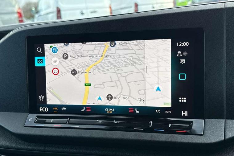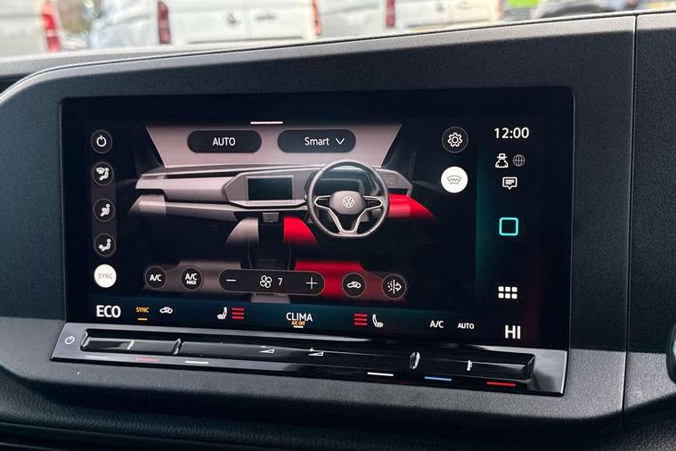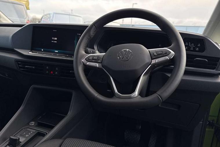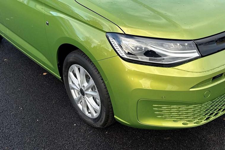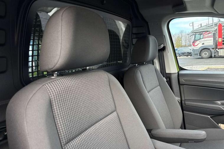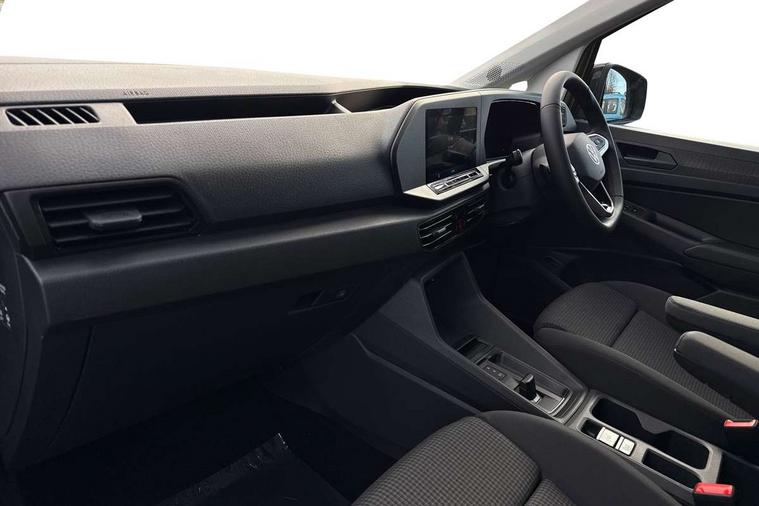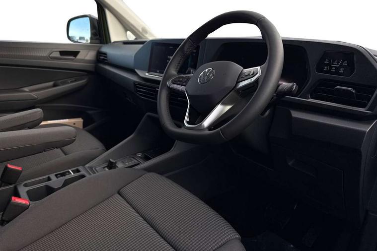 Bluetooth - Mobile phone interface, Car2X technology, Driver alert system, eCall emergency system, Intelligent Speed Assist, Lane assist, Seatbelt warning indicator, Service indicator, Start-stop system with regenerative braking, 2 USB interfaces type C in dashboard, App-Connect - Wireless for Apple CarPlay, DAB Radio, We Connect Plus Preparation, Automatic hazard light activation under emergency braking, Black painted exterior mirror housings, body-colored door handles and Silver sliding door rail, Body coloured bumpers, Electric front windows, LED rear combination lights, LED rear tail lights, Roof rail preparation, Windscreen wiper with variable intermittent delay and wash-wipe system, Dimming breakaway interior rear view mirror, Electronically controlled heating system, ergoComfort seats for driver, Interior light in headliner incorporting LED technology, Lockable glove compartment door with light, Manual heating and ventilation system, Manual height adjustment for front seats and seat cushion inclination and depth adjustment on drivers seat, Multi function leather steering wheel, Power-adjustable lumbar support for drivers seat, Reach and rake adjustable steering column, Six lashing points for securing loads, Steering wheel paddle shift, Storage compartments under driver and front passenger seats, Sun visors with mirror, airbag label on front passenger sun visor, Winter pack plus - Caddy, 3-point seat belts in front, with pretensioner and height adjustment, Driver and front passenger airbag with front passenger airbag deactivation, Tyre pressure monitoring system, Anti-theft alarm system, interior monitoring, backup horn, and towing protection, Electronic engine immobiliser, Remote central locking with deadlocks, interior locking, Anti locking braking system (ABS), Automatic post collision braking system, Brake assist, Electric parking brake with auto hold function, Electronic brake force distribution (EBD), Electronic differential lock (EDL), Electronic stabilisation programme (ESP), Engine drag torque control (MSR), Hill hold assist, Traction control system (TCS), Decorative beige birch vein inserts, Wheel bolts with anti-theft protection (unlockable),
