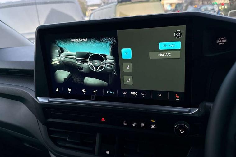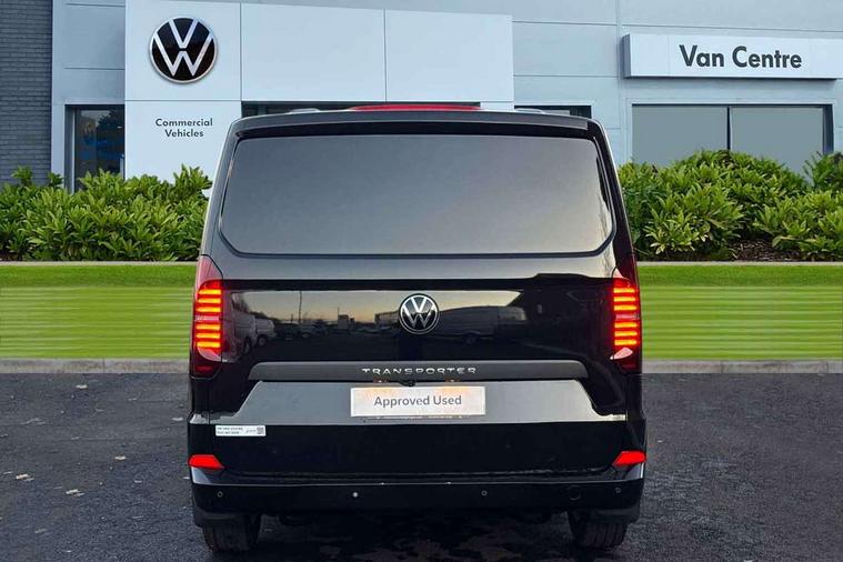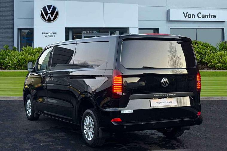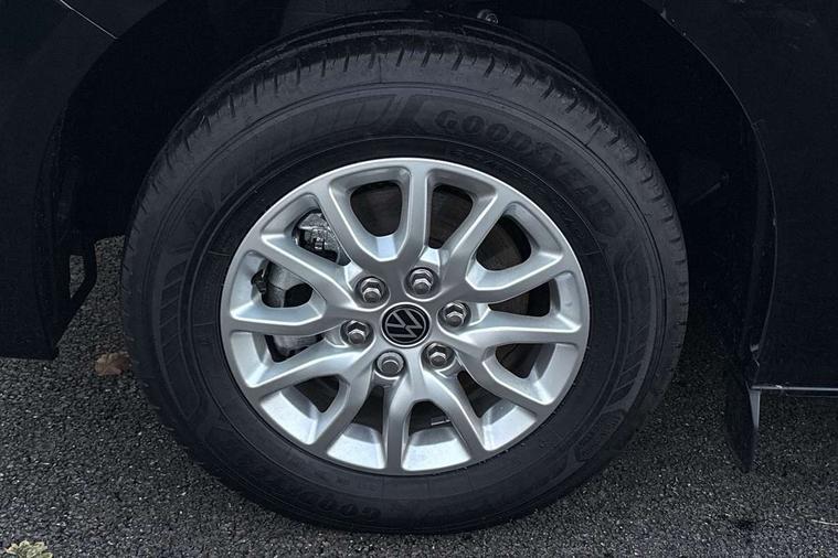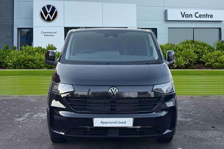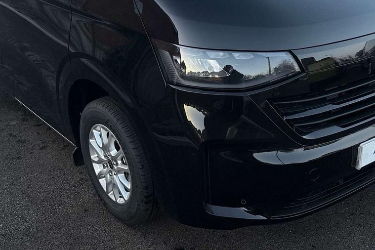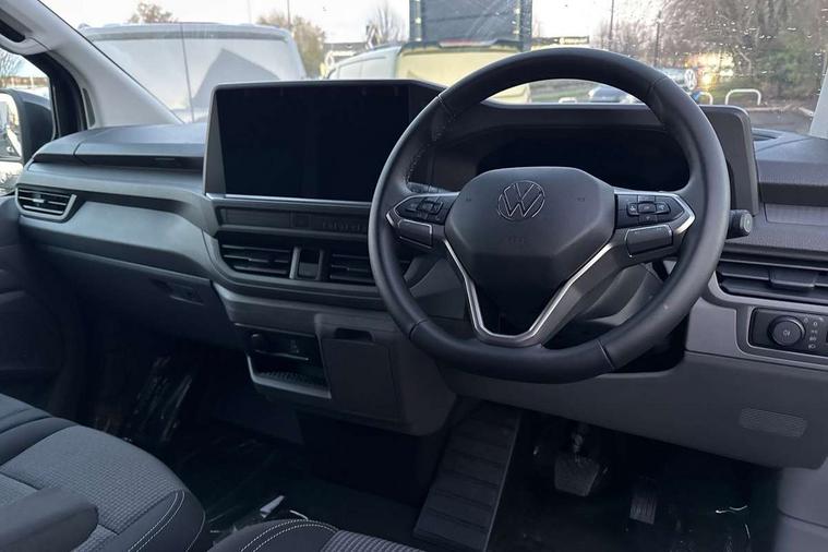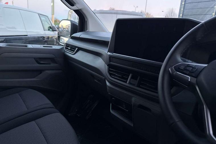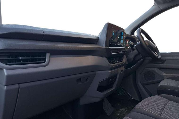 12" digital drivers display, 13" touchscreen infotainment display with wireless app connect and DAB radio, 5G Modem, Adaptive cruise control, Apple CarPlay and Android Auto, Dynamic road sign display, eCall emergency system, Electromechanical speed sensitive power steering, height and longitudinally adjustable steering column, Lane and blind spot assist with exit warning system, Preparation of VW connect and connect plus, Traffic jam assist, Wireless mobile phone charging, Wrong way driver warning, Body colour bumpers, Body coloured door handles, Body coloured door mirrors, Body coloured radiator grille, Electrically heated, adjustable and folding door mirrors, Heat reflecting side window glass, Mud flaps front and rear, Rear Transporter nameplate in black grained decorative trim, Vehicle opening configuration 1x 1st row of seats, 2x all doors, 12V outlet in centre console and 12V outlet on rear right D-pillar, 2x 15-W USB data/charging ports in dashboard and 1x USB-C, 1x USB-A center bottom, 2x LED lights in load compartment, 3x additional super bright LED lights in load compartment, 4 way height and tilt adjustable head restraints, 5 additional USB-C charging ports, Black plastic scuff plate for sliding door in cargo without illumination, Cabin interior lighting, Gear selector lever on steering wheel, Glasses compartment in driver side roof, Grab handle on A-pillar passenger side, Illuminated lockable glovebox, Lashing rings for reinforced floor covering, Narrow centre console with cup holder and compartment for mobile phone, Overhead storage compartment, Rubber floor covering in cab, Striped fabric upholstery, Without passenger seats in load compartment, Driver and front passenger airbag with front passenger airbag deactivation, Dual tone horn, Front and curtain airbags for driver and front passenger, Seat belt pretensioner for driver seat, Anti theft alarm system with interior monitoring in cab, backup horn and towing protection, Electronic immobiliser, Lockable wheel bolts, Preparation for alcohol ignition interlock, 5+ Promise, Alternator - 230A, Electromechanical brake booster, Electronic stability control, ABS, ASR with deactivation button, hill start assist and brake assist system,
