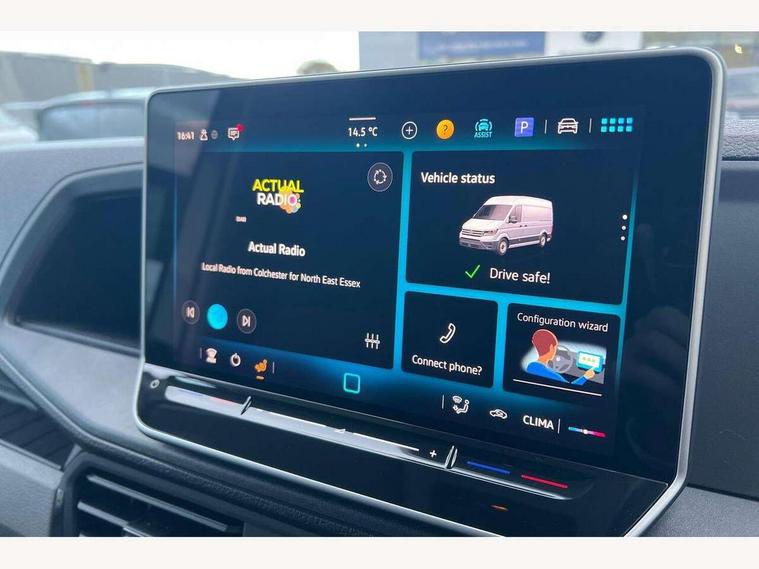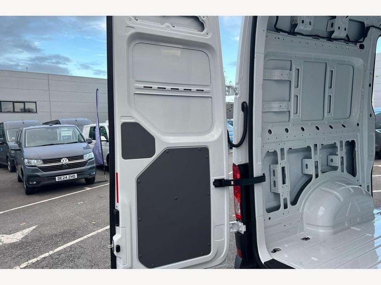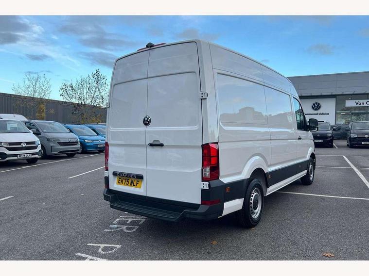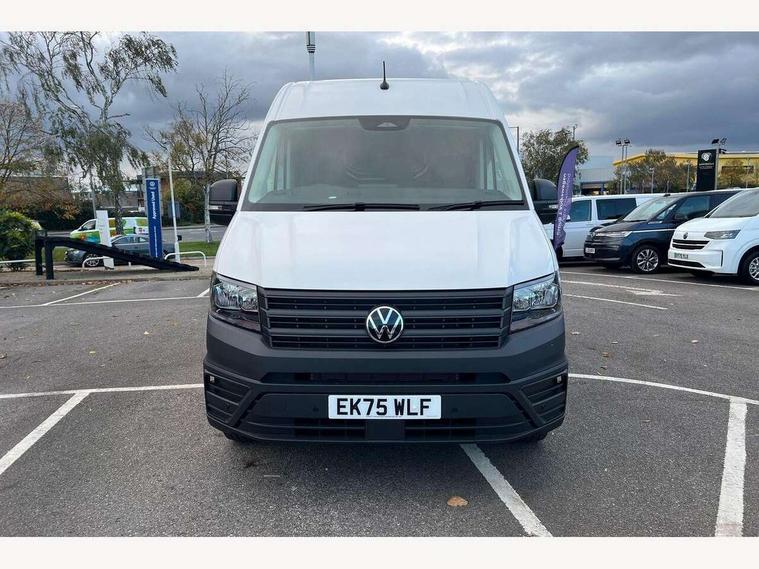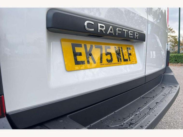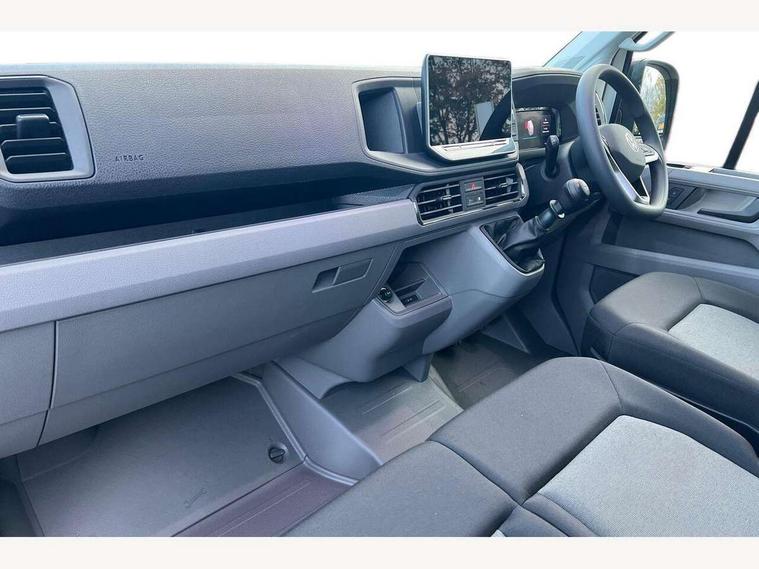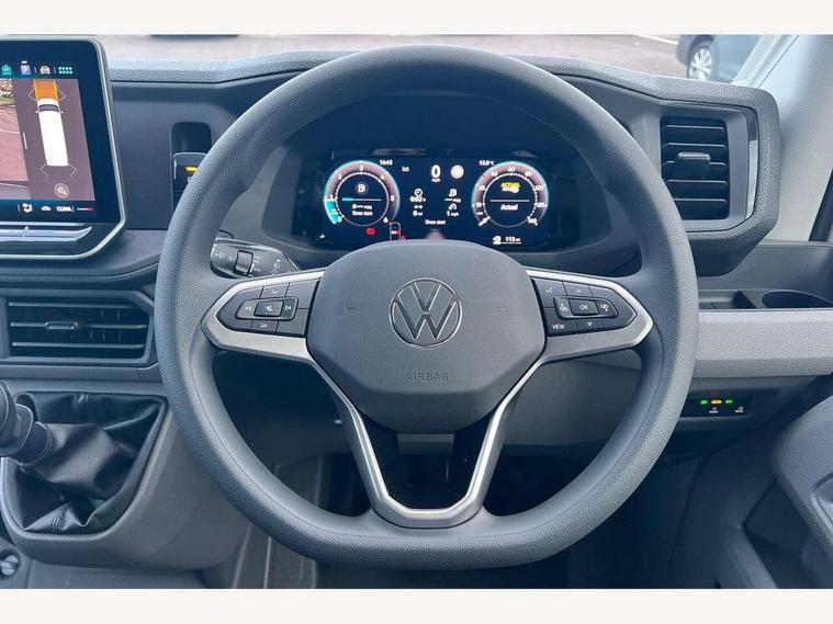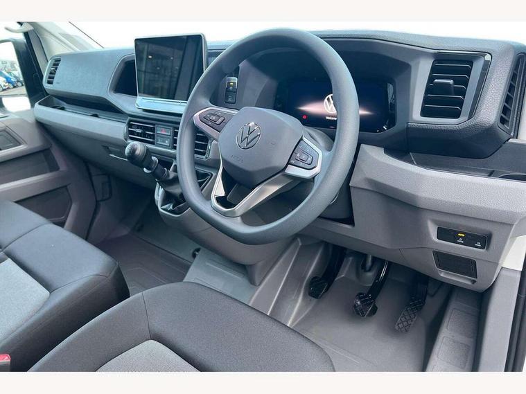 Advanced driver attention and drowsiness monitor, Blind spot monitor, Bluetooth, Digital clock, Digital cockpit with active Info display, Dynamic road sign display, E-call + We connect basic preparation, Forward collision warning with warning and braking reaction to vehicles, pedestrians and cyclists, Front assist including city emergency braking, Instrument cluster, Lane keeping assist, Lights on warning buzzer, Locking fuel cap, Rev counter, Roof console for interior lighting control, Service indicator, Speedometer, USB socket at top of windscreen, Wireless charging, 2 USB C ports in dashboard, DAB Radio, Auto low beam mode, Leaving home function and manual coming home function, Black unpainted plastic front bumper, Cab doors, Convex and wide angle mirror, Driver seatbelt warning light, Electric windows, Heat insulating glass, Indicators in front door mirrors, One towing eye in front, Rear badges, Special identification plate, Touch panel control for exterior lights, Unpainted radiator grille, Windscreen wiper auto control with light and rain sensor, Air recirculation system, Ashtray, Centre console storage tray, CFCU preparation, Charcoal filter, Document holder on centre console, Drinks holders, Electromechanical Servotronic steering, Electronically controlled heating system, Fully adjustable suspension type driver seat, Height adjustable head restraints, Height and reach adjustable steering wheel, Illuminated glove compartment with lockable lid, Interior light, including 2 reading lights, Interior light, switchable by door, Jack and tool kit, Preparation for interface for external use with terminal block, Storage compartments in doors and in step, right, Storage tray on dashboard, Two 12V outlets in the cab (in the dashboard), Without rear side trim panel passenger load compartment, Non-smokers pack - Crafter, 3 point inertia reel belt on all seats, Automatic hazard light with emergency braking, Crosswind assist, Driver and front passenger airbag with front passenger airbag deactivation, Height adjustable seatbelts for outer cab seats, 1 rigid key, Central locking system with Keyless Go without SAFELOCK entry - Keyless entry and start, Engine immobiliser, ABS, Automatic post collision braking system, EBA, EBD, EDL, Electronic parking brake - hill hold control, ESP, Front disc brakes, HBA, Hill start assist, Start and stop system with regenerative braking, TCS, Hub cap covers,