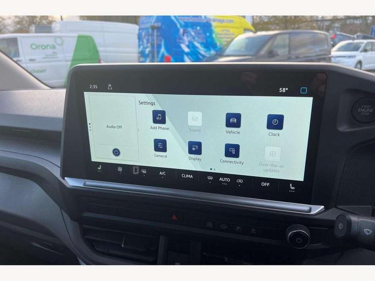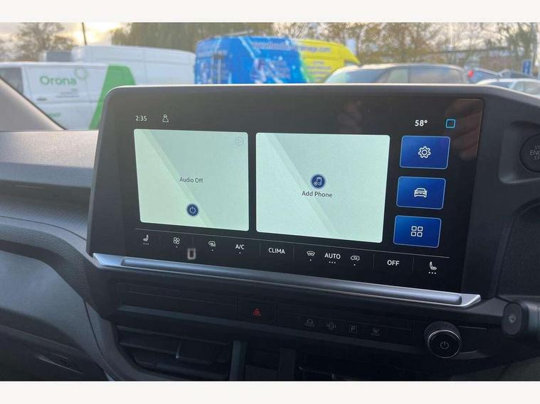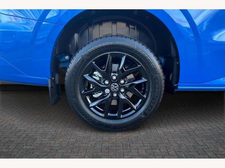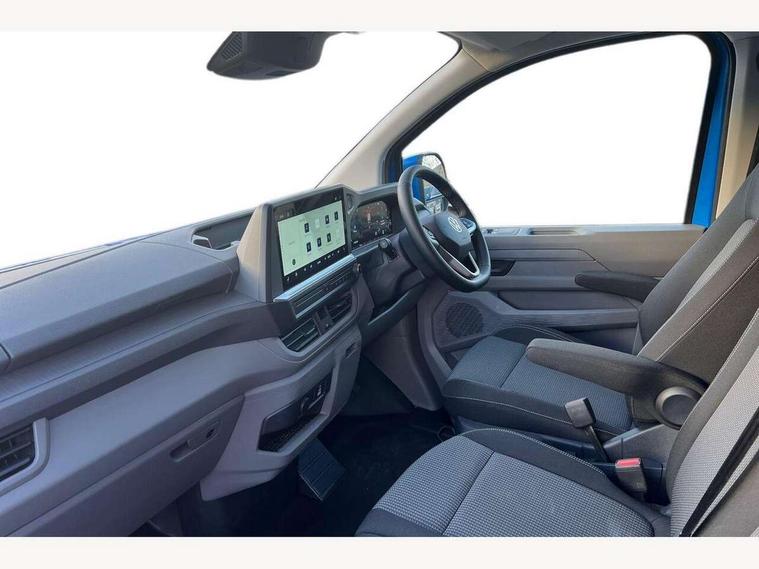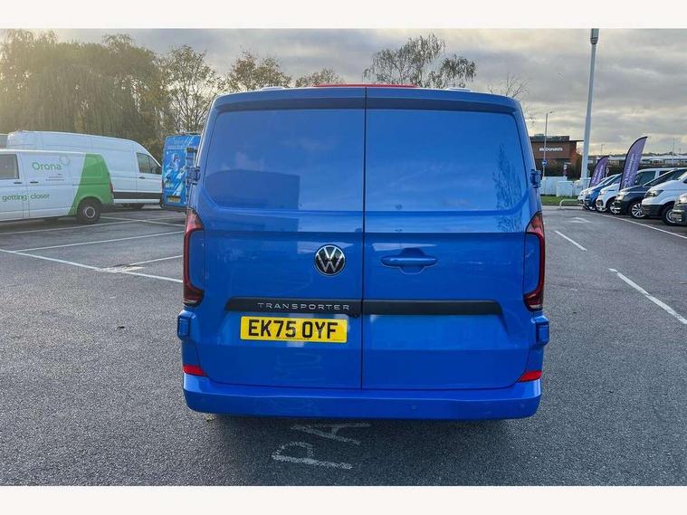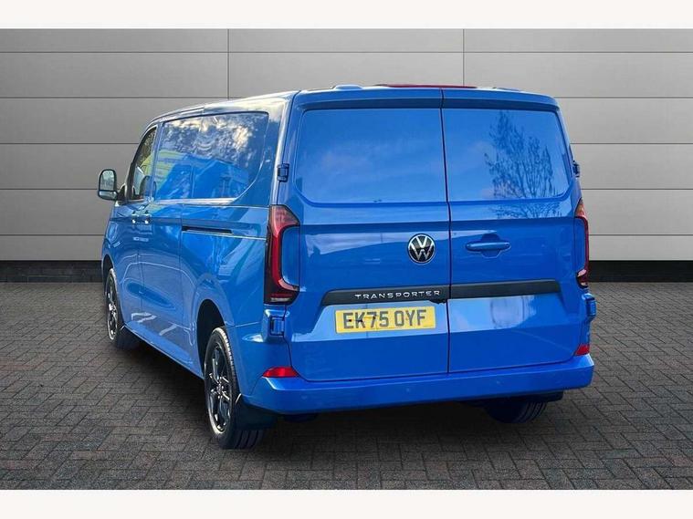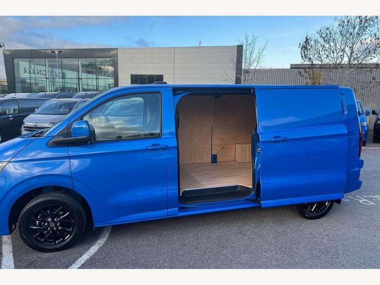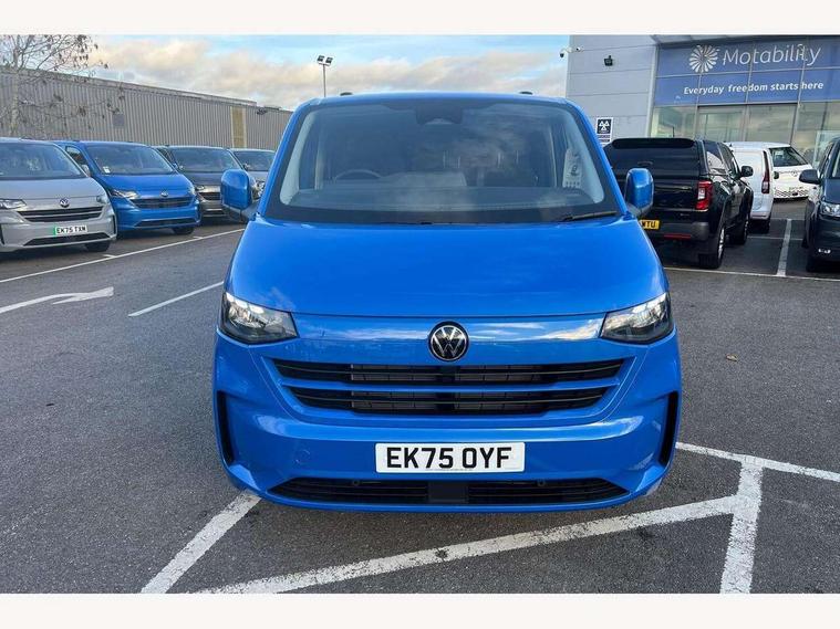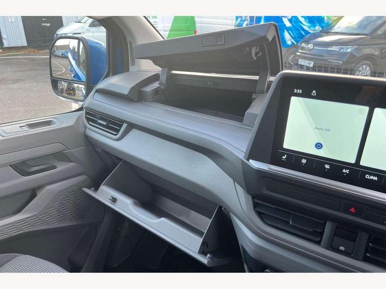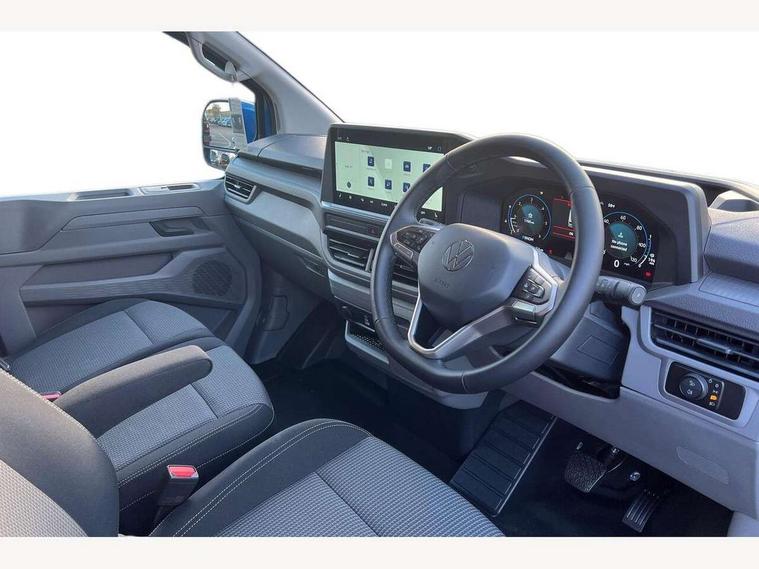 12" digital drivers display, 13" touchscreen infotainment display with wireless app connect and DAB radio, 5G Modem, Adaptive cruise control, Apple CarPlay and Android Auto, Dynamic road sign display, eCall emergency system, Electromechanical speed sensitive power steering, height and longitudinally adjustable steering column, Lane and blind spot assist with exit warning system, Preparation of VW connect and connect plus, Traffic jam assist, Wireless mobile phone charging, Wrong way driver warning, Body colour bumpers, Body coloured door handles, Body coloured door mirrors, Body coloured radiator grille, Electrically heated, adjustable and folding door mirrors, Heat reflecting side window glass, Mud flaps front and rear, Rear Transporter nameplate in black grained decorative trim, Vehicle opening configuration 1x 1st row of seats, 2x all doors, 12V outlet in centre console and 12V outlet on rear right D-pillar, 2x 15-W USB data/charging ports in dashboard and 1x USB-C, 1x USB-A center bottom, 2x LED lights in load compartment, 3x additional super bright LED lights in load compartment, 4 way height and tilt adjustable head restraints, 5 additional USB-C charging ports, Black plastic scuff plate for sliding door in cargo without illumination, Cabin interior lighting, Gear selector lever on steering wheel, Glasses compartment in driver side roof, Grab handle on A-pillar passenger side, Illuminated lockable glovebox, Lashing rings for reinforced floor covering, Narrow centre console with cup holder and compartment for mobile phone, Overhead storage compartment, Rubber floor covering in cab, Striped fabric upholstery, Without passenger seats in load compartment, Driver and front passenger airbag with front passenger airbag deactivation, Dual tone horn, Front and curtain airbags for driver and front passenger, Seat belt pretensioner for driver seat, Anti theft alarm system with interior monitoring in cab, backup horn and towing protection, Electronic immobiliser, Lockable wheel bolts, Preparation for alcohol ignition interlock, 5+ Promise, Alternator - 230A, Electromechanical brake booster, Electronic stability control, ABS, ASR with deactivation button, hill start assist and brake assist system,