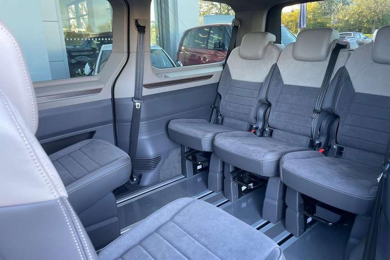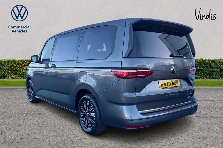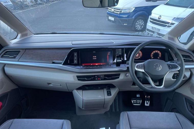 Adaptive cruise control with C2X including front assist and city emergency braking system, Digital Cockpit Pro with 10.25" colour display with adaptable display includes navigation map display, telephone contact images and audio information, Discover media pro navi system with 10" colour touch incl DAB+radio/appconnect for apple carplay/android auto/streaming and internet/gesture control, Driver alert system, Dynamic road sign display, eCall emergency system, Electrically-operated tailgate opening and closing function (Easy open), operated via foot movement under rear tailgate, Emergency assist, Front Cross Traffic Alert, Lane change system with side assist including blind spot monitor, rear traffic alert and exit warning system, Lane keeping system Lane Assist, Mobile phone interface, PAS, Semi-automated driving assistance, Tailgate, Travel assist, Voice control system including Alexa web app, We connect preparation, Electronic differential lock, 2 USB-C ports in front and 4 USB-C ports in passenger compartment, Additional interior noise reduction measures, Advanced high beam control dynamic light assist for LED matrix headlamps, Automatic headlight control with welcome home lights, Body coloured exterior door handles, Break away auto dimming rear view interior mirror, Chrome trim decorative strip mid-way on side and rear, Dynamic headlight range control with dynamic cornering light, Electrically adjustable, heated and folding door mirrors, Front fog lights, Glossy black painted radiator grille with 2 illuminated chrome trims, Heated rear window with window wiper and washer system, Heated windscreen, High gloss black exterior mirror housing, IQ.Light LED matrix headlamps with LED separate daytime running light, Laminated safety glass windshield, heat and sound insulating, LED 3rd brake lamp, LED rear combination lamps, Rear wiper, Stainless steel tailgate trim, Surround lighting in door area and tailgate with logo projection in door area, Windshield wiper intermittent control with rain sensor, 1 x 12V sockets on the dash panel, 12V socket in passenger compartment, 3 seat bench in 3rd row, 30 colours ambient interior lighting and tailgate surround lighting, 7 single seats removable/movable, Carpet mats in cab, Climatronic 3 zone air conditioning with additional control panel in passenger compartment, Front and rear head restraints, Grab handles on A pillar for access, on driver and front passenger side, Height adjustable seats, Height and longitudinal adjustment steering wheel with gear shift paddles, Illumination lockable glovebox compartment, ISOFIX (including i-size) and top tether in all seats in 2nd and 3rd rows, LED luggage compartment lighting X 2, Load compartment partition to 20kg with bag hooks and luggage net, Luggage compartment lid power latching with unlatching from inside, Multifunction leather steering wheel with tiptronic, Reinforced carpet floor covering in passenger compartment, Removable armrests for front seats with power adjustable lumbar support and folding table for 2nd row passenger seats, Single front passenger seat, Slidable multifunction table/centre console with 3 cup holders, Stainless steel pedals, Storage compartment under the 2nd and 3rd row seat and two waste bins, Sun visors with illuminated vanity mirror, ticket holder on driver side with airbag warning label on sunvisor and B-pillar, Easy open package - Multivan, 3x3 point rear seat belts, ABS, Automatic post collision braking system, Autonomous emergency braking front assist with pedestrian and cyclist monitoring, Driver and front passenger airbag with front passenger airbag deactivation, Electric childproof lock, Electronic stability control (ESC) and Electromechanical brake booster, ESP, First aid kit with warning triangle and safety vest, Front disc brakes, Hill hold assist, Seat belt warning for the drivers and all passengers seats if unfastened, Side and curtain airbags for driver and front passenger, curtain airbags for outer seats in rear, centre airbag in front, Single tone horn, Traction control, Tyre pressure monitoring system, Anti theft alarm system with interior monitoring in cab, backup horn and towing protection, Central locking system with interior control and safe lock, Keyless advanced with keyless entry, Start/stop button on centre console, Dark woodgrain optic decorative inserts,