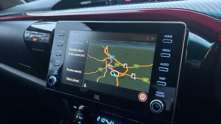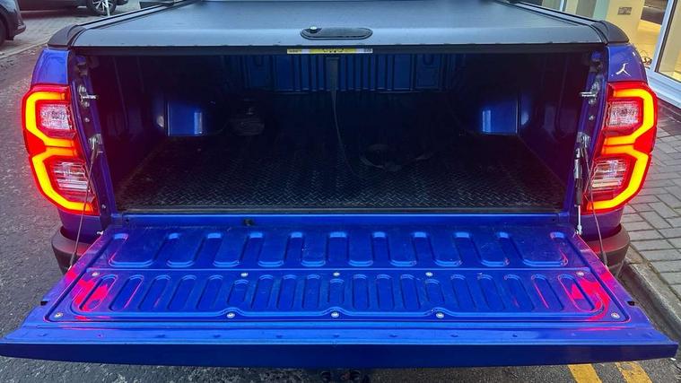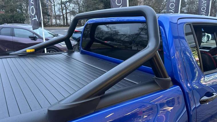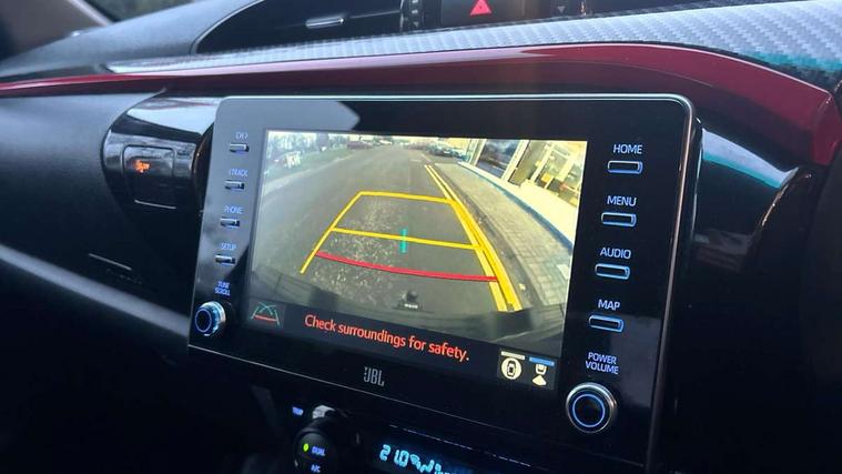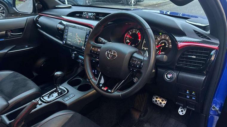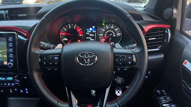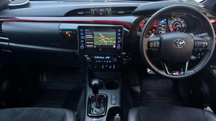 4.2" Multi information display, Bluetooth connectivity, Dynamic guide lines on reversing camera, Front and rear parking sensors, Fuel heater, Intelligent adaptive cruise control, Lane departure warning system, Lights on warning buzzer, Panoramic view monitor, PAS, Pre-collision system with pedestrian detection, Rear view camera, Road sign assist, Smart phone integration with Android auto & Apple CarPlay, Tachometer, Touch 2 multimedia system with 8" display + GO navigation system, Digital radio (DAB), JBL Premium sound system with 9 speakers, MP3 compatibility, Steering wheel mounted audio controls, USB connector, Auto dimming rear view mirror, Auto Headlights, Automatic headlamp levelling, Black door handles, Black door mirrors, Black G-Mesh Grille, Black side steps, Body coloured front bumper, Dark grey rear bumper, Emergency brake light assist (EBS), Follow me home headlights, Front power windows with auto up and down function, Front wiper De-icer, Headlight cut-off reminder, Headlight washers, Heated door mirrors, Heated rear window, LED Daytime running lights, LED dual beam projector headlights, LED front fog lights, LED rear lights, Mud flaps front and rear, Power rear side window, Power retractable door mirrors, Rear fog lights, Rear window privacy glass, Trailer sway control, Underbody protection cover, Variable front wipers, Windscreen shadeband, 220V power socket, 60/40 split tip-up rear bench seat, Alcantara/Leather upholstery, Ambient door lighting, Carpet covered floor, Centre console coolbox, Centre console with lid, storage and armrest, Cooler in upper glove box, Dual zone auto A/C, Heated front seats, Heated rear seats, Inner load hooks on cargo deck, Leather steering wheel and gearshift lever, Locking glovebox, Power adjustable drivers seat, Rear passenger footwell heating, Tilt adjustable steering wheel, Automatic front passenger airbag on/off switch, Child proof rear door locks, Front passenger airbag detector, Front seatbelt pre-tensioners + force limiters, Front seatbelt reminder, Isofix child seat preparation, Rear seatbelt pre-tensioners with load limiters, Supplement restraint system (SRS) 7 airbags - driver and passenger, knee, side and curtain, Immobiliser, Lockable tailgate, Remote central locking, Smart entry and start system button, 2 12v sockets, ABS with EBD, Auto limited slip differntial, Brake assist, Downhill Assist Control (DAC), Front and rear monotube shock absorbers, Front red coil springs, Hill start assist, Load sensing proportioning system, Stop/start function, Traction control, Vehicle stability control, 17" Bi - tone black machined face GR Sport alloy wheels, All terrain tyres, Full size alloy spare wheel, GR Sport black wheel caps,