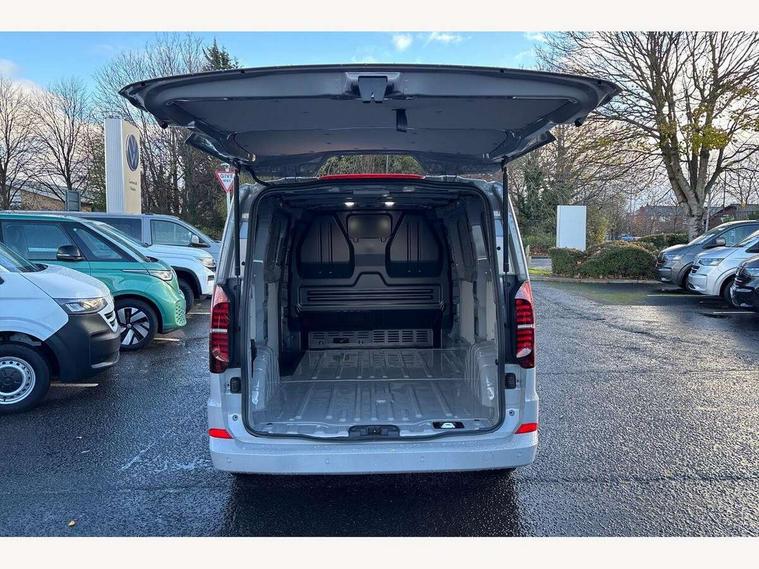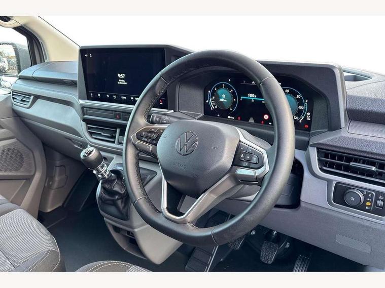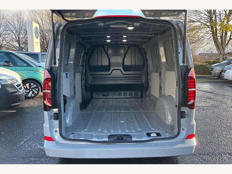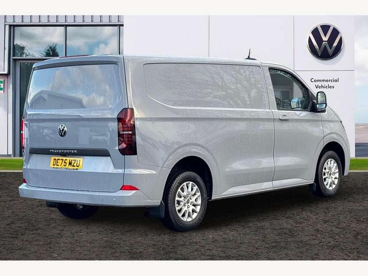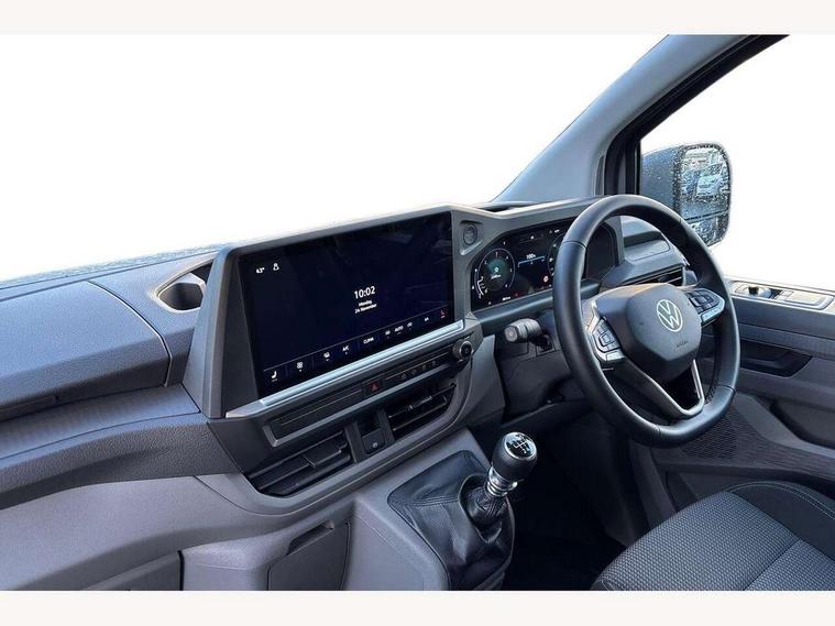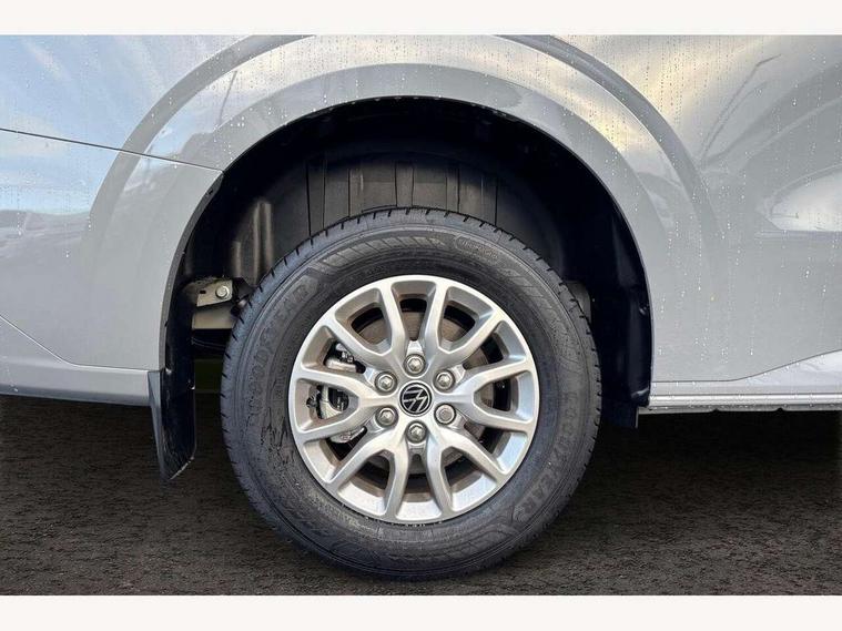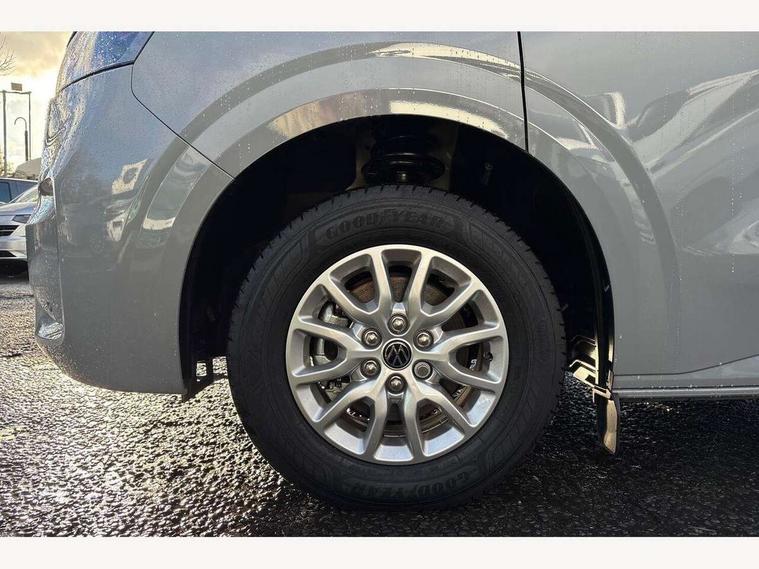 12" digital drivers display, 13" touchscreen infotainment display with wireless app connect and DAB radio, 5G Modem, Adaptive cruise control, Apple CarPlay and Android Auto, Dynamic road sign display, eCall emergency system, Electromechanical speed sensitive power steering, height and longitudinally adjustable steering column, Lane and blind spot assist with exit warning system, Preparation of VW connect and connect plus, Wireless mobile phone charging, Wrong way driver warning, Body colour bumpers, Body coloured door handles, Body coloured door mirrors, Body coloured radiator grille, Electrically heated, adjustable and folding door mirrors, Heat reflecting side window glass, Mud flaps front and rear, Rear Transporter nameplate in black grained decorative trim, Vehicle opening configuration 1x 1st row of seats, 2x all doors, 12V outlet in centre console and 12V outlet on rear right D-pillar, 2x 15-W USB data/charging ports in dashboard and 1x USB-C, 1x USB-A center bottom, 2x LED lights in load compartment, 3x additional super bright LED lights in load compartment, 4 way height and tilt adjustable head restraints, 5 additional USB-C charging ports, Black plastic scuff plate for sliding door in cargo without illumination, Cabin interior lighting, Glasses compartment in driver side roof, Grab handle on A-pillar passenger side, Illuminated lockable glovebox, Lashing rings for reinforced floor covering, Leatherette gear lever, Narrow centre console with cup holder and compartment for mobile phone, Overhead storage compartment, Rubber floor covering in cab, Striped fabric upholstery, Without passenger seats in load compartment, Driver and front passenger airbag with front passenger airbag deactivation, Dual tone horn, Front and curtain airbags for driver and front passenger, Seat belt pretensioner for driver seat, Anti theft alarm system with interior monitoring in cab, backup horn and towing protection, Electronic immobiliser, Lockable wheel bolts, Preparation for alcohol ignition interlock, 5+ Promise, Alternator - 230A, Electromechanical brake booster, Electronic stability control, ABS, ASR with deactivation button, hill start assist and brake assist system,