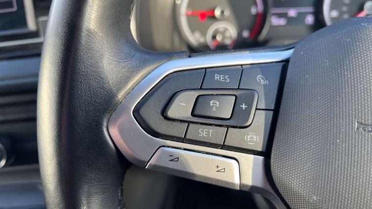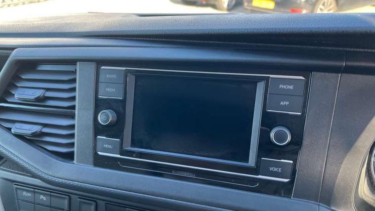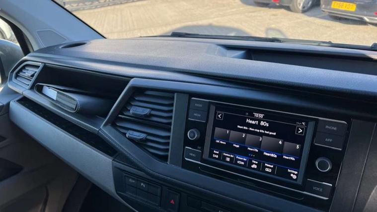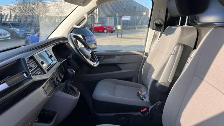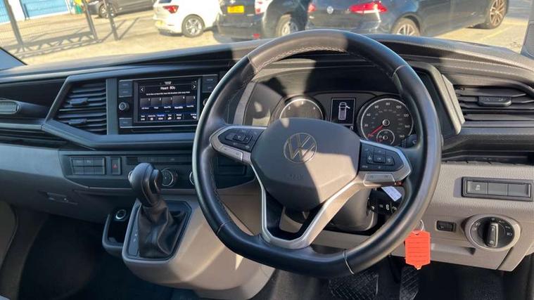 Adaptive cruise control, Cross wind assist, Dimmable illuminated instruments, Driver alert with Multi-function display plus, eCall emergency system, Forward collision warning front assist with autonomous emergency braking, Mobile phone interface, Multi function display plus with black and white display, 2 USB interfaces type C in dashboard, 4 speakers with 2 tweeters and 2 woofers, Composition colour radio with 6.5" touchscreen, Digital radio reception (DAB+), Volkswagen app connect, Automatic headlight control, leaving home and manual coming home feature, Closing rear wing door with unlatching from the inside, Front fog lamps with cornering light, Heat insulating glass (green) in cab and passenger/load compartment, Heated front windscreen, Left convex exterior mirror, Power folding adjustable door mirrors with separately heated, Radiator grille with 2 chrome trims, Rear wing doors without window apertures, Right convex exterior mirror, Transporter nameplate on the rear fender, Windshield wiper intermittent control with rain sensor for windshield wipers, 3 spoke leather wrapped multi function steering wheel, Auto dimming breakaway interior rear view mirror, Comfort headliner in cab, hardboard roof trim in passenger and load compartment, Dust/pollen filter, Front and rear left without window closed side panel in load compartment, Front seats on the right in 1st row of seat, Glove compartment with illumination, Heavy duty tool kit and jack, High partition, Interior plastic loading edge protection, LED Interior lighting in load and passenger compartment, Manual adjustable lumbar support for right single seat in 1st row seats, Refrigerant R134a, Standard lower part dashboard in palladium, Storage compartments on cab seats and reading light, Without right side window apertures in passenger and load compartment, Comfort pack - Transporter, Exterior pack without fog light- Transporter, Non smoker pack - Transporter, 3 point height adjustable seat belts on outer seats cab with electric pretensioners, Driver and front passenger airbag with front passenger airbag deactivation, Warning buzzer and light for driver and front passenger seat belt not fastened, Without child safety lock in passenger compartment, Anti theft alarm system with interior monitoring in cab, backup horn and towing protection, Lockable wheel bolts, 16" chassis with 16" brake system, Diesel particulate filter, Electronic stability control, ABS, ASR with deactivation button, hill start assist and brake assist system, Start/stop system with regenerative breaking, 17" Devonport alloy wheels,