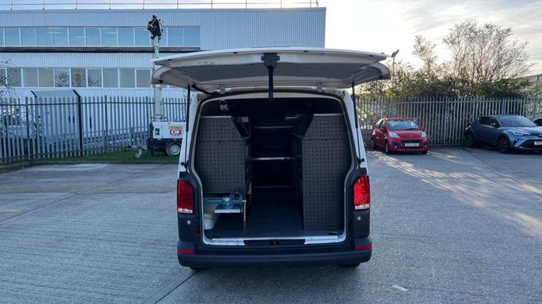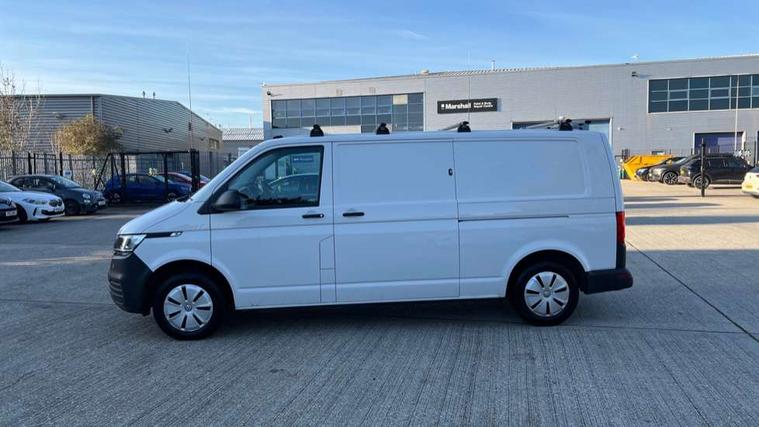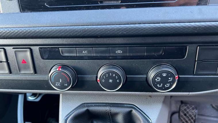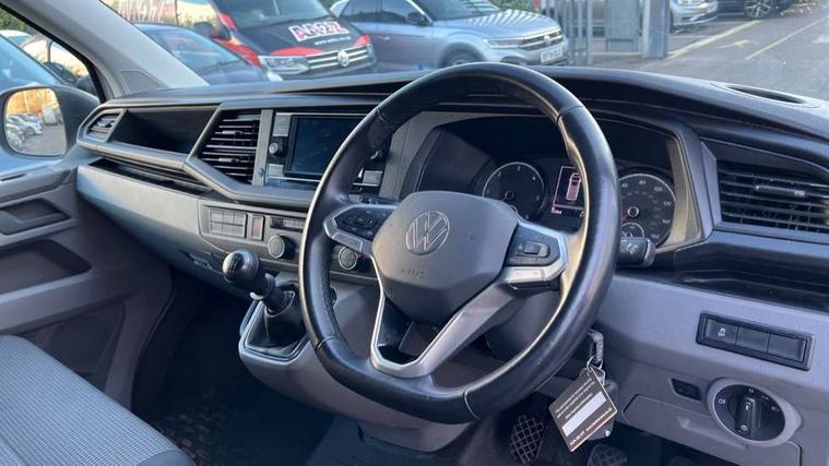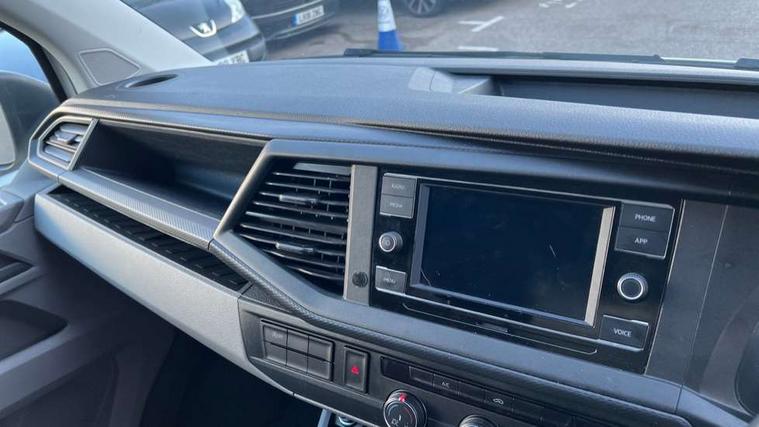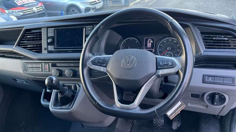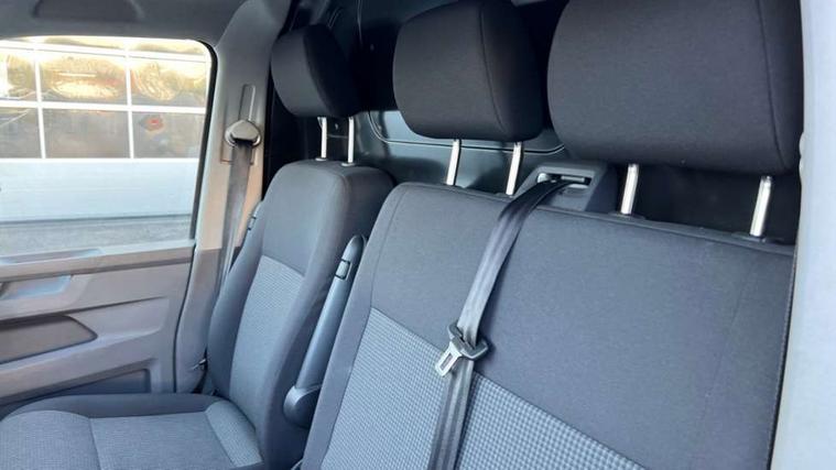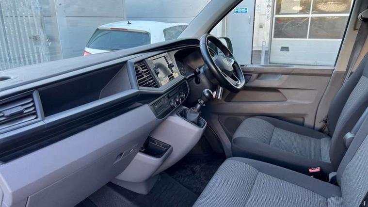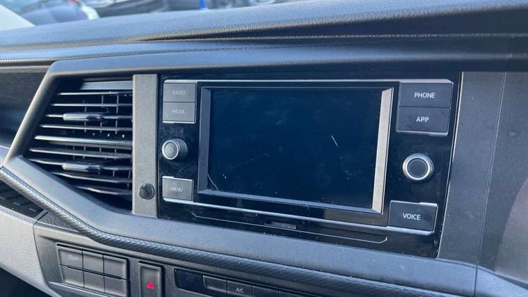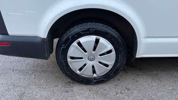 Cross wind assist, Dimmable illuminated instruments, Driver alert with Multi-function display plus, eCall emergency system, Forward collision warning front assist with autonomous emergency braking, Mobile phone interface, Multi function display plus with black and white display, 2 USB interfaces type C in dashboard, 4 speakers with 2 tweeters and 2 woofers, Composition colour radio with 6.5" touchscreen, Digital radio reception (DAB+), Volkswagen app connect, Closing rear wing door with unlatching from the inside, H7 twin halogen headlamps, Heat insulating glass (green) in cab and passenger/load compartment, Heat insulating windshield made of laminated glass, Left convex exterior mirror, Rear wing doors without window apertures, Right convex exterior mirror, Separate Daytime running lights, Transporter nameplate on the rear fender, Unpainted radiator grille with 2 chrome trims, 3 spoke leather wrapped multi function steering wheel, Comfort headliner in cab, hardboard roof trim in passenger and load compartment, Dust/pollen filter, Folding grab handles on roof frame, Front and rear left without window closed side panel in load compartment, Front seats on the right in 1st row of seat, Heavy duty tool kit and jack, High partition, Interior plastic loading edge protection, LED Interior lighting in load and passenger compartment, Standard lower part dashboard in palladium, Without refrigerant, Without right side window apertures in passenger and load compartment, Non smoker pack - Transporter, 3 point height adjustable seat belts on outer seats cab with electric pretensioners, Driver and front passenger airbag with front passenger airbag deactivation, Warning buzzer and light for driver and front passenger seat belt not fastened, Without child safety lock in passenger compartment, Electronic immobiliser, Wheel bolts without wheel locks, 16" chassis with 16" brake system, Diesel particulate filter, Electronic stability control, ABS, ASR with deactivation button, hill start assist and brake assist system, Standard anti drum measures, Start/stop system with regenerative breaking,