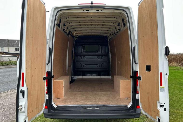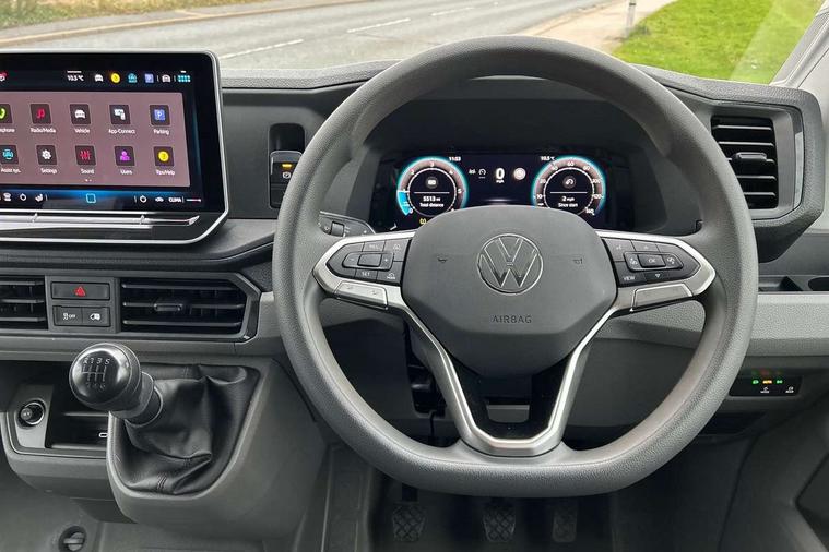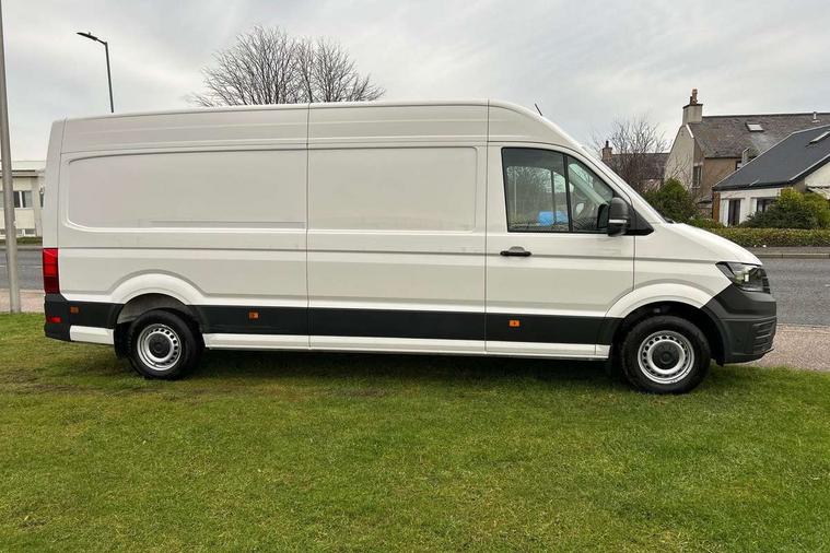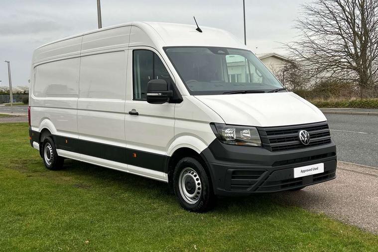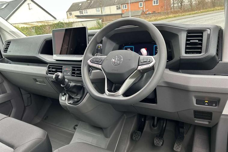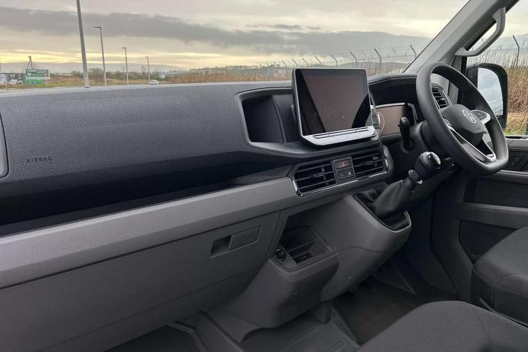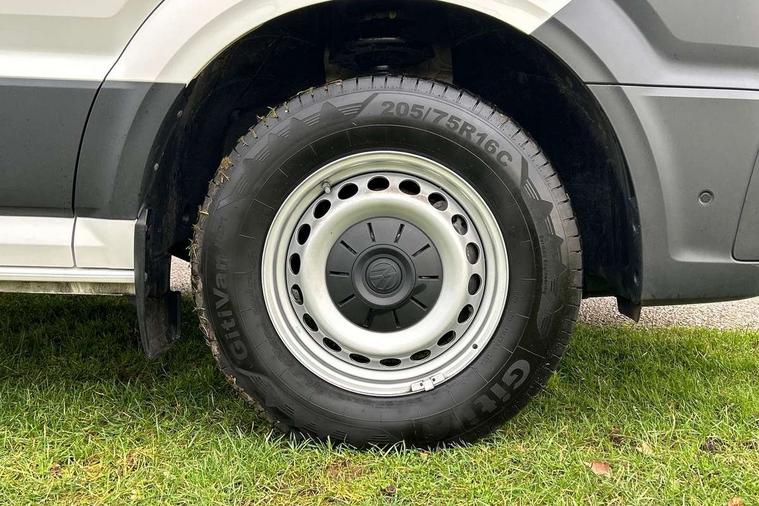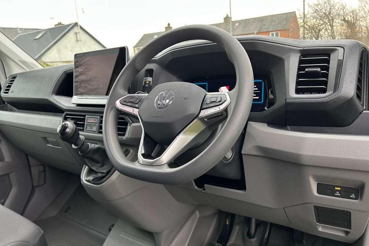 Advanced driver attention and drowsiness monitor, Blind spot monitor, Bluetooth, Digital clock, Digital cockpit with active Info display, Dynamic road sign display, E-call + We connect basic preparation, Forward collision warning with warning and braking reaction to vehicles, pedestrians and cyclists, Front assist including city emergency braking, Instrument cluster, Lane keeping assist, Lights on warning buzzer, Locking fuel cap, Rev counter, Roof console for interior lighting control, Service indicator, Speedometer, USB socket at top of windscreen, Wireless charging, 2 USB C ports in dashboard, DAB Radio, Auto low beam mode, Leaving home function and manual coming home function, Black unpainted plastic front bumper, Cab doors, Convex and wide angle mirror, Driver seatbelt warning light, Electric windows, Heat insulating glass, Indicators in front door mirrors, One towing eye in front, Rear badges, Special identification plate, Touch panel control for exterior lights, Unpainted radiator grille, Windscreen wiper auto control with light and rain sensor, Air recirculation system, Ashtray, Centre console storage tray, CFCU preparation, Charcoal filter, Document holder on centre console, Drinks holders, Electromechanical Servotronic steering, Electronically controlled heating system, Fully adjustable suspension type driver seat, Height adjustable head restraints, Height and reach adjustable steering wheel, Illuminated glove compartment with lockable lid, Interior light, including 2 reading lights, Interior light, switchable by door, Jack and tool kit, Preparation for interface for external use with terminal block, Storage compartments in doors and in step, right, Storage tray on dashboard, Two 12V outlets in the cab (in the dashboard), Without rear side trim panel passenger load compartment, Non-smokers pack - Crafter, 3 point inertia reel belt on all seats, Automatic hazard light with emergency braking, Crosswind assist, Driver and front passenger airbag with front passenger airbag deactivation, Height adjustable seatbelts for outer cab seats, 1 rigid key, Central locking system with Keyless Go without SAFELOCK entry - Keyless entry and start, Engine immobiliser, ABS, Automatic post collision braking system, EBA, EBD, EDL, Electronic parking brake - hill hold control, ESP, Front disc brakes, HBA, Hill start assist, Start and stop system with regenerative braking, TCS, Hub cap covers,