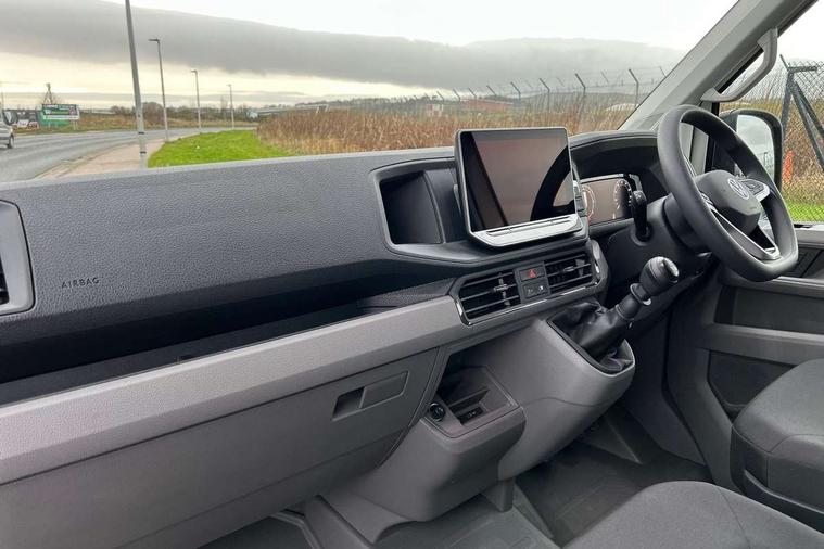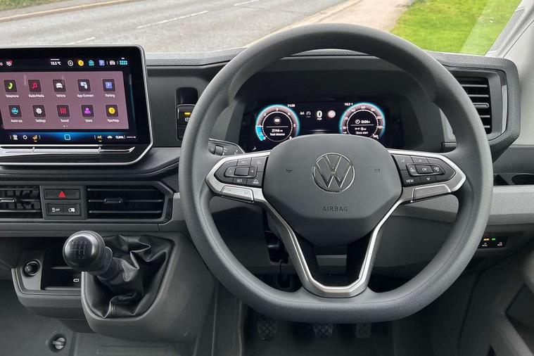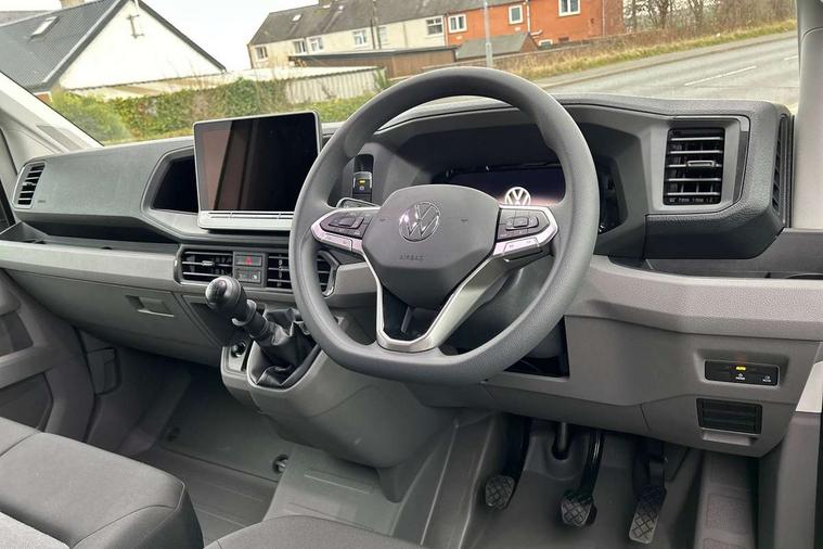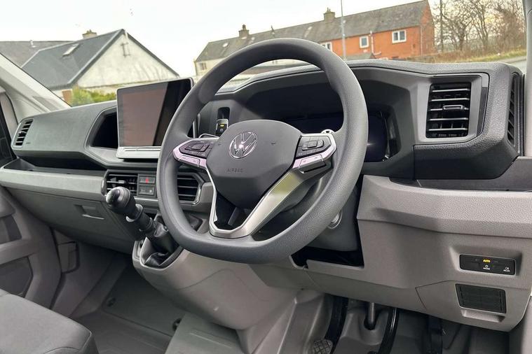Bluetooth, Digital clock, Driver alert system, E-call + We connect basic preparation, Instrument cluster, Lights on warning buzzer, Locking fuel cap, Multi-function Display Plus, Rev counter, Service indicator, Speedometer, Voice control system, Composition media with 6.5" with we connect plus prep, 4 speaker, multifun display plus, USB, mob interface, app con, "We connect function", DAB Radio, Auto low beam mode, Leaving home function and manual coming home function, Cab doors, Convex and wide angle mirror, Driver seatbelt warning light, Electric windows, Electrically heated and adjustable door mirrors, Half painted front bumper, Heat insulating glass, Indicators in front door mirrors, One towing eye in front, Rear wing doors with 270 degree hinges, Special identification plate, Unpainted radiator grille, Air recirculation system, Ashtray, Centre console storage tray, CFCU preparation, Charcoal filter, Climatic air conditioning, Document holder on centre console, Drinks holders, Electromechanical Servotronic steering, Electronically controlled heating system, Fully adjustable suspension type driver seat, Grab handles on rear entry pillars, Height adjustable head restraints, Height and reach adjustable steering wheel, Illuminated glove compartment with lockable lid, Interior light, including 2 reading lights, Interior light, switchable by door, Jack and tool kit, Preparation for interface for external use with terminal block, Storage compartments in doors and in step, right, Storage tray on dashboard, Two 12V outlets in the cab (in the dashboard), Without rear side trim panel passenger load compartment, Non-smokers pack - Crafter, 3 point inertia reel belt on all seats, Automatic hazard light with emergency braking, Crosswind assist, Driver and front passenger airbag with front passenger airbag deactivation, Height adjustable seatbelts for outer cab seats, 1 rigid key, Anti-theft alarm with interior monitor, back up horn and tow away protect, overhead storage with two 1-DIN, reading light, SAFELOCK with 2 remote keys, Engine immobiliser, ABS, Automatic post collision braking system, EBA, EBD, EDL, ESP, Front disc brakes, HBA, Hill start assist, Parking brake - hill hold control, Start and stop system with regenerative braking, TCS, Hub cap covers,