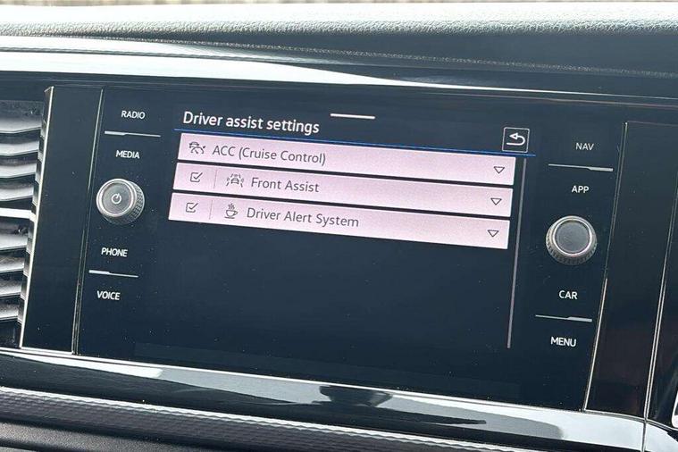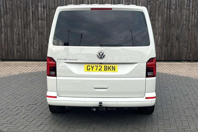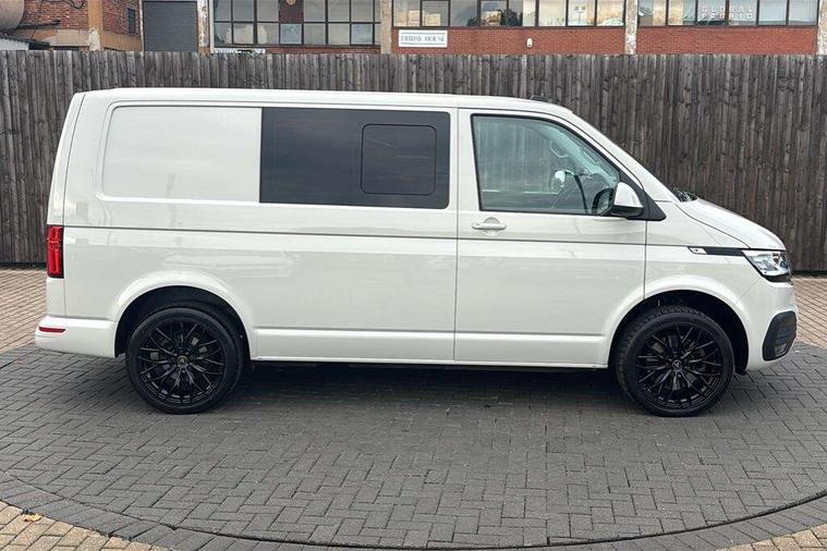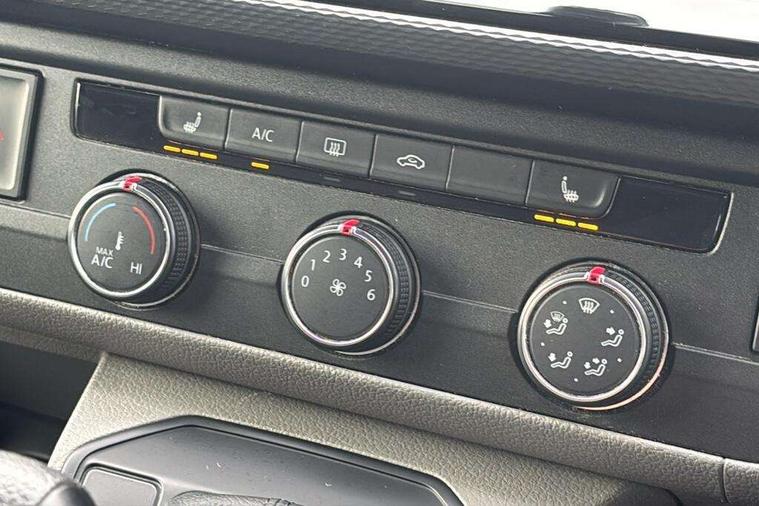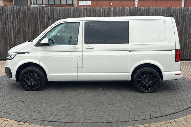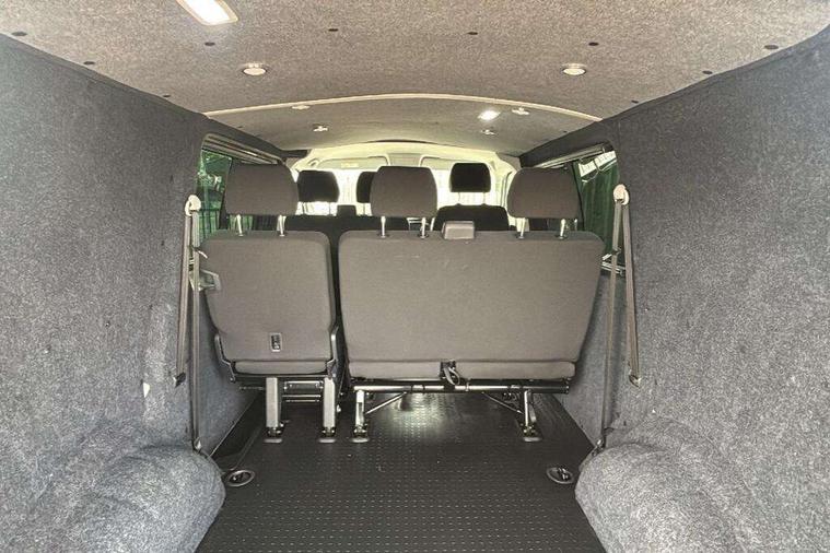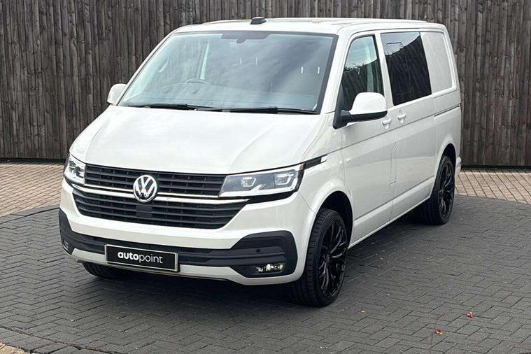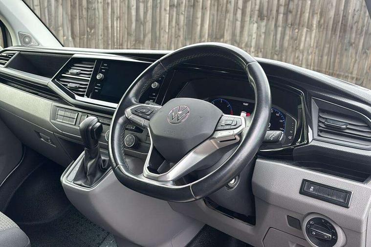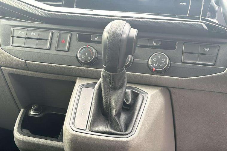 Adaptive cruise control, Child seat anchors ISOFIX and top tether in 2nd row of seats, Cross wind assist, Dimmable illuminated instruments, Driver alert with black and white multi function display plus, eCall emergency system, Forward collision warning front assist with autonomous emergency braking, Headlight range control, Mobile phone interface, Without voice control, 2 USB interfaces type C in dashboard, 4 speakers with 2 tweeters and 2 woofers, Composition colour radio with 6.5" touchscreen, Digital radio reception (DAB+), Volkswagen app connect, Automatic headlight control, leaving home and manual coming home feature, Front fog lamps with cornering light, Green heat insulating glass, Heated front windscreen, Illuminated steps in passenger/load compartment, Left convex exterior mirror, Power folding adjustable door mirrors with separately heated, Privacy glass from the B-pillar and heat-insulating glass in front, Radiator grille with 2 chrome trims, Rear window with heated insulating glass, heated rear window wiper and washer system, Right convex exterior mirror, Tailgate closing with unlatching from the inside, Transporter nameplate on the rear fender, Windshield wiper intermittent control with rain sensor for windshield wipers, Without adhesive film, 3 spoke leather wrapped multi function steering wheel, Additional sound deadening measures in cab and passenger compartment, Auto dimming breakaway interior rear view mirror, Comfort headliner in cab, hardboard roof trim in passenger and load compartment, Dust/pollen filter, Folding grab handles and storage compartments on cab seats, reading light, Front seats on the right in 1st row of seat, Glove compartment with illumination, Heavy duty tool kit and jack, Interior plastic loading edge protection, Lashing rings for load restraint system, LED Interior lighting in load and passenger compartment, Medium height for vehicles with window aperture hardboard side trim panels in passenger/load compartment, Refrigerant R134a, Standard lower part dashboard in palladium, Without partition, Without seats in 3rd row of seats, Comfort pack - Transporter, Exterior pack without fog light- Transporter, Light and vision pack - Transporter, Non smoker pack - Transporter, 3 point height adjustable seat belts on outer seats cab with electric pretensioners, Driver and front passenger airbag with front passenger airbag deactivation, Power operated child safety lock, Warning buzzer and light for driver seat belt not fastened, Anti theft alarm system with interior monitoring in cab, backup horn and towing protection, Lockable wheel bolts, 16" chassis with 16" brake system, Diesel particulate filter, Electronic stability control, ABS, ASR with deactivation button, hill start assist and brake assist system, Speed limiter, Start/stop system with regenerative breaking, 17" Devonport silver alloy wheels, Wheel trims,